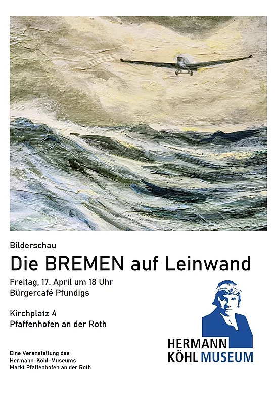 In diesem Jahr präsentiert das Hermann-Köhl-Museum eine Bilderschau mit ausgewählten Gemälden und Zeichnungen zur BREMEN, jenem Flugzeug, das den historischen Atlantikflug ermöglicht hat. Die Bilder aus dem Archiv des Hermann‑Köhl‑Museums vermitteln einen Einblick in die technische Entwicklung sowie die Rahmenbedingungen dieser frühen Luftfahrtphase.