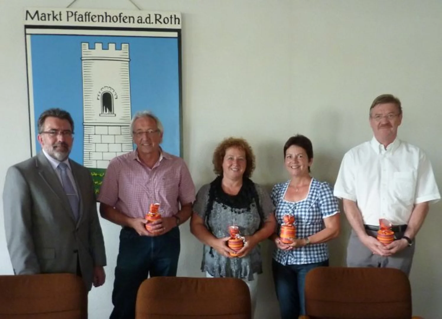 Zu Beginn der Marktratssitzung am 24. Mai konnte Bürgermeister Josef Walz den vier Marktgemeinderäten Marlies Staudenecker, Maria Störk, Richard Reitzle und Karlheinz Thoma zu 10 Jahren Zugehörigkeit zum Gremium gratulieren. Es tat dies mit folgenden Worten: