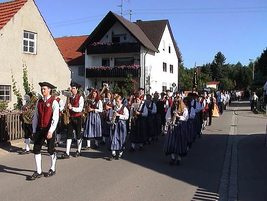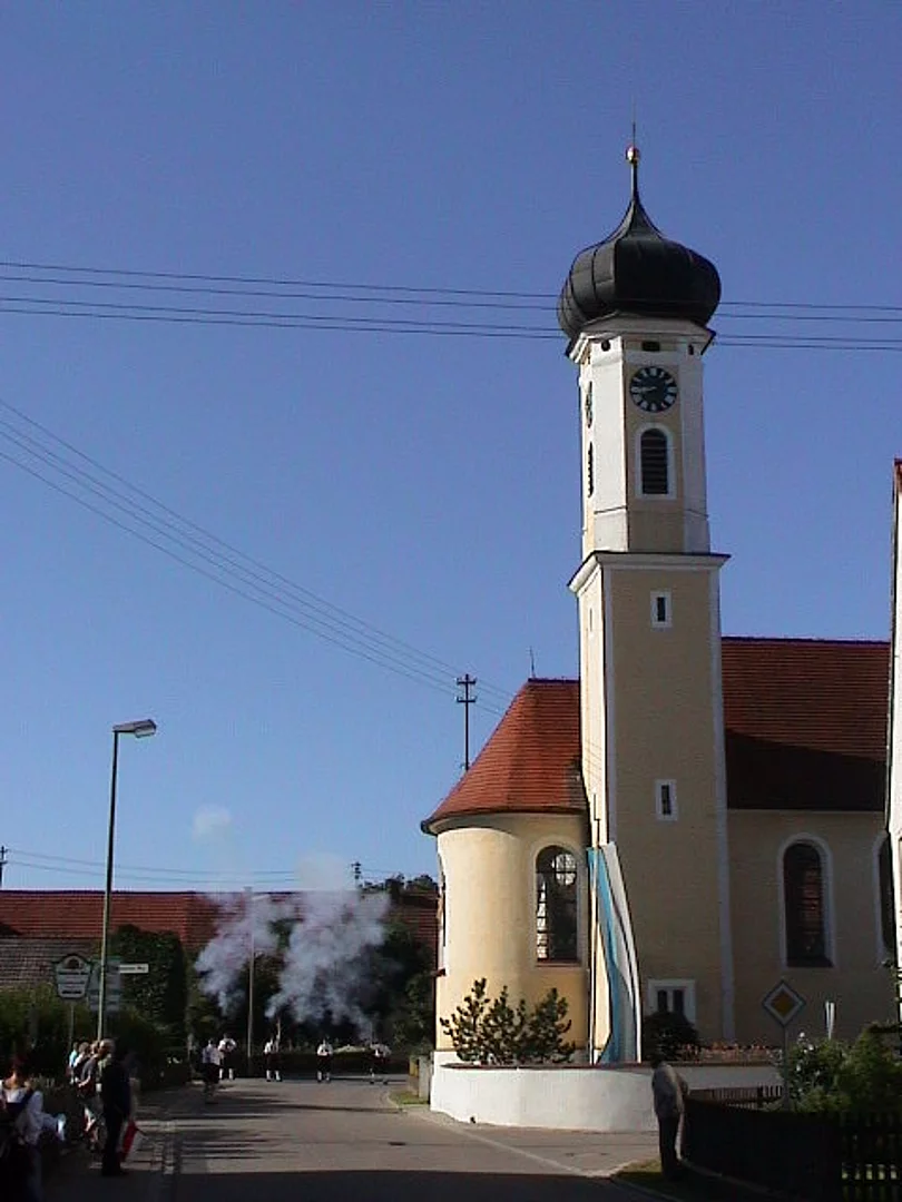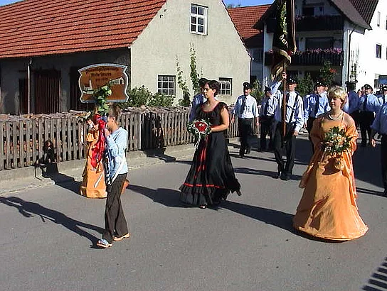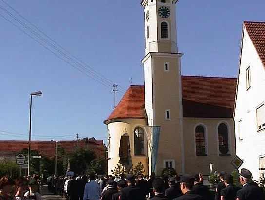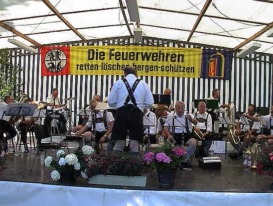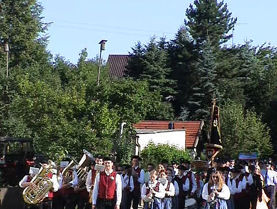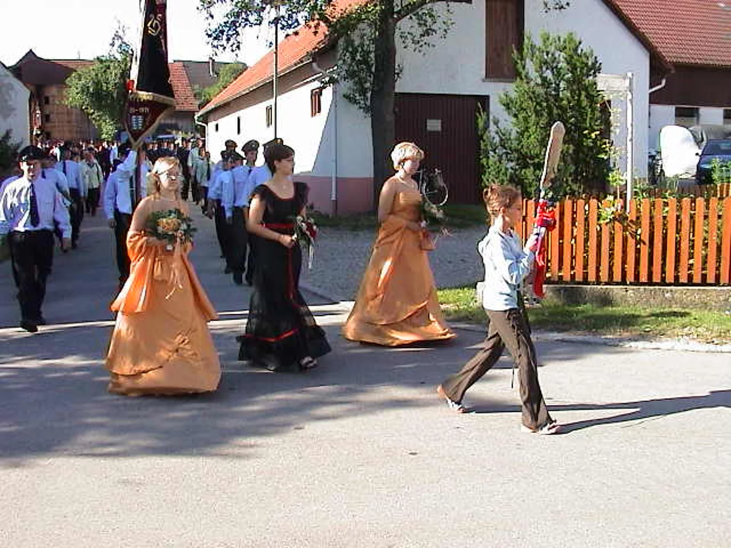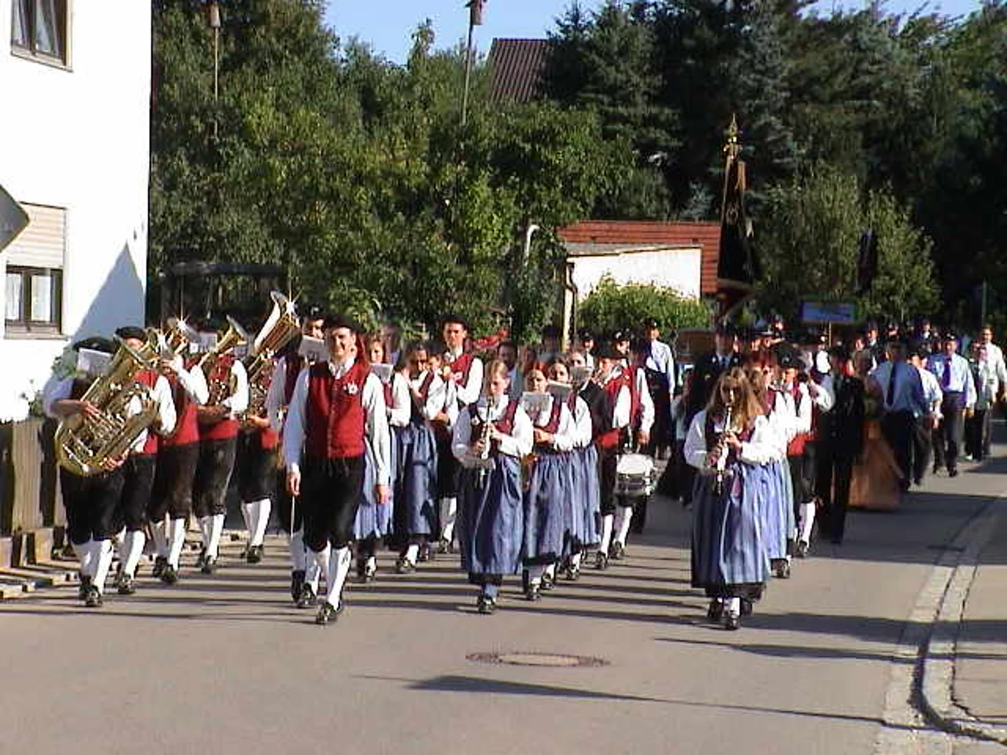 Am Sonntagmorgen ging es dann im großen Festzug zum Festplatz auf dem der Festgottesdienst von Pfarrer Georg Egger zelebriert wurde. Anschließend blieben die Kirchgänger gleich zum Frühschoppen und Gartenfest sitzen und feierten gut gelaunt bei bestem Wetter das Jubiläum mit Gästen aus nah und fern, wie zum Beispiel der befreundeten Freiwilligen Feuerwehr aus Niederhausen in Niederbayern.