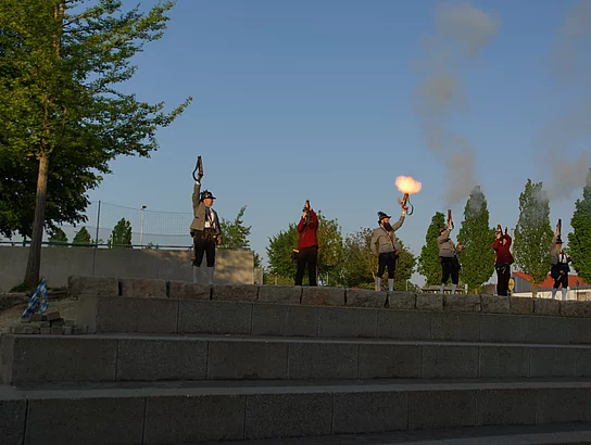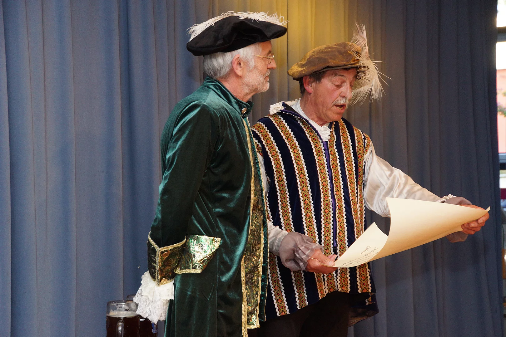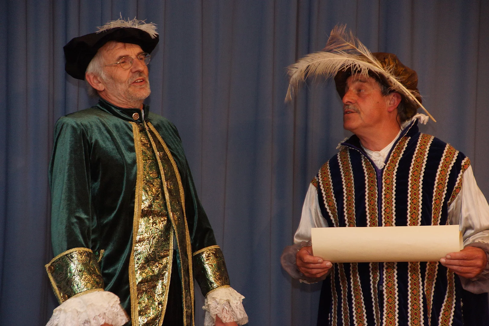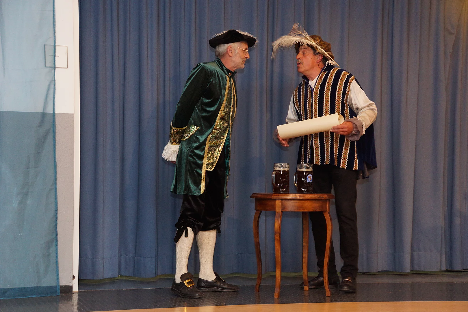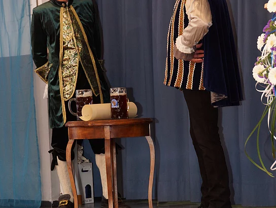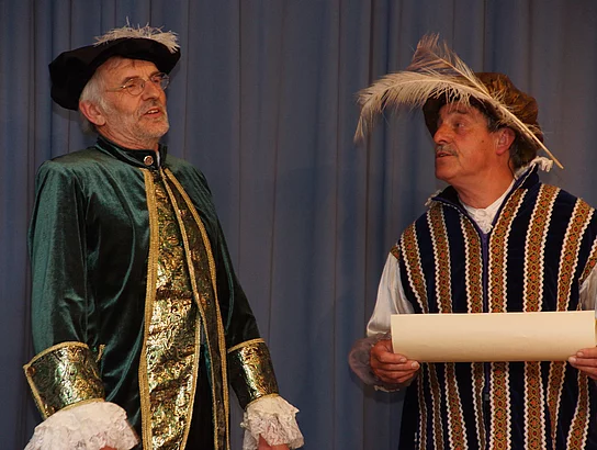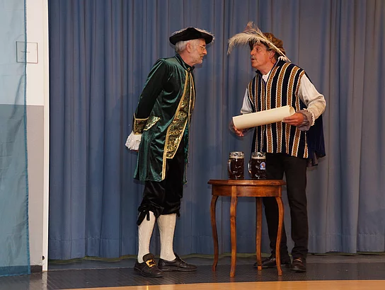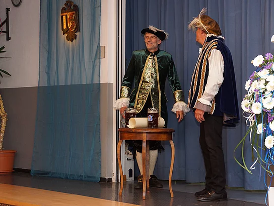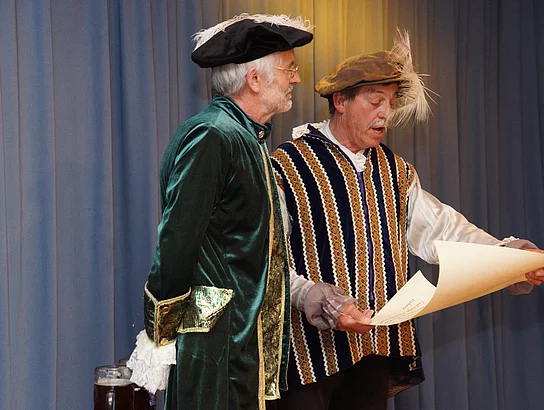 Wie es kam, dass Holzheim und Pfaffenhofen schon vor vielen hundert Jahren, nämlich ab 1490, einmal unter einer gemeinsamen Verwaltung waren, zeigten Johann Riggenmann als Herzog Friederich von Österreich und Georg Birkle als Graf Ulrich Berg zu Schelklingen. Wie der Verkauf der Grafschaft Holzheim, samt Pfaffenhofen, wohl abgelaufen sein könnte hatte sich Nikolaus Maucher ausgedacht.