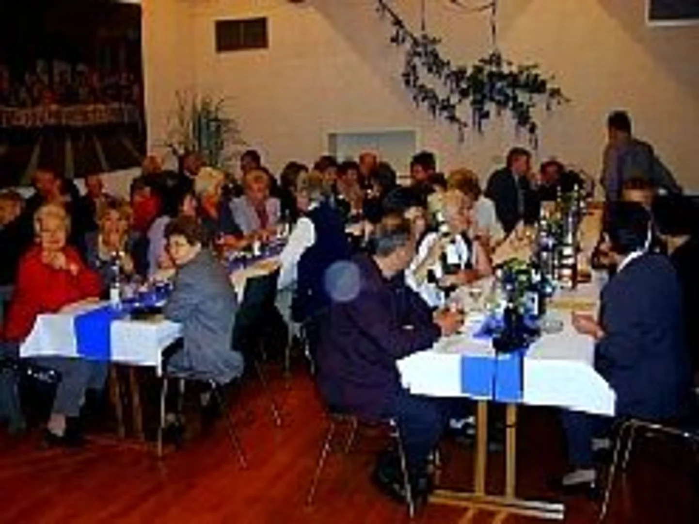 Nachdem bereits das ganze Jahr über die verschiedensten Veranstaltungen zum Jubiläum stattgefunden hatten, wurde die Feier im, festlich in den weiß-blauen Vereinsfarben geschmückten, Martinushaus zum krönenden Höhepunkt. In seiner Begrüßungsansprache verwies der Vorsitzende Jakob Eberle auf die Ähnlichkeit des menschlichen Lebenslaufs mit dem eines Vereines. Es gäbe immer gute und schlechte Zeiten, Hochs und Tiefs wechseln einander ab. Er sei froh, dass sich der SVP zur Zeit auf der Siegerstrasse befände, sowohl im sportlichen, als auch im gesellschaftlich-sozialen Bereich. Er dankte allen, die am Erfolg des Vereins Anteil hatten, wie die Marktgemeinde, der Landkreis, der BLSV, der Förderkreis und die Gönner. Im folgenden Grußwort hob Landrat Erich Josef Gessner die unverzichtbare Leistung der ehrenamtlichen Arbeit hervor, die in den Sportvereinen geleistet wird. "Gesellschaftspolitische Leistung ersten Ranges" attestierte er dem Verein und dass er seiner Funktion als Ort der sozialen Integration gerecht werde. Bürgermeister Josef Walz bedauerte, dass er leider als Geschenk nicht die lang ersehnte Notarurkunde für den weiteren Trainingsplatz mitbringen konnte, stellte jedoch einen Abschluss der Verhandlungen für das laufende Jahr in Aussicht. Auch er hob die großartigen Leistungen des Vereins, speziell in der Jugendarbeit und im Breitensport hervor. Dann folgte der lange Reigen weiterer Gratulanten. Der Vereinsringsvorsitzende Karlheinz Thoma schenkte zwei neue Fußbälle und interpretierte SVP um in "Sport und Vergnügen in Pfaffenhofen. Die Nachbarn im Sportgelände, der Schützenverein und der Tennisclub haben ein SVP-Banner anfertigen lassen, das sie als Geschenk überbrachten. Die Reihe der Gratulanten wurde von Horst Lanz als Vertreter des Würtembergischen Fußballverbandes, Helmut Kölle vom TSV Holzheim, Anton Mayer vom SV Beuren und Rudolf Stelzer vom BLSV beschlossen. Der Höhepunkt des Abends war ein professionell gemachter Film, der die Arbeit und die einzelnen Abteilungen des Vereins in gelungenen Bildern darstellte. Was selbstverständlich auf einem Jubiläum auch nicht fehlen durfte, waren die zu ehrenden Jubilare, stolze 110 an der Zahl. Einen besonderen Dank erfuhren die Wirtsleute des Vereinsheims, das Ehepaar Mayer, das nun nach 27 Jahren in den wohlverdienten Ruhestand tritt. Bei Musik und Tanz klang dann der Abend aus.