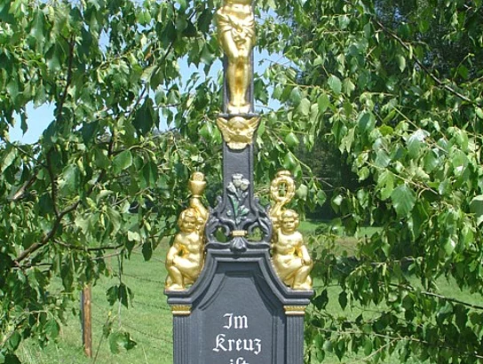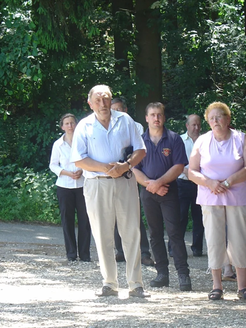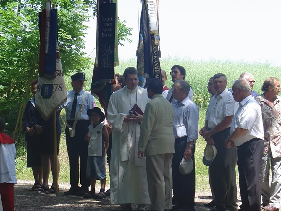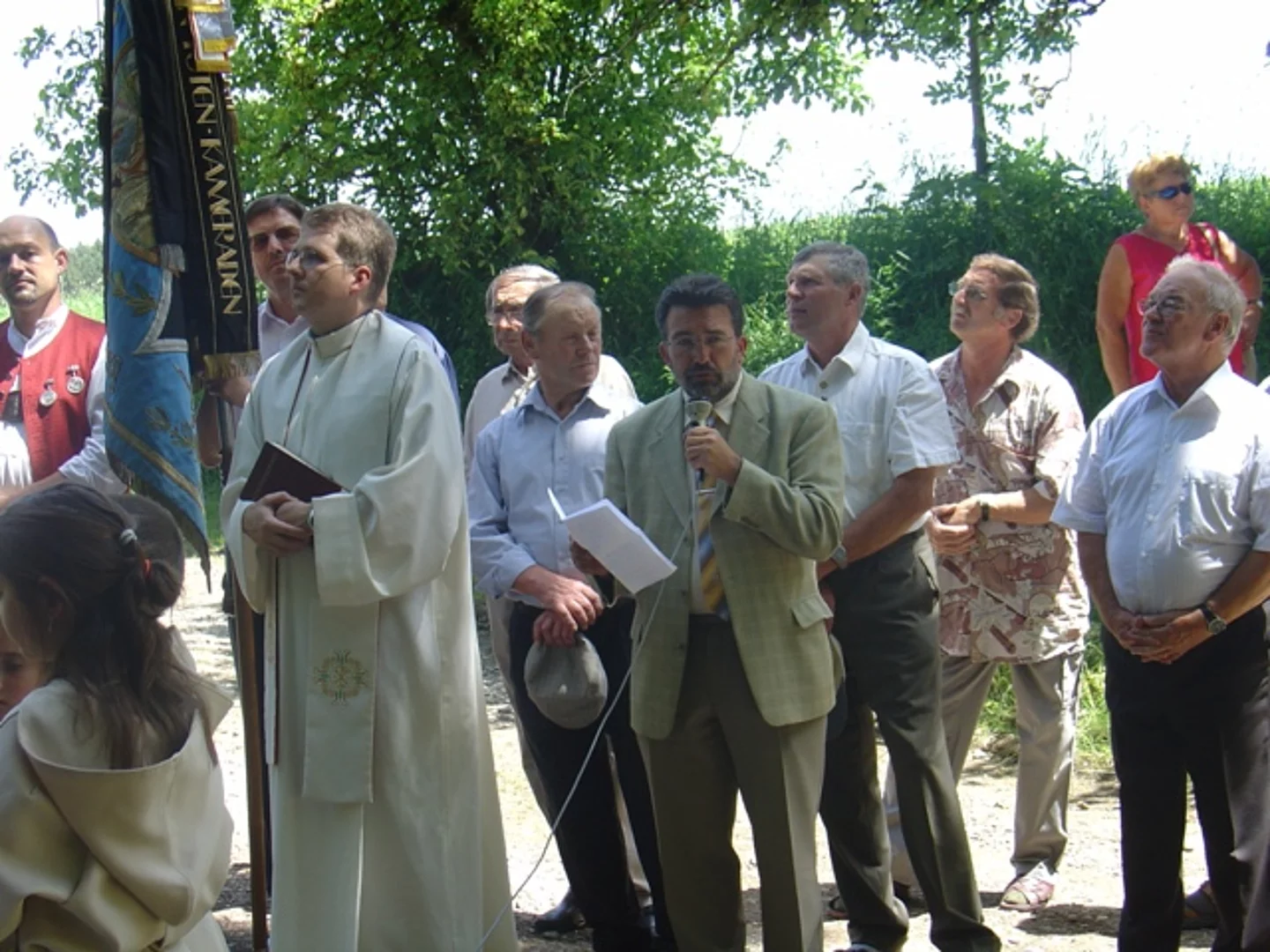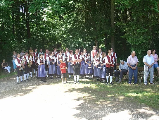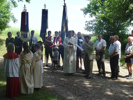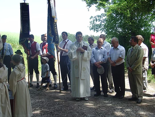 Zwei renovierte Feldkreuze konnten am Sonntag auf der Balmertshofer Flur von Pfarrer Alker gesegnet werden. Das eine steht am Autenrieder Weg, das andere am Wegekreuz Richtung Hetschwang. Die treibende Kraft für die Renovierung war Konrad Müller sen., der seit Jahren für den Erhalt der beiden Kreuze eintrat. In seiner Eigenschaft als Vorsitzender der Jagdgenossenschaft überzeugte er die Mitglieder, dass vom Jagdschilling ein Obulus für diesen Zweck abgezweigt werden muss. Darüber hinaus erledigte er auch die Maurerarbeiten für den Sockel des Kreuzes Richtung Hetschwang selbst. Beim Kreuz am Autenrieder Weg waren neue eichene Kreuzbalken erforderlich, die von Franz Nenning aus Wallenhausen gestiftet wurden. Die Blecharbeiten wurden kostenlos vom Jagdpächter Alfred Schwarz übernommen. Der Korpus wurde vom renommierten Kirchenmaler Johannes Riggenmann aus Holzheim renoviert. Die sonstigen Arbeiten wurden in beispielhafter Weise von den Balmertshofern Bürgern erledigt. Die Renovierung des Kreuzes am Autenrieder Weg kostete 1.300 €, davon kamen 1.000 € aus dem Jagdschilling, der Rest von 300 € wurde von der Marktgemeinde Pfaffenhofen übernommen. Die Kosten von 1.500 € für das Kreuz Richtung Hetschwang teilten sich Jagdgenossenschaft und Marktgemeinde zu gleichen Teilen. In seiner kurzen Ansprache dankte Bürgermeister Josef Walz allen Beteiligten. Er betonte, dass gerade in unserer hektischen Zeit die Einladung zum Verweilen, zum Nachdenken oder auch stillen Gebet die von einem Feldkreuz ausgeht sehr wichtig sei. Musikalisch umrahmt wurde die Segnung von der Musikkapelle Beuren. Anschließend feierte die Balmertshofer Bevölkerung das gelungene Werk mit einem gemütlichen Beisammensein am neuen Feuerwehrgerätehaus.