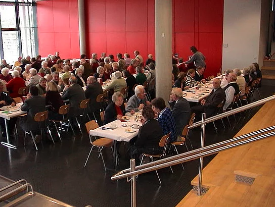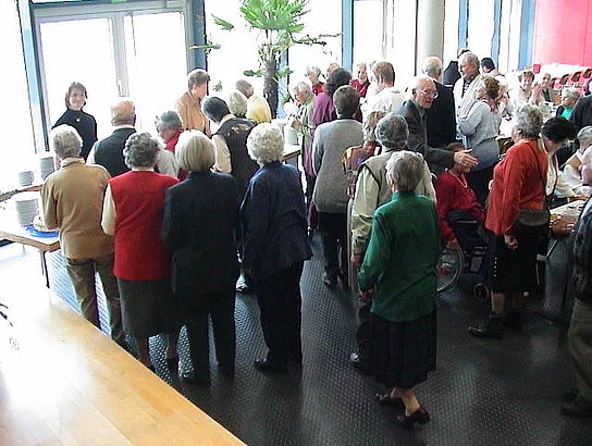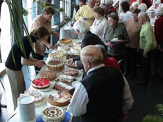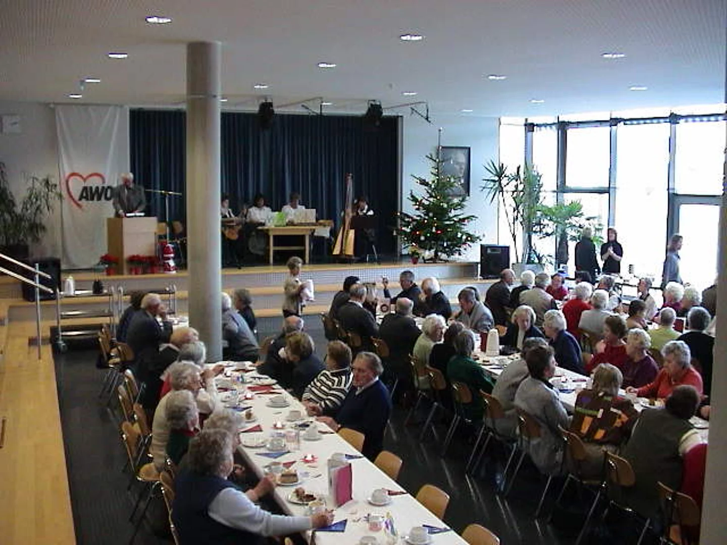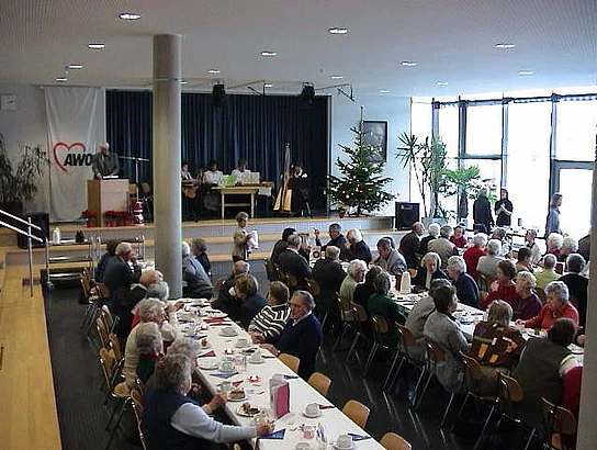 In gänzlicher ungewohnter Umgebung fand heuer die Seniorenadventsfeier der Arbeiterwohlfahrt statt. Da das Martinushaus wegen des Umbaus nicht zur Verfügung stand, fand die diesjährige Feier in der Aula der Hermann-Köhl-Schule statt. In seiner Begrüßungsansprache bedankte sich Vorstand Martin Sailer denn auch ganz herzlich für das Entgegen-kommen der Marktgemeinde. Er ließ den Dankesworten einen kurzen Abriss der Vereinstätigkeit des abgelaufenen Jahres folgen. Als besonders erfolgreich hob er die Seniorenerholung und die Skisafari hervor, die beide in kürzester Zeit ausgebucht waren und sich bei den Teilnehmern größter Beliebtheit erfreuen. Als ganz besonders angenehm bezeichnete er die Zusammenarbeit mit dem AWO-Kindergarten Sonnenschein in Berg. Bürgermeister Josef Walz bedankte sich im Namen der Marktgemeinde für die wertvolle Arbeit der Arbeiterwohlfahrt und ließ seiner kurzen Ansprache zur großen Erheiterung der circa 100 anwesenden Senioren die lustige Geschichte vom Weihnachtskarpfen folgen. In seinem Grußwort verwies der Vereinsringsvorsitzende Karlheinz Thoma darauf, dass das Jammern, keiner wolle mehr etwas für den Anderen tun und keiner sich mehr engagieren wolle, durch das was hier zu sehen sei Lügen gestraft werde. Die Tische seien mit aufwändigstem Schmuck versehen, in der Tombola befänden sich liebevoll in stunden- und tagelanger Arbeit gefertigte Handarbeiten. So etwas zeige, dass noch sehr viel Gemeinsinn existiere. Als Beitrag zur adventlichen Stimmung ließ er dann die Weihnachtsgeschichte von Bertold Brecht "Das Weihnachtspaket" folgen. Sehr zu dieser Stimmung trug auch die musikalische Untermalung des Nachmittags durch die "Zeller Stubenmusik". Die Lose für die durch das heimische Gewerbe großzügig ausgestattete Tombola waren rasch vergriffen und so konnte der schöne Nachmittag mit dem gemeinsamen Abendessen, bestehend aus den schon traditionellen Bratwürsten mit Kartoffelsalat, ausklingen.