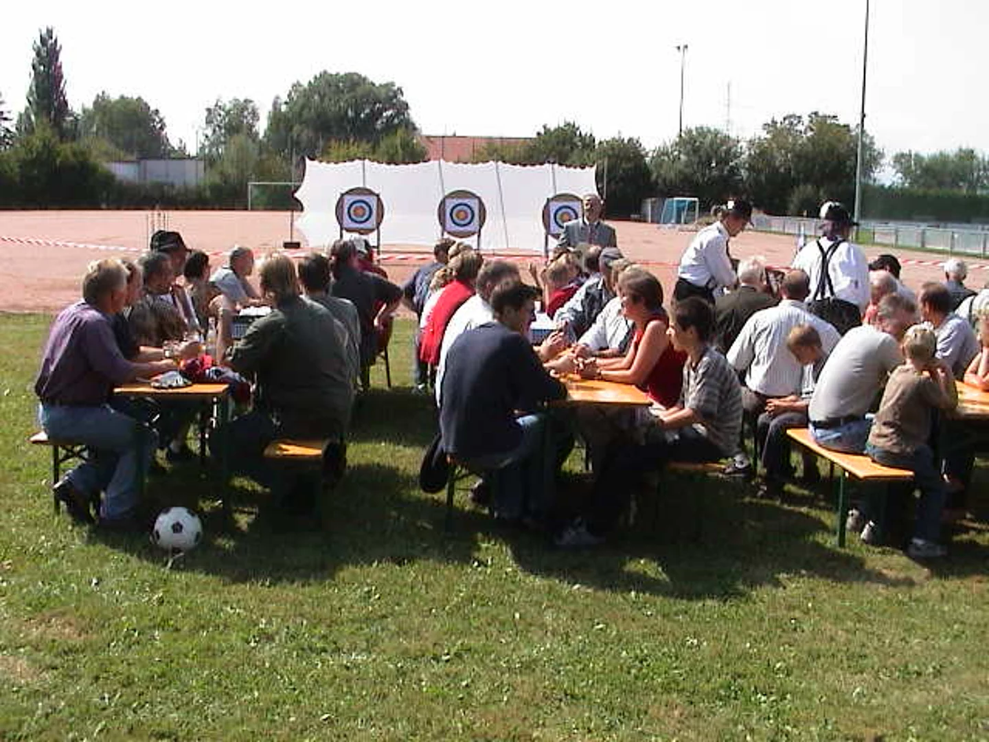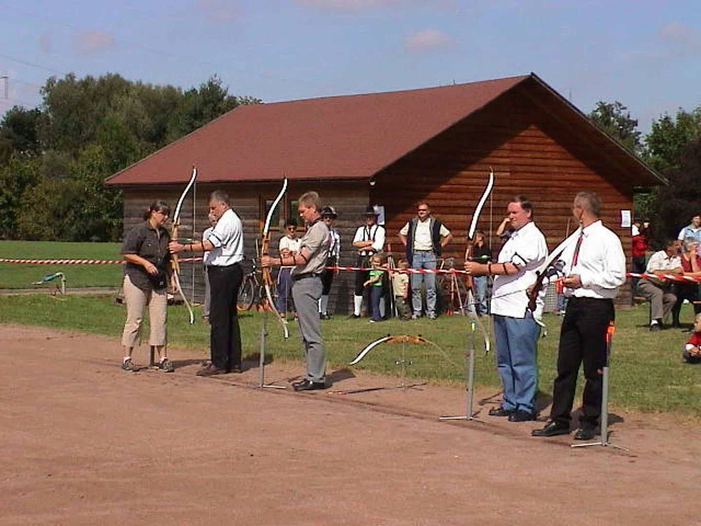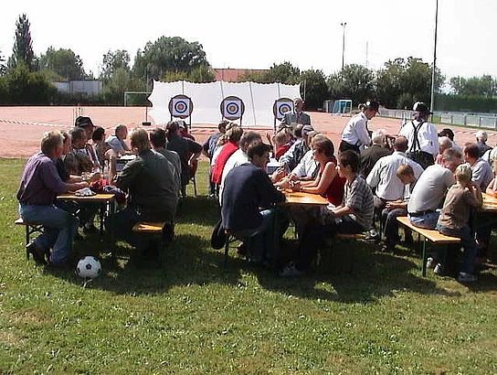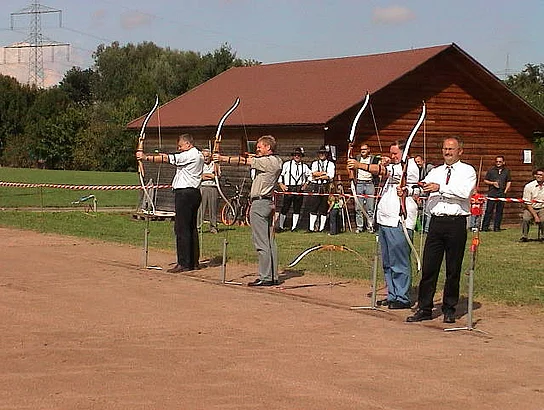Gut 100 Interessenten hatten sich zur Eröffnung der Bogenschiessanlage des Schützenvereins Pfaffenhofen eingefunden. Auf dem Hartplatz des SVP Pfaffenhofen waren Scheiben, das Pfeilfangnetz und die Bögen samt Pfeilen aufgebaut. Der Vorsitzende des Schützenvereins Pfaffenhofen, Ulrich Orzechowski, wies in seiner Begrüßungsansprache darauf hin, dass das Bogenschiessen nach gegenwärtigen Erkenntnissen schon über 50000 Jahre alt sei. Er verdeutlichte die Entwicklung vom Jagd- übers Kampf- bis zum reinen Sportgerät. Beim Sportverein bedankte er sich für die Erlaubnis zur Nutzung des Hartplatzes. 2. Bürgermeister Erwin Stötter überbrachte die Glückwünsche der Marktgemeinde und einen Scheck als Beitrag zu den nicht geringen Kosten für den Aufbau dieser neuen Schiessabteilung. Einen Jugendbogen samt Zubehör konnte Vereinsringsvorsitzender Karlheinz Thoma als Geschenk überreichen. Er betonte, dass er sich besonders darüber freue, dass der Schützenverein mit diesem Sportangebot zur Verbesserung des Freizeitangebots in Pfaffenhofen beitrage. Der gestiftete Jugendbogen solle besonders für Kinder und Jugendliche zu einer sinnvollen Freizeitgestaltung beitragen. Dann griffen der Schützenvereinsvorsitzende Ulrich Orzechowski, 2. Bürgermeister Erwin Stötter, Sportvereinsvorsitzender Reinhard Schmöger, Vereinsringsvorsitzender Karlheinz Thoma zu den Bögen und eröffneten mit mehr oder weniger gut gezielten Schüssen die Schiessbahn. Unter der fachkundigen Anleitung von erfahrenen Bogenschützen des Schützenvereins aus Vöhringen probierten dann Alt und Jung aus, ob das eine Sportart für sie sein könnte. Wer daran Geschmack gefunden hat oder es auch einmal ausprobieren will, kann dies jetzt immer Donnerstags ab 18:00 Uhr tun.
