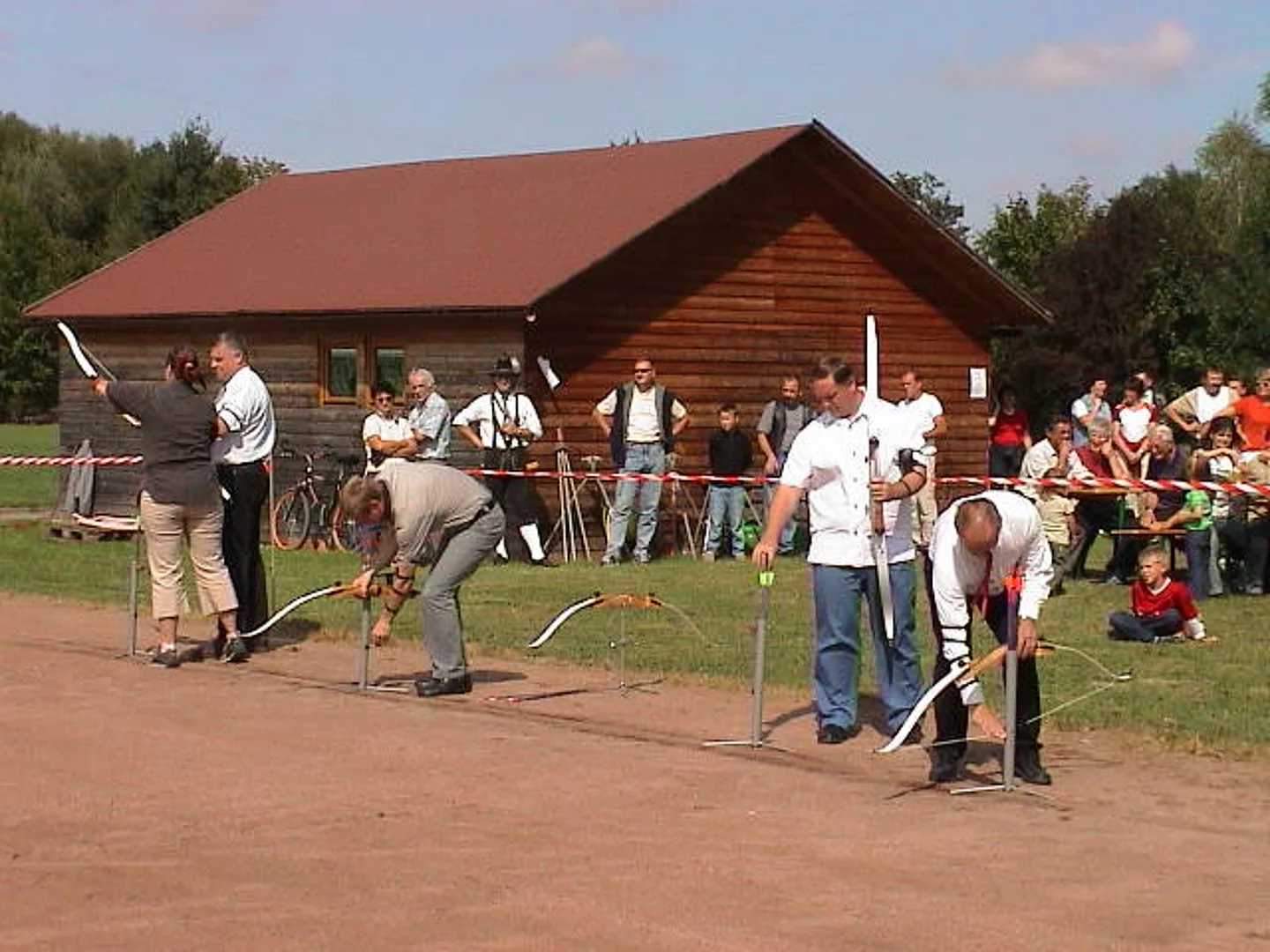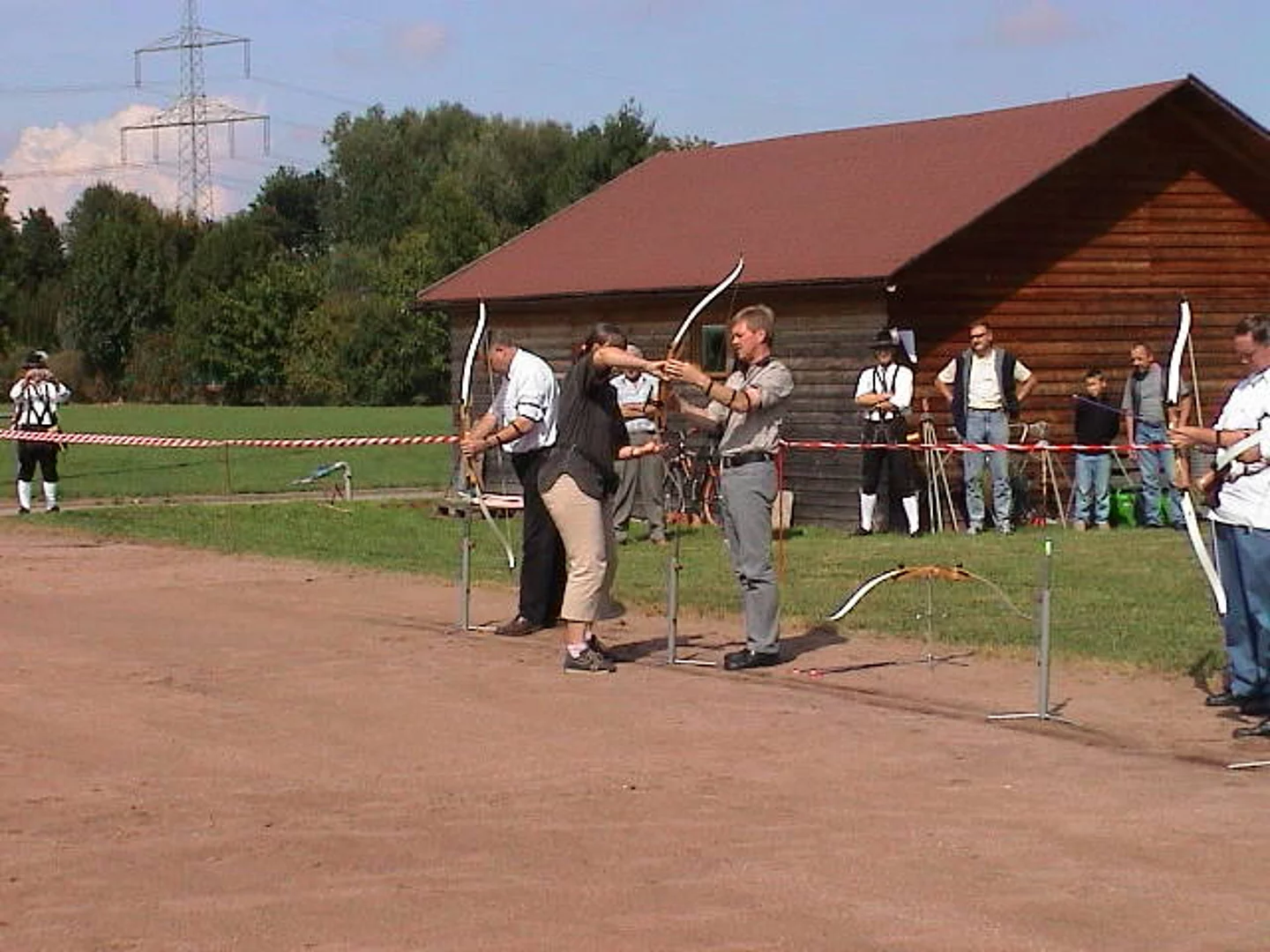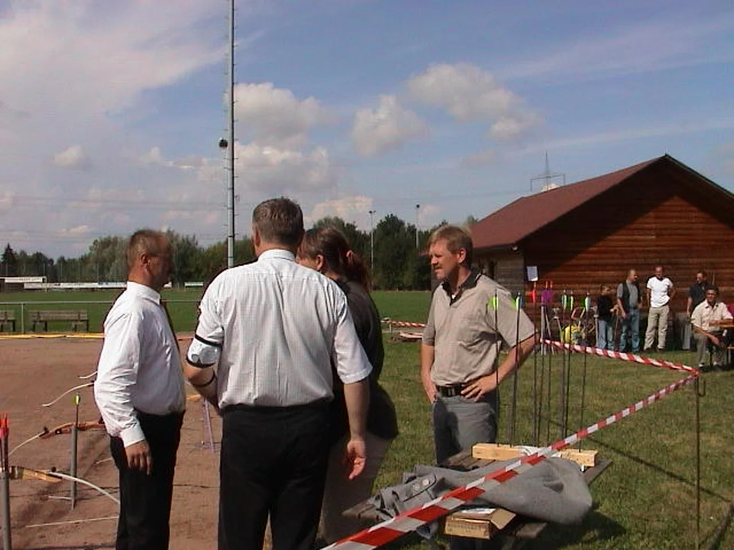 Gut 100 Interessenten hatten sich zur Eröffnung der Bogenschiessanlage des Schützenvereins Pfaffenhofen eingefunden. Auf dem Hartplatz des SVP Pfaffenhofen waren Scheiben, das Pfeilfangnetz und die Bögen samt Pfeilen aufgebaut. Der Vorsitzende des Schützenvereins Pfaffenhofen, Ulrich Orzechowski, wies in seiner Begrüßungsansprache darauf hin, dass das Bogenschiessen nach gegenwärtigen Erkenntnissen schon über 50000 Jahre alt sei. Er verdeutlichte die Entwicklung vom Jagd- übers Kampf- bis zum reinen Sportgerät. Beim Sportverein bedankte er sich für die Erlaubnis zur Nutzung des Hartplatzes. 2. Bürgermeister Erwin Stötter überbrachte die Glückwünsche der Marktgemeinde und einen Scheck als Beitrag zu den nicht geringen Kosten für den Aufbau dieser neuen Schiessabteilung. Einen Jugendbogen samt Zubehör konnte Vereinsringsvorsitzender Karlheinz Thoma als Geschenk überreichen. Er betonte, dass er sich besonders darüber freue, dass der Schützenverein mit diesem Sportangebot zur Verbesserung des Freizeitangebots in Pfaffenhofen beitrage. Der gestiftete Jugendbogen solle besonders für Kinder und Jugendliche zu einer sinnvollen Freizeitgestaltung beitragen. Dann griffen der Schützenvereinsvorsitzende Ulrich Orzechowski, 2. Bürgermeister Erwin Stötter, Sportvereinsvorsitzender Reinhard Schmöger, Vereinsringsvorsitzender Karlheinz Thoma zu den Bögen und eröffneten mit mehr oder weniger gut gezielten Schüssen die Schiessbahn. Unter der fachkundigen Anleitung von erfahrenen Bogenschützen des Schützenvereins aus Vöhringen probierten dann Alt und Jung aus, ob das eine Sportart für sie sein könnte. Wer daran Geschmack gefunden hat oder es auch einmal ausprobieren will, kann dies jetzt immer Donnerstags ab 18:00 Uhr tun.