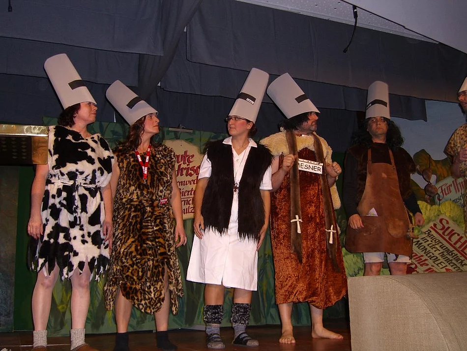 Das verhieß zumindest das Motto der drei bunten Abende. Und so spielten sich tatsächlich ein Gutteil der kabarettistischen Nummern und Sketche im dunklen Tann ab. Durch den Wald geführt wurde das Publikum vom Hirtengott Pan, dargestellt vom Vorsitzenden des Liederkranzes Kurt Wikorill. Die Rohrspatzen, zuständig fürs Kabarett beim Liederkranz zeigten einen Ausblick auf Pfaffenhofen im Jahre 2058. Dank großzügiger Umfahrungen ist Pfaffenhofen in die Steinzeit zurückgefallen, die Orteile boomen hingegen. So gibt es die "Universitätsstadt Beuren", "Bad Remmeltshofen" und die "Domstadt Balmertshofen". Das örtliche Gewerbe beklagt hingegen eine tiefe Rezession. Eichhörnchensulzen wollen nicht recht gehen, niemand will den Fichtennadelnmet vom Wirt trinken, Lendenschurze sind Ladenhüter und die Hebamme hat die letzte Geburt vor 25 Jahren eingeleitet. Vor diesem Hintergrund wird dann die örtliche Kommunalpolitik auf die Schippe genommen. Die Marktverwaltung wird mit der neuen Orgel verglichen. "Vorne sitzt der Organist mit seinen Manualen und steuert die Pfeifen. Manche Pfeifen tönen laut, andere schwingen nur mit.", so lautet die Kernaussage. Auch das Hermann-Köhl-Jahr gibt Anlass für einen Sketch. Außerirdische sind im All auf ein Überbleibsel der "Bremen" gestoßen und sind verfrüht, da die Hermann-Köhl-Gedenkfeierlichkeiten erst im April beginnen, in Pfaffenhofen "Airfield Neue Mitte-West" gelandet. Auf der Suche nach Treibstoff für ihr Raumschiff stoßen sie rasch auf Bier was sie zu der überraschten Feststellung bringt: "Mir kommt es so vor, als ob die Erdlinge unseren Treibstoff saufen". Bei der "Ungarischen Moritat" zeigt Gerhard Staab, assistiert von seiner Ehefrau Elfie Staab und unterstützt vom wackeren Geiger Franz Spindler auf wo heftige Liebe und Eifersucht führen können. Unglaublich beweglich zeigen sich drei Tenöre und reißen damit das Publikum zu wahren Lachsalven hin. Die Auswüchse von Joggingwahn und Volksmarschvernarrtheit nehmen die Sketche vom "Permanenten Volksmarsch" aufs Korn. Einen Marsch durch eine Vielzahl bekannter Melodien unternimmt die Gerichtsverhandlung mit dem stummen angeklagten Musiker und animiert das Publikum zum Mitsingen. Einen grandiosen Schlusspunkt setzte dann die Liederkranzjugend mit ihrer wilden Wilderergeschichte. Das zufriedene Publikum belohnte die Mühen der Akteure nach fast vierstündiger Aufführung mit begeistertem Applaus.
