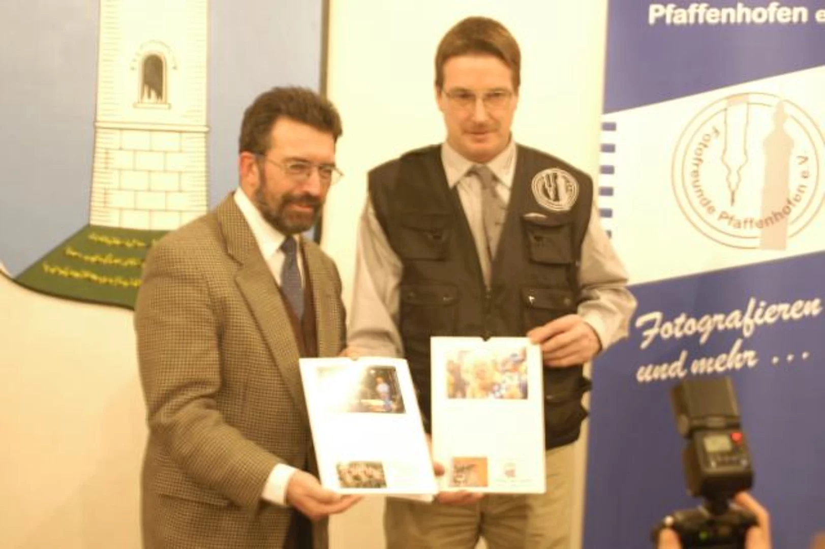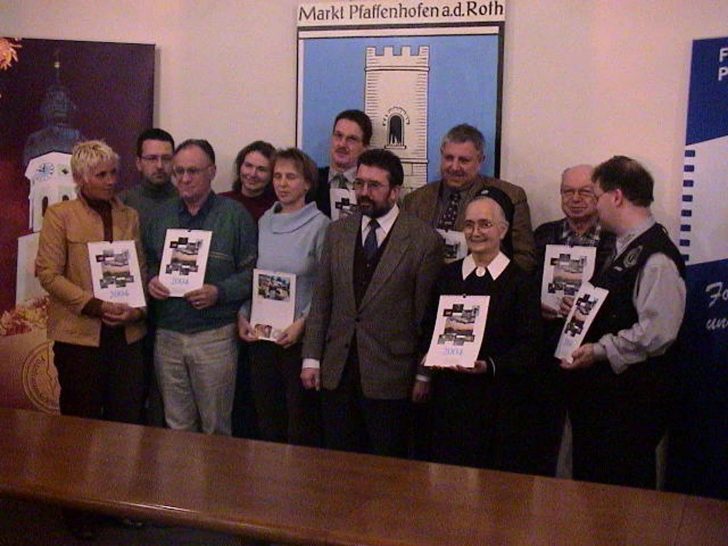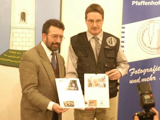 Wie viel schöne Veranstaltungen das Jubiläumsjahr bot, wird einem richtig bewusst, wenn man die wunderbaren Bilder des Fotowettbewerbs anschaut, meinte Bürgermeister Josef Walz Walz zum Auftakt der Ehrung der Sieger des Fotowettbewerbs zum Jubiläumsjahr. Über 300 Bilder waren eingereicht worden, etwa 200 davon wurden nach einer Vorauswahl im Rathaus ausgestellt und der Bevölkerung zur Wahl gestellt. 24 Bilder waren schließlich die Siegerfotos, die im Jubiläumskalender veröffentlicht wurden. Dieser Kalender, gestaltet vom Vereinsringsvorsitzenden Karlheinz Thoma, wurde ermöglicht durch die Anzeigen örtlicher Gewerbetreibender. Herausgegeben wurde er vom Vereinsring Pfaffenhofen und den Fotofreunden Pfaffenhofen. Die Fotofreunde hatten den Wettbewerb auch ausgerichtet und die Ausstellung organisiert. Insgesamt elf Preisträger konnte Bürgermeister Josef Walz beglückwünschen. Reinhard Wenzel, Sebastian Botzenhard, Schwester Sieghelma Pfeuffer,, Markus Walz, Martin Klinger, Wilma Simon, Gerhard Staab, Doris Werwein, Claudia Schweizer, Gerhard Staab, Ralf Lelewel, und Hermann Heisler waren die glücklichen Gewinner, die die ausgelobten Preise entgegennehmen durften. Der Lohn der Mühe waren die silberne Jubiläumsmünze, ein Jubiläumskrug, dazu passend drei Flaschen vom Pfaffahofer Urtrunk und ein Jubiläumsposter. Eine besondere Überraschung hielt Bürgermeister Josef Walz für den Vorsitzenden der Fotofreunde, Martin Klinger bereit. Er überreichte ihm die goldene Jubiläumsmünze als dank für die aufwendige Dokumentation des Jubiläumsjahres mit unzähligen Bildern. Martin Klinger war bei praktisch jeder der vielen Veranstaltungen anwesend und hielt die Geschehnisse für die Nachwelt fotografisch fest. Dafür sprach im Josef Walz im Namen der Gemeinde seinen Dank und Anerkennung aus.