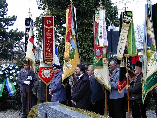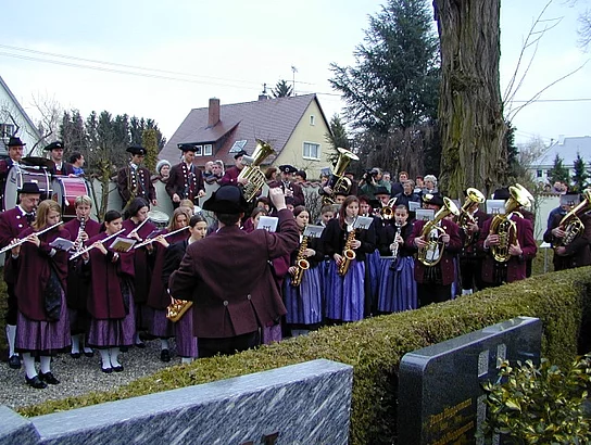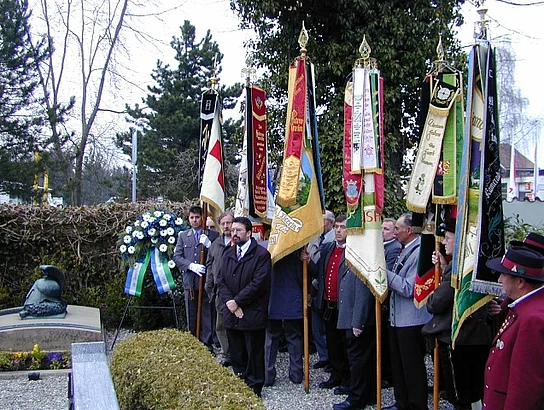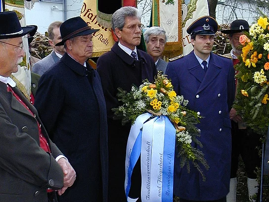 Zu den Klängen von "Ich hatte einen Kameraden", gespielt von den Musikkapellen Pfaffenhofen und Beuren, senkten sich die Fahnen und die Böllerschützen schossen einen dreifachen Salut zur Ehrung der Toten.