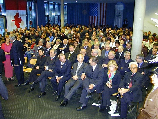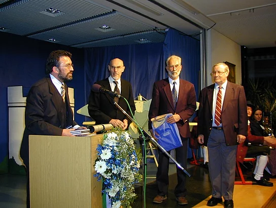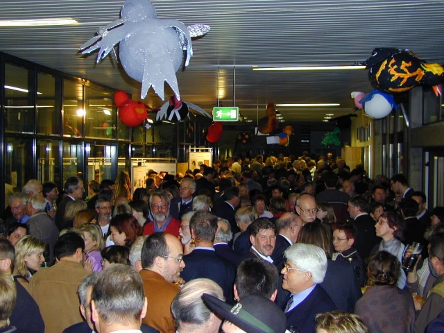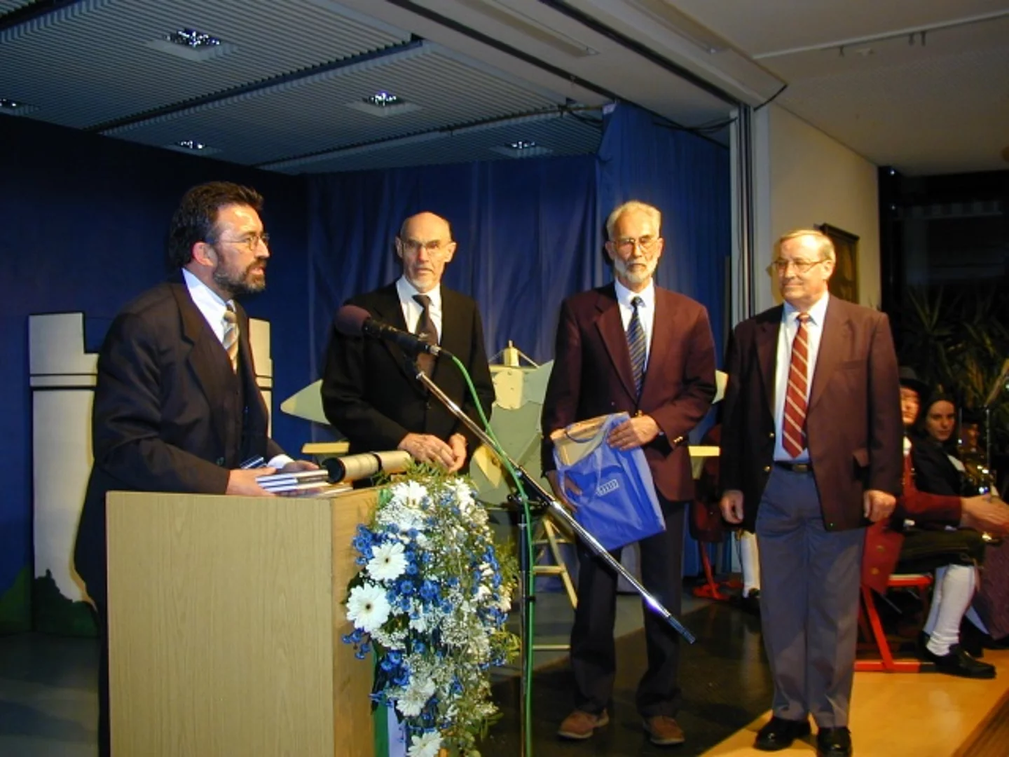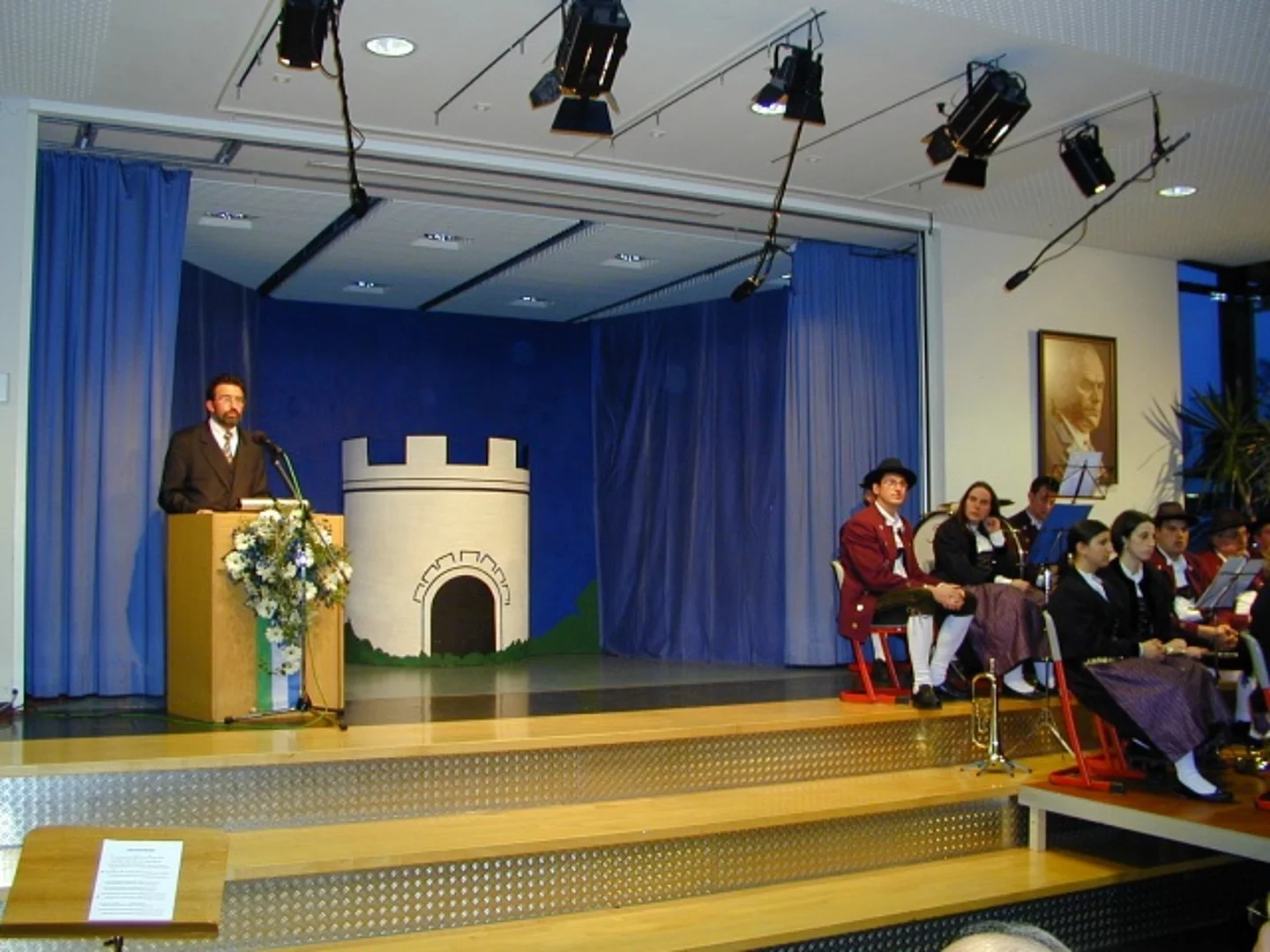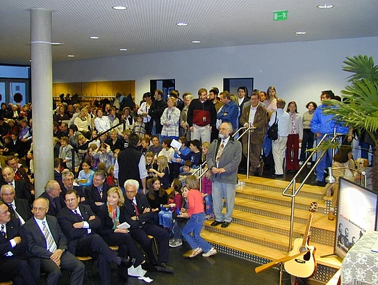 Kurz danach begann der Festakt in der Aula der Hermann-Köhl-Schule. In seine Begrüßungsworten zeigte sich Bürgermeister Josef Walz überrascht vom Zuspruch der Bevölkerung. "Ich bin überwältigt, mit einem solchen Ansturm hätte ich nicht gerechnet", so begann er, angesichts der etwa 500 Gäste, die sich in der Aula drängten. Unter ihnen waren auch eine Vielzahl von Ehrengästen. Bundesfinanzminister a. D. Dr. Theo Waigel, Die Oberbürgermeisterin von Neu-Ulm Dr. Beate Merk, die Landtagsabgeordneten Peter Schmid, Hermann Geiger und Ruth Pauli, die sich zur weitläufigen Verwandtschaft Hermann Köhls zählt, Landrat Erich Josef Geßner und Altlandrat Franz Josef Schick. Eine große zahl von Verwandten Hermann Köhls war ebenfalls angereist, zum Teil von weit her, bis aus Schweden oder Hamburg. Die Kontaktakte hatte Lore Schandl, die in Pfaffenhofen wohnende Nichte Köhls hergestellt. "Was hat Hermann Köhl mit Pfaffenhofen zu tun?", so fragte Bürgermeister Josef Walz und gab die Antwort dann auch selbst. Seine Mutter Wally war Pfaffenhofenerin und Köhl verbrachte darum in seiner Jugend die Ferien oft in der großelterlichen Brauereigaststätte Mahler. Offenbar hatte er sich im Ort so wohl gefühlt, dass er letztlich nach Pfaffenhofen zog, wo er den Rest seine Lebens verbrachte.