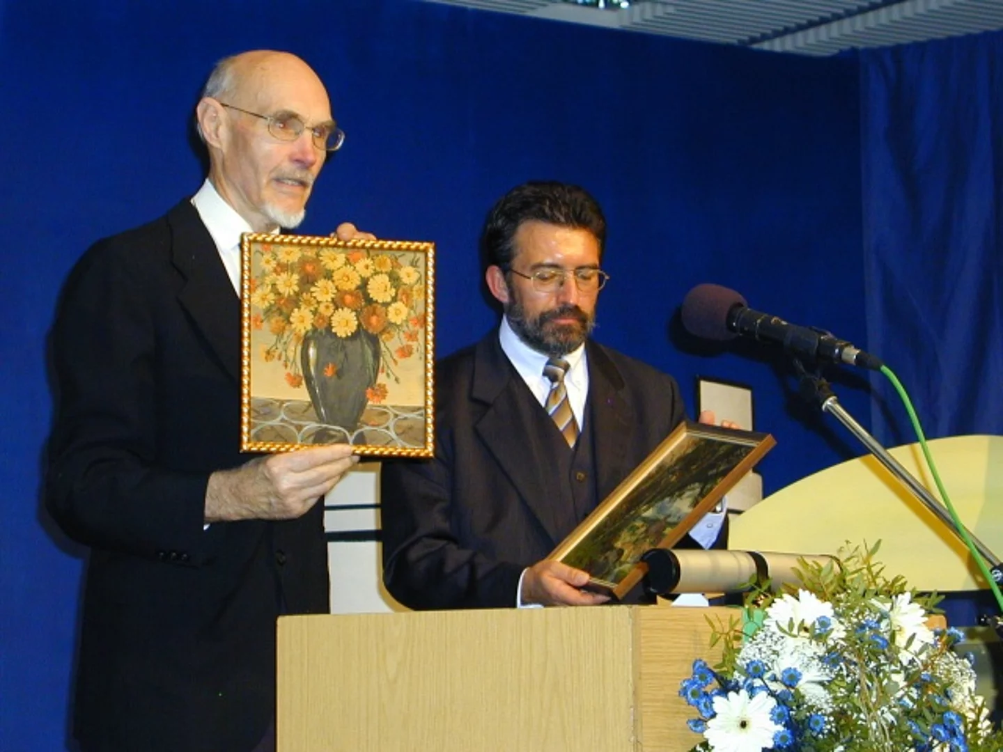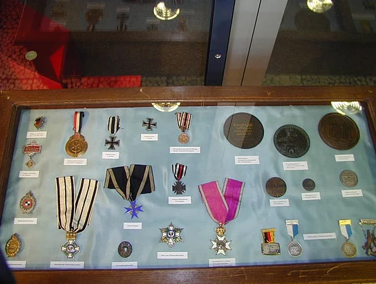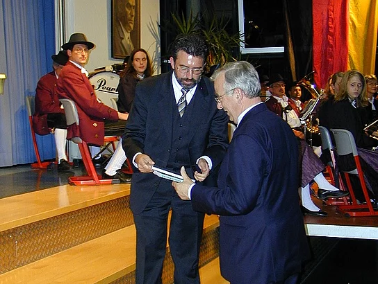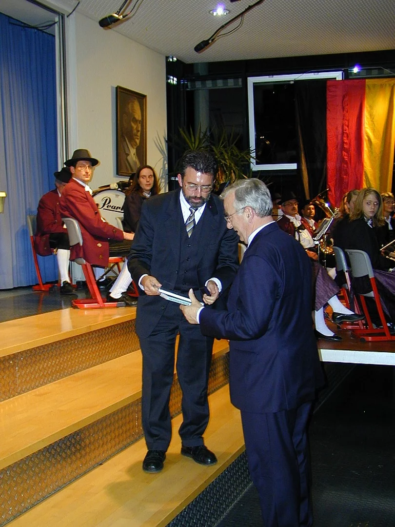 Besondere Geschenke überbrachten Verwandte von Hermann Köhl. Graf von Bethusy Huc, Walter Köhl und Hermann Köhl übergaben Medaillen, ein goldenes Tablett, von Hermann Köhl selbst gemalte Bilder und eine 200 Jahre alte wertvolle Familienbibel in zwei Bänden an Bürgermeister Josef Walz.