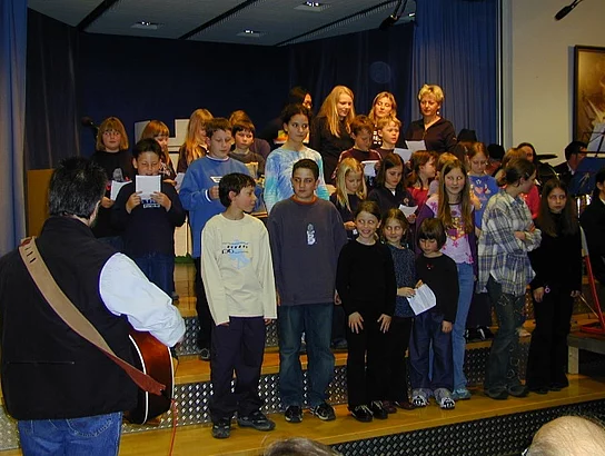 Für musikalische Unterhaltung nach den feierlichen Reden sorgte dann der Schulchor der Hermann-Köhl-Schule. Schwungvoll und gekonnt brachte er drei, eigens zu diesem Anlass selbst getextete und komponierte Lieder zum Vortrag. "Der Ozeanflieger", "Fliegen muss was wunderbares sein" und "Der Hermann-Köhl-Rap", die auf große Begeisterung beim Publikum stießen. Beim Rap wurden die Zuhörer förmlich mitgerissen und klatschten rhythmisch mit.