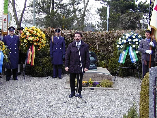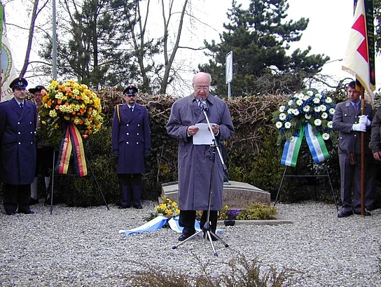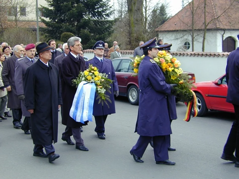 Nach der Messe zogen die Fahnenabordnungen der Vereine mit der Bevölkerung zum Friedhof. Am Grab des Ozeanfliegers erinnerte Bürgermeister Josef Walz an die historische Leistung. Vom Jagdbombergeschwader 34 Allgäu war Oberstleutnant Kollmer gekommen. In seiner Gedenkrede sagte er, dass die Leistungen Hermann Köhls aus der Geschichte der Luftfahrt nicht wegzudenken seien. Er bedaurte dann auch sehr, dass dies nach 44 Jahren die letzte Ehrung seines Geschwaders sei, da es im Juni dieses Jahres außer Betrieb gesetzt wird. In seiner anschließenden Rede ließ Oberst a. D. Hans Joachim Meissner wissen, dass die Traditionsgemeinschaft des Jagdbombergeschwaders 34 und des Fliegerhorstes Memmingen, der ehemalige Soldaten, Beamte, Angestellte und Arbeiter angehören, die Tradition übernehmen werden und die Pflege des Grabes übernehmen. Sowohl Oberstleutnant Kollmer, als auch Oberst a. D. Hans Joachim Meissner ehrten Hermann Köhl mit einer Kranzniederlegung. Der Rektor der Hermann-Köhl-Schule würdigte seiner Ansprache Hauptleherer Engelbert Fischer, der dafür gesorgt hatte, dass die örtliche Schule auf den Namen "Hermann-Köhl-Schule" getauft worden war. Zudem war er den Initiator und Begründer des Hermann-Köhl-Museums, das in seinen Anfängen in der Schule beheimatet war. Zum Dank legte er eine Blumengebinde auf dem Grab von Engelbert Fischer nieder, das sich auf dessen Wunsch in unmittelbarer Nähe zum Grab Hermann Köhls befindet.