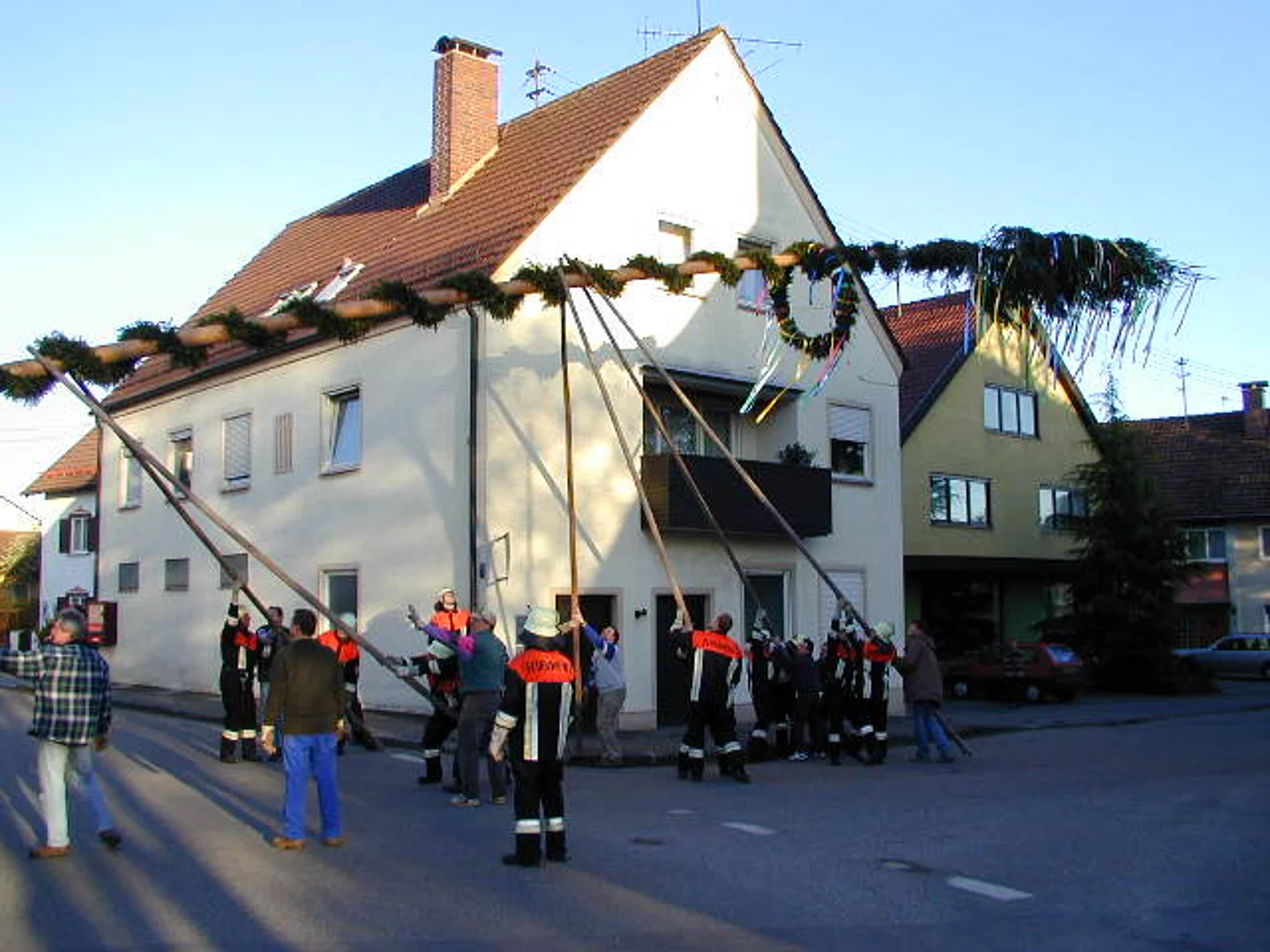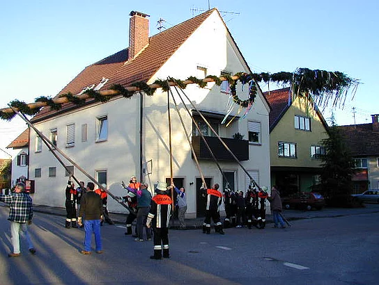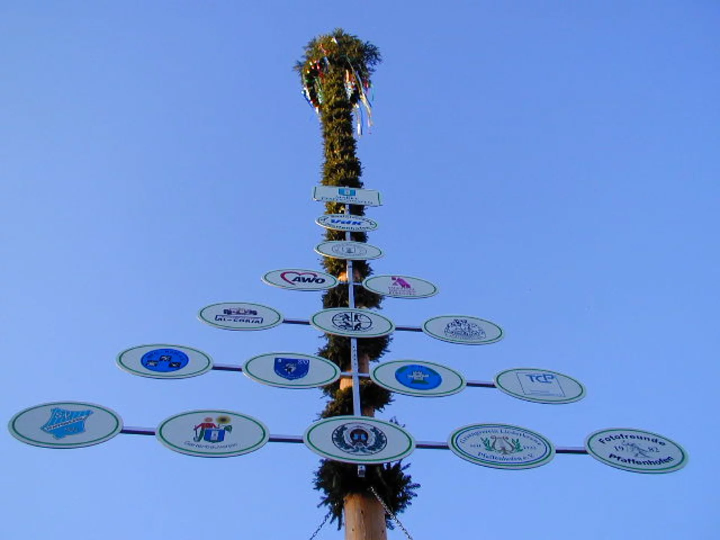 Nachdem die fleissigen Helfer der Feuerwehr Pfaffenhofen den Baum bereits am Vortag aufgestellt hatten, konnte die Maibaumfeier bei bestem Wetter ungefährdet statt finden. Mit donnerndem Salut eröffneten die Böllerschützen des Schützenvereins Pfaffenhofen die Reihe der Darbietungen. Nicht ganz so laut, dafür aber deutlich melodischer war der folgende Vortrag des Musikvereins Pfaffenhofen unter ihrem Dirigenten Siegfried Schmid. Bürgermeister Josef Walz begrüßte die Anwesenden und pries in seinem Grußwort die Freuden des Frühlings. Unter der Leitung von Stefanie Walloch zeigten die Kinder des Kindergartens St. Monika was sie gelernt hatten und tanzten um den Maibaum. Anschließend unterhielt der Schülerchor der Hermann-Köhl-Volksschule mit ihrem Lehrer Anton Wiedemann das Publikum mit zwei Liedern, gefolgt von einem erneuten Vortrag des Musikvereins. Nach den Dankensworten von Josef Walz an die Mitwirkenden schloss die Feier mit dem gemeinsamen Singen der Bayernhymne.