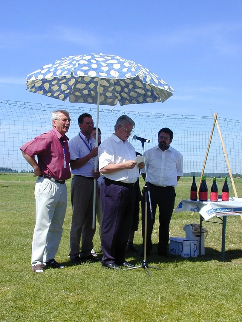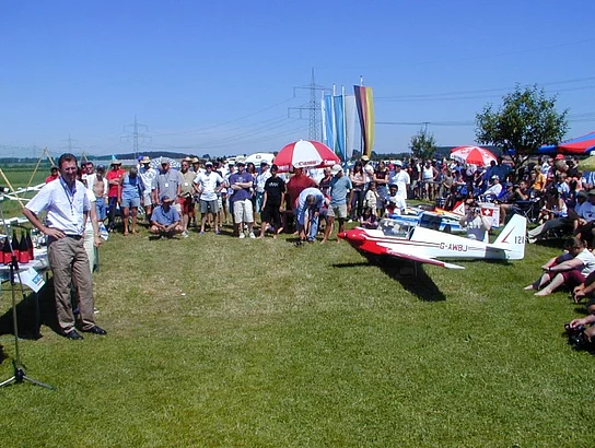 Zweifachen Grund zum Feiern hatte der MFC-Roth. Zum einen das 20jährige Vereinsjubiläum, zum anderen die Ehre die Deutsche Meisterschaft im Seglerschlepp abhalten zu dürfen. Das gesamte Wochenende war reges Leben auf dem Gelände der Modellflieger. Bereits vor dem Beginn der Wettkämpfe waren zahlreiche Mannschaften mit Wohnwagen und Zelten eingetroffen um Trainingsflüge zu absolvieren und sich an die örtlichen Gegebenheiten zu gewöhnen. Zum Wettbewerb traten dann über 50 Mannschaften an. Bei bestem Wetter konnten faszinierende Flugzeugmodelle, gesteuert von den besten Modellfliegern Deutschlands, in Aktion beobachtet werden. Im Festzelt kamen dann am Samstagabend bei einem bunten Rahmenprogramm auch Geselligkeit und Unterhaltung nicht zu kurz. Eine Krönung der Veranstaltung war, dass in der offenen Klasse das Siegerduo aus Pfaffenhofen kam. Hier belegten Thomas und Holger Höchsmann mit 3231,33 Punkten den ersten Platz.