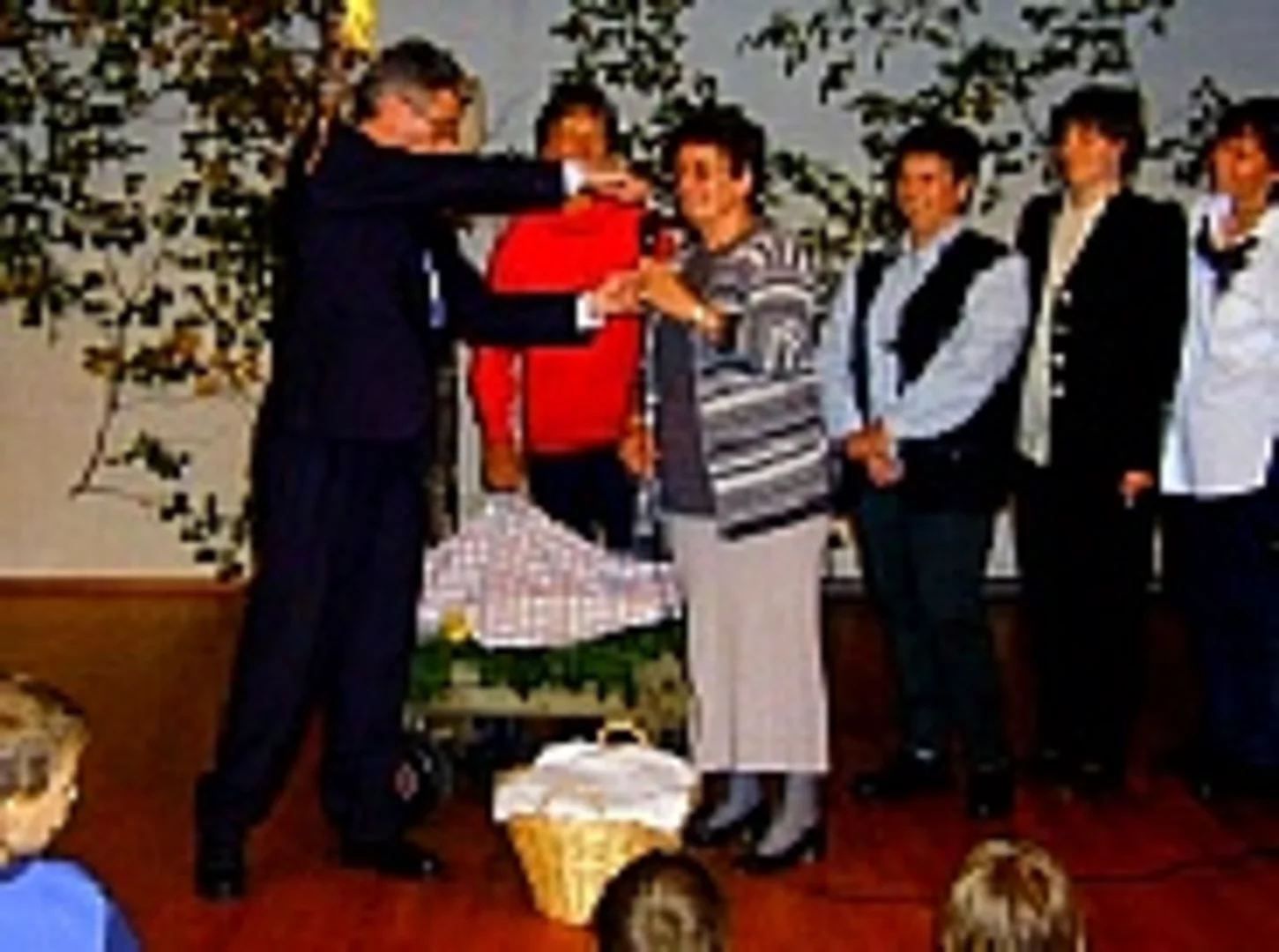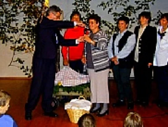 Gleich zweifachen Anlass zum Feiern hatte Diakon Rolf. Zum Einen erreichte er das fast schon biblische Alter von 50 Jahren, zum Anderen hatte er das 10. Weihejubiläum. Genug Grund für eine Feier, die denn auch im Martinushaus stattfand. Die Gemeinde folgte gern der Einladung und so fasste das Haus die Gäste kaum. Die Schlange der Gratulanten wollte nicht enden und Diakon Rolf drohte der Arm vom vielen Händeschütteln zu erlahmen. Zu Anfang wurden die Gäste gleich vorgewarnt, dass der Abend länger werden könne, da viele Darbietungen auf dem Programm stünden. So kam es denn auch. Den Auftakt machte die Musikkapelle Beuren mit einem Musikstück. Etwas verfrüht, da das Fest ja gerade erst begonnen hatte, tauchten die Putzfrauen des Martinushauses auf und ratschten, wie das eben so ihre Art ist ein wenig. Hauptsächlich über den Jubilar, über dessen grosse und kleine Schwächen da man so allerhand Interessantes erfahren konnte. Richtig offiziell wurden die Gäste dann von den Pfarrgemeinderatsvorsitzenden Jahn und Strehle begrüßt. Nach einem erneuten Musikstück der Musikkapelle Beuren ließ es sich auch der evangelische Pfarrer Erstling nicht nehmen mit einer launigen Rede seinem katholischen Kollegen im Sinne der Ökumene zu gratulieren. Er wies daraufhin das die Ökumene über Internet und E-Mail ganz gut funktioniere. Dann brach der wilde Westen über die Gäste und ganz speziell üner Diakon Rolf herein. Die Indianer vom Sing- und Spielkreis nahmen ihn gefangen und als Preis, dass er von den Martern und dem Tod am Marterpfahle verschont blieb, mußte er versprechen in Pfaffenhofen zu bleiben. Zur Belohnung gab es dann original Rolf-Bier. Es folgte der Kirchenchor Beuren, der mit zwei Liedern gratulierte. Eine besonders originelle Geburtstagstorten mit dem Bild von Marion (alias Edwin Rolf) wurde dann von Alexandra Bittner überreicht. Dann war es an der Zeit für die Gäste sich in der Pause zu stärken. Der Frauenkreis Beuren überbrachte seine Glückwünsche mirt einem schönen Lied von alten Junggesellen und deren guten Gründen fürs Ledigbleiben. Mit einem gelungenen Gedicht würdigten die Ministranten das Wirken von Diakon Rolf. Gesungen waren dann die Glückwunsche vom Frauenkreis Pfaffenhofen. Eine wilde Verwandlung, bis hin zur allseits bekannten Monika, musste sich Edwin Rolf von der Mädchegruppe gefallen lassen. Aus der Vergangenheit von Diakon Rolf in der Gemeinde zeigte dann Pfarrer Egger eine Auswahl an Dias, die von ihm auch mit dem entsprechenden Kommentar versehen wurden. Frau Martina Braun mit ihren Kindern las dann Diakon Rolf ein wenig die Leviten. Mit Leiterwagen und Korb überbrachte dann der Frauenkreis Pfaffenhofen, in Reime gekleidet, eine Vielzahl an Geschenken. Der Höhepunkt des Abends war die Verlosung. Auch Diakon Rolf durfte ein Los zu zeihen und zu Überraschung aller gewann er den Hauptgewinn, einen Ritt auf Pfarrer Eggers Pferd, seinem ganz speziellen Freund, ums Martinushaus. Für das, dass es sein erster Ritt war, konnte es sich durchaus sehen lassen. Zum Abschluss bedankte Edwin Rolf nochmals bei allen Gästen. Dies war jedoch kein Zeichen zum allgemeinen Aufbruch. Viele Gäste leisteten dem Jubilar bis zum frühen Morgen Gesellschaft.
