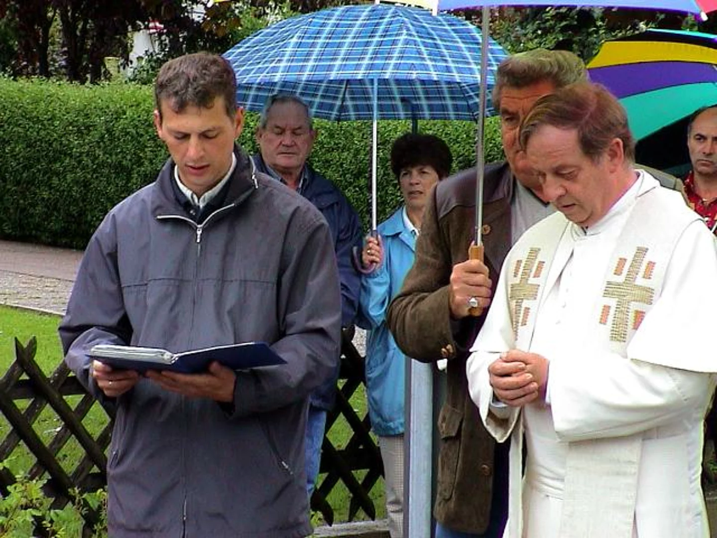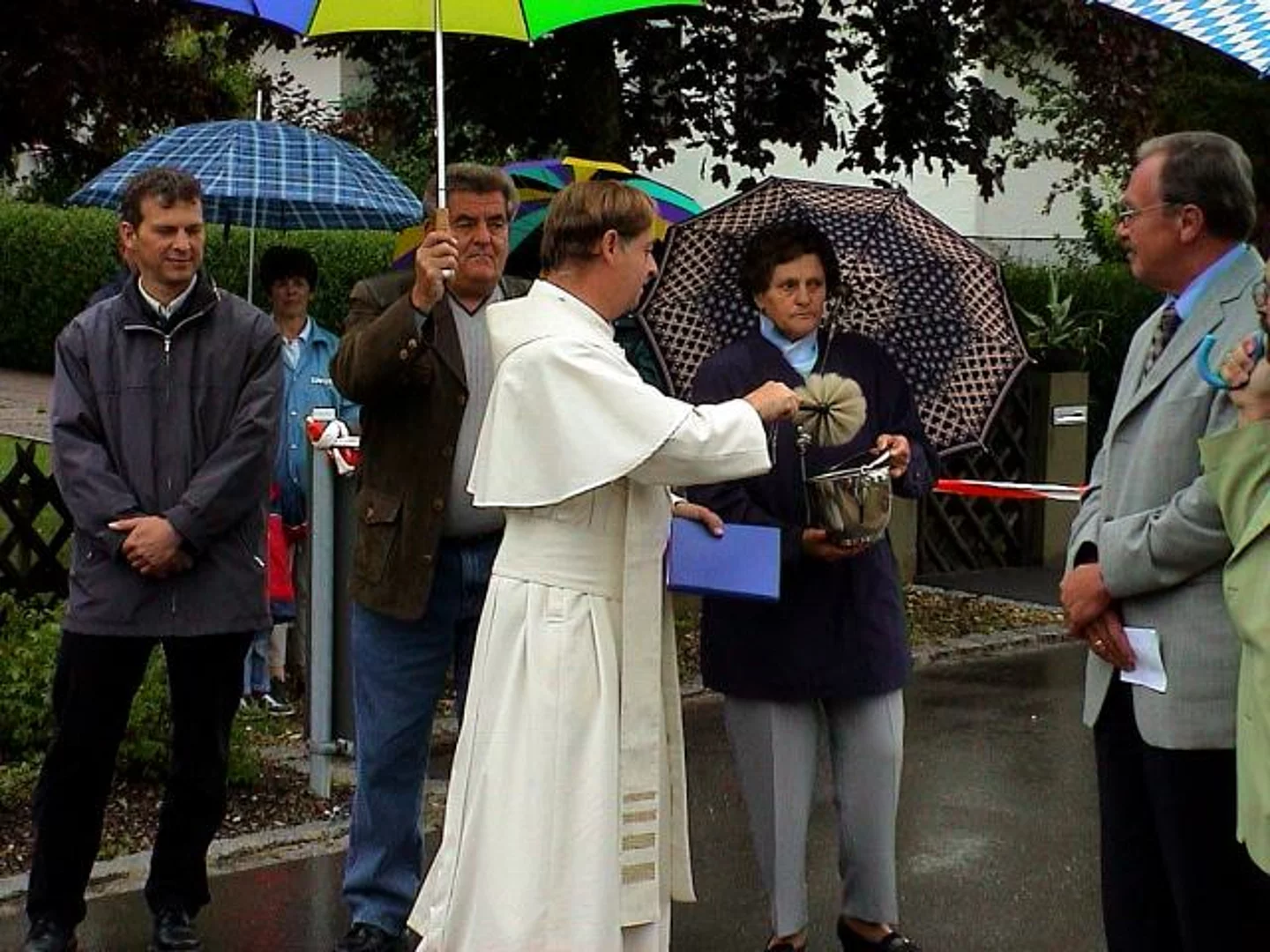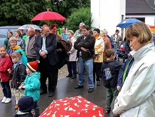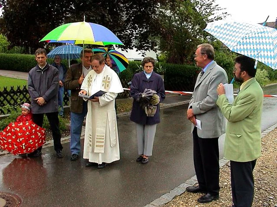Nach Baumaßnahmen, die den Biberbergern viel Geduld und auch finanzielle Opfer abverlangten, konnten an diesem verregneten Samstag die ausgebauten Ortsstraßen samt Ortsdurchfahrt und der neue Spielplatz offiziell ihrer Bestimmung übergeben werden. In Anwesenheit des Landtagsabgeordneten und stellvertretenden Landrats Peter Schmid, Bürgermeister Josef Walz, einiger Marktgemeinderäte und einer erklecklicher Anzahl Biberberger Bürger weihte Pater Konrad die Straßen und den Spielplatz ein. In seiner kurzen Ansprache bedankte sich Bürgermeister Josef Walz im Besonderen bei den Biberberger Bürgern für die Geduld und die Toleranz und das finanzielle Engagement, das sie dem Projekt entgegenbrachten. Lobend hob er die gute Zusammenarbeit mit dem Landratsamt hervor. Begeisterung kam bei den anwesenden Kindern auf, als zum Abschluss seiner Rede eine große Menge von Schokoladenriegeln verteilte. Im Namen des Landkreises betonte Peter Schmid hervor, dass mit Abschluss dieser Baumaßnahmen wieder einmal sichtbar werde, wozu Gemeinsinn in der Lage sei und beglückwünschte die Biberberger Bevölkerung besonders zum neuen Spielplatz. Nachdem Pater Konrad, Peter Schmid, Josef Walz und ein Biberberger Kind gemeinsam das Band als Symbol der Eröffnung durchtrennt hatten traf man sich zum gemütlichen Teil der Feier, die von der Festgemeinschaft Biberberg veranstaltet wurde.