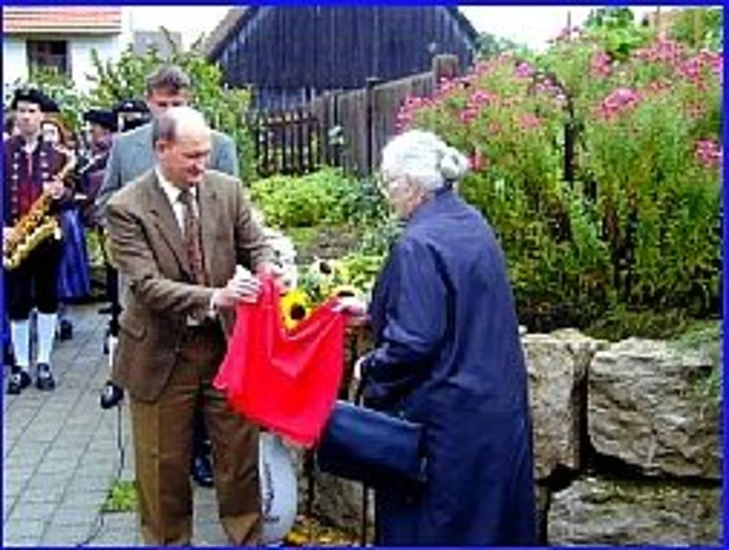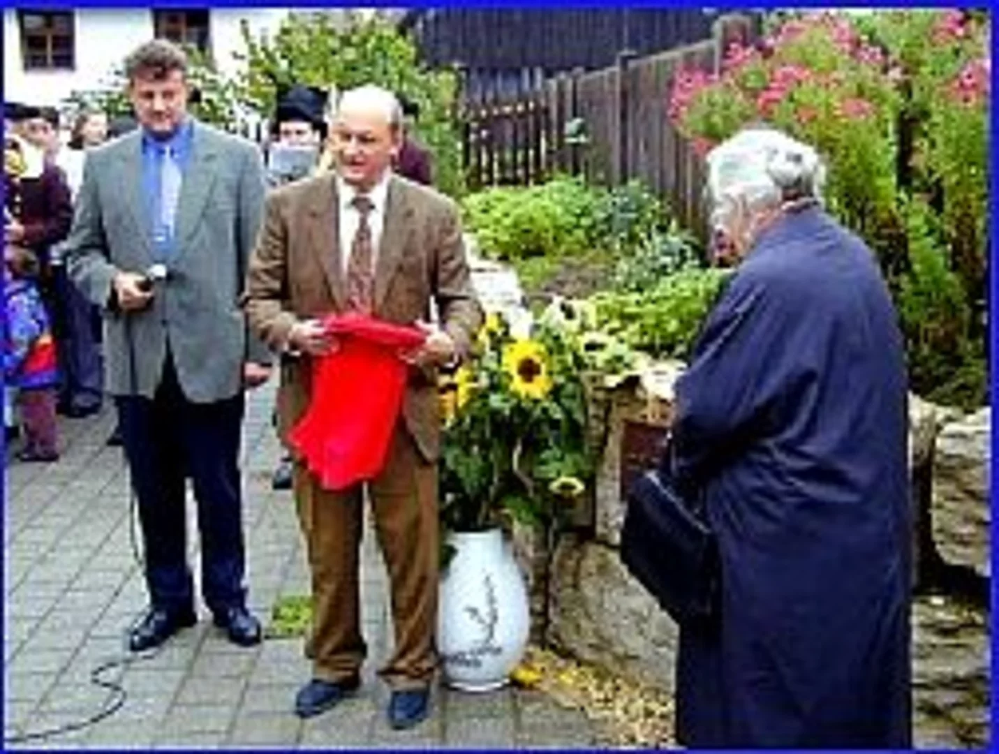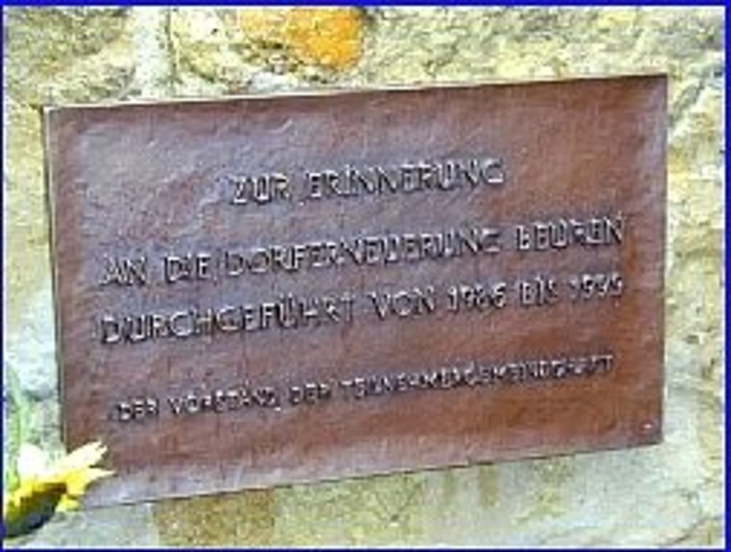 Mit der feierlichen Enthüllung einer Gedenktafel fand die 17 Jahre währende Dorferneuerung Beuren ihren offiziellen Abschluss. Nach dem Festgottesdienst zog die Beurener Bevölkerung unter Begleitung ihrer Musikkapelle, der auch im Rahmen dieser Dorferneuerung neu gestaltet worden war. Der Reigen der Grußworte wurde von Bürgermeister Josef Walz eröffnet, der in seiner Ansprache nochmals einen kurzen Abriss der Geschichte dieser Dorferneuerung gab. Sie begann im Jahre 1983 mit einem Antrag des damaligen Bürgermeisters Erwin Bürzle. 1986 wurde das Verfahren dann angeordnet. Anschließend lobte der stellvertretende Landrat und MdL Schmid den Gemeinsinn der Bürger, die mit viel geopferter Zeit und auch eigenem finanziellen Aufwand ihr Dorf neu gestaltet haben. Der Vertreter des Amtes für ländliche Entwicklung BR Schöffel gab dann einen genauen Überblick über die vorgenomenen Maßnahmen und die investierten Summen. So war zu erfahren, das der Zuschuss knapp eine Million Mark betrug, die Beurenen Bürger für eigene Maßnahmen nochmals 600.000 Mark aufbrachten die wiederum mit 104.000 Mark aus dem Dorferneuerungsprogramm bezuschusst wurden. Dann war der feierliche Moment gekommen und die Gedenktafel wurde von Frau Josefa Hiller, die als eine der ganz wenigen Frauen Bayerns den Mut hatte den Vorsitz einer Teilnehmergemeinschaft zu übernehmen, und Herrn BOR Mohr, der die Dorferneuerung über eine lange Zeit begleitet hatte, enthüllt. Beim anschließenden Pfarrfest wurde dann der erfolgreiche Abschluss gebührend gefeiert.