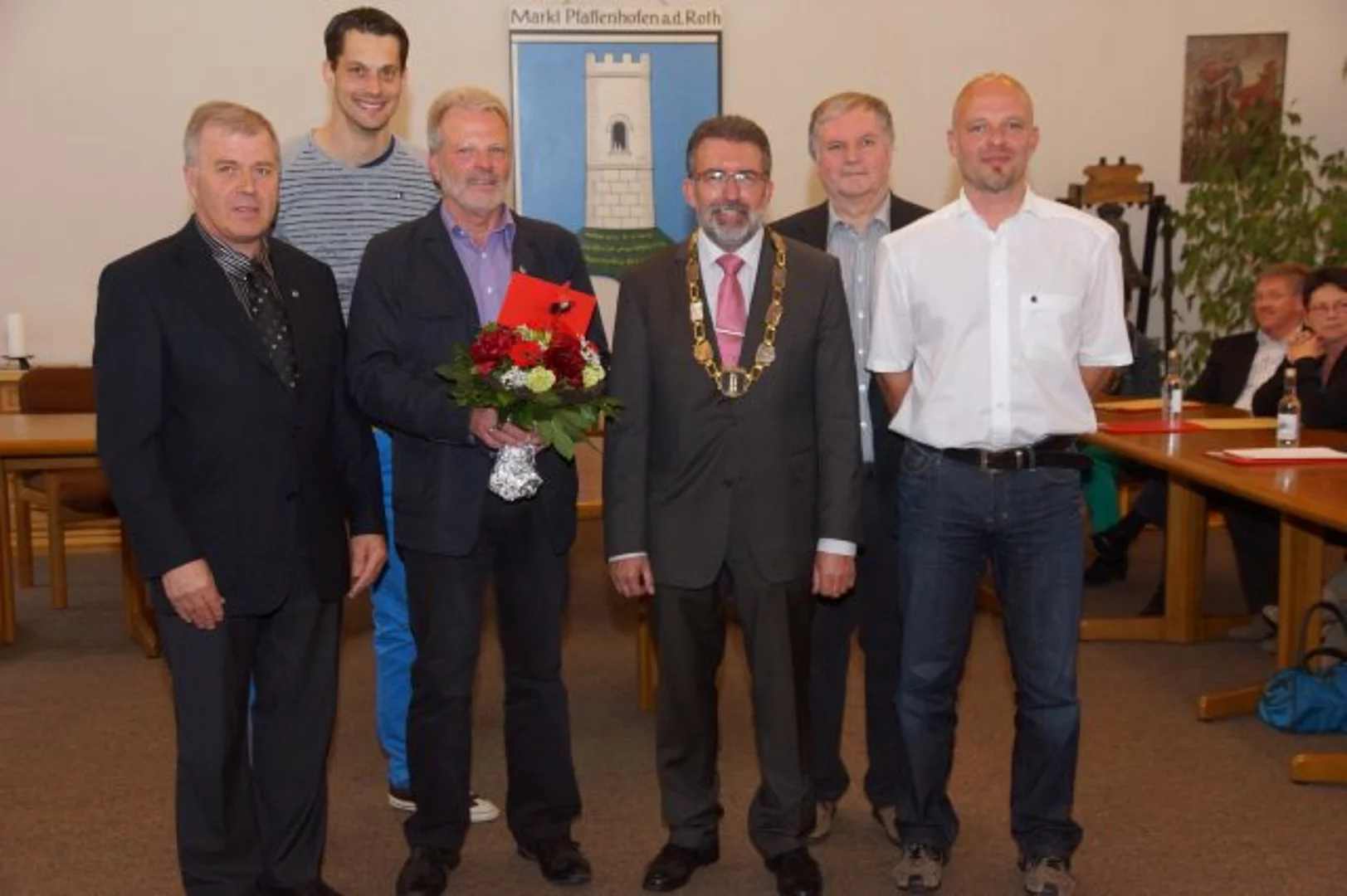 Mit einer Sondersitzung schloss der Marktrat die vergangene Wahlperiode von 6 Jahren ab. Fünf der zwanzig Markträte werden im neuen Gremium nicht mehr vertreten sein. Diese wurden im Rahmen dieser Sitzung feierlich verabschiedet und geehrt. Bürgermeister Josef Walz wies in seiner Laudatio auf die Bedeutung der Kommunalpolitik hin und betonte dabei, dass die Rahmenbedingungen für die Mandatsträger oft nicht einfach seien. „Manchmal scheint es in der Öffentlichkeit in Vergessenheit zu geraten, dass die Übernahme politischer Verantwortung in einer Kommune auf ehrenamtlicher Basis erfolgt“, so Walz. Er bedankte sich für die gute Zusammenarbeit und fügte hinzu: „Auseinandersetzungen gehören dazu und befördern nicht selten auch den Entscheidungsprozess.“ Dabei hätten alle fünf stets fair für ihre Ziele gefochten, ihre Position mit Nachdruck vertreten, aber auch andere Auffassungen respektiert. Unabhängig davon sei bei ihnen die Freude daran, etwas zu bewegen und zu verändern, stets zu spüren gewesen. „Deshalb werdet Ihr den heutigen Tag wohl mit einer Mischung aus Wehmut und Vorfreude erleben". Die Arbeit der ausscheidenden Räte fasste er so zusammen: „Sie haben sich für wegweisende Projekte stark gemacht und dazu beigetragen, dass der Markt seinen Standort gestärkt und an Lebensqualität gewonnen hat“. Der dienstälteste Marktrat Hans Kast war 24 Jahre Mitglied im Gremium. Er meinte, sichtlich bewegt, dass natürlich Wehmut beim Abschied dabei sei, er aber gerne an die Zeit zurückdenken werde. Sechs Jahre am Ratstisch saßen Paul Abt, Michael Klotz und Reinhard Schmöger. Martin Strobel war vor 3 Jahren als Nachrücker ins Gremium eingezogen. Alle fünf Markträte wurden für ihre Verdienste mit der Ehrennadel des Markts Pfaffenhofen ausgezeichnet.