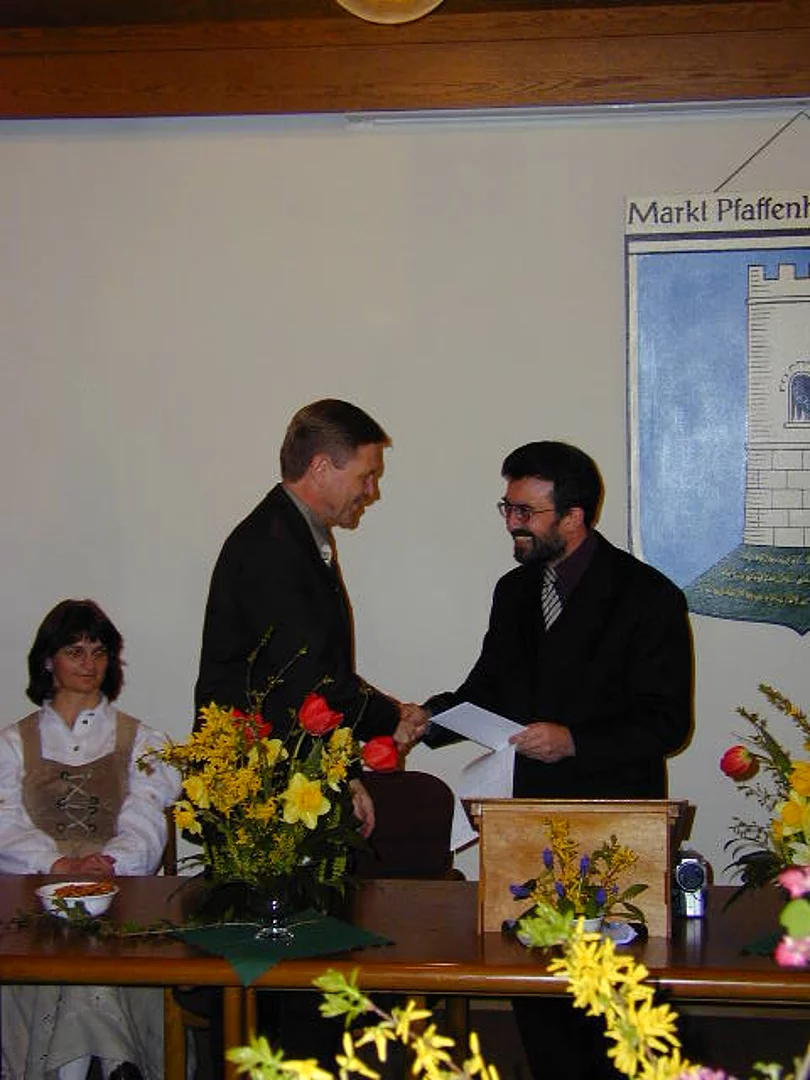 Auf 30 Jahre Vereinsgeschichte kann der Vereinsring Pfaffenhofen zurückblicken. Dies war Anlass genug mit den Mitgliedern Jubiläum zu feiern. Diese waren in Form der Vereinsvorstände in den Sitzungssaal des Rathauses Pfaffenhofen geladen. Dieser war vom Gartenbauverein als Geburtstagsgeschenk wunderschön frühlingshaft mit Blumengestecken dekoriert worden. Ein weiteres Geburtstagsgeschenk kam vom Schützenverein Pfaffenhofen, der sein Böllerschützen schickte, die den Festakt mit einem donnernden Salut eröffneten. Vereinsringsvorsitzender Karlheinz Thoma begrüßte die Anwesenden und nannte sie alle Ehrengäste, da ja erst durch ihr Engagement und ihre Mitgliedschaft der Vereinsring existiere und seinen Sinn erhalte. Eine kurze Rückblende in die Vereinsgeschichte erhellte, warum zur Feier des 30- und 20-jährigen Jubiläumsgeladen worden war. Vor 30 Jahren wurde Hans Schätzthauer zum Koordinator für das Vereinswesen ernannt. Bereits das nächste Versammlungsprotokoll war mit Vereinsring überschrieben, so dass man das Jahr 1971 mit Fug und Recht als das Geburtsjahr des Vereinsring bezeichnen darf. Im Jahr 1981 erfolgte dann die Gründungsversammlung die dann den Vereinsring zum eingetragenen Verein werden ließ. Großen Dank sprach Karlheinz Thoma dem ersten Vorsitzenden des Vereinsrings Hans Schätzthauer aus, der erst vor wenigen Wochen verstorben war und just am selben Tag zu Grabe getragen wurde, an dem vor 20 Jahren die Gründungsversammlung des Vereinsrings stattfand. Bürgermeister Josef Walz würdigte als erster Gratulant die Verdienste des Vereinsrings und meinte, dass der Jubilar, wenn man die beiden Jubiläen zusammenzähle, ja bereits das 50-jährige feiere. Pfarrer Egger rühmte in einer launigen Ansprache die Arbeit die im Vereinsring für die Vereine geleistet werde. Anschliessend gab der frühere langjährige Vorsitzende Heinz Klauer manche Erinnerung und Anekdote zum Besten. Alf Endres überbrachte die besten Wünsche vom Gewerbeverband Pfaffenhofen, gefolgt von Jakob Eberle vom SVP, Josef Klemm vom Soldaten- und Veteranenverein und Martin Sailer für die AWO. Als Dank an die Vereinsvorstände für die gute Zusammenarbeit und als Gelegenheit zum ungezwungen Plausch und Meinungsaustausch lud der Vereinsring zum Büffett ein. Dies wurde denn auch bis in die Morgenstunden gerne angenommen.
