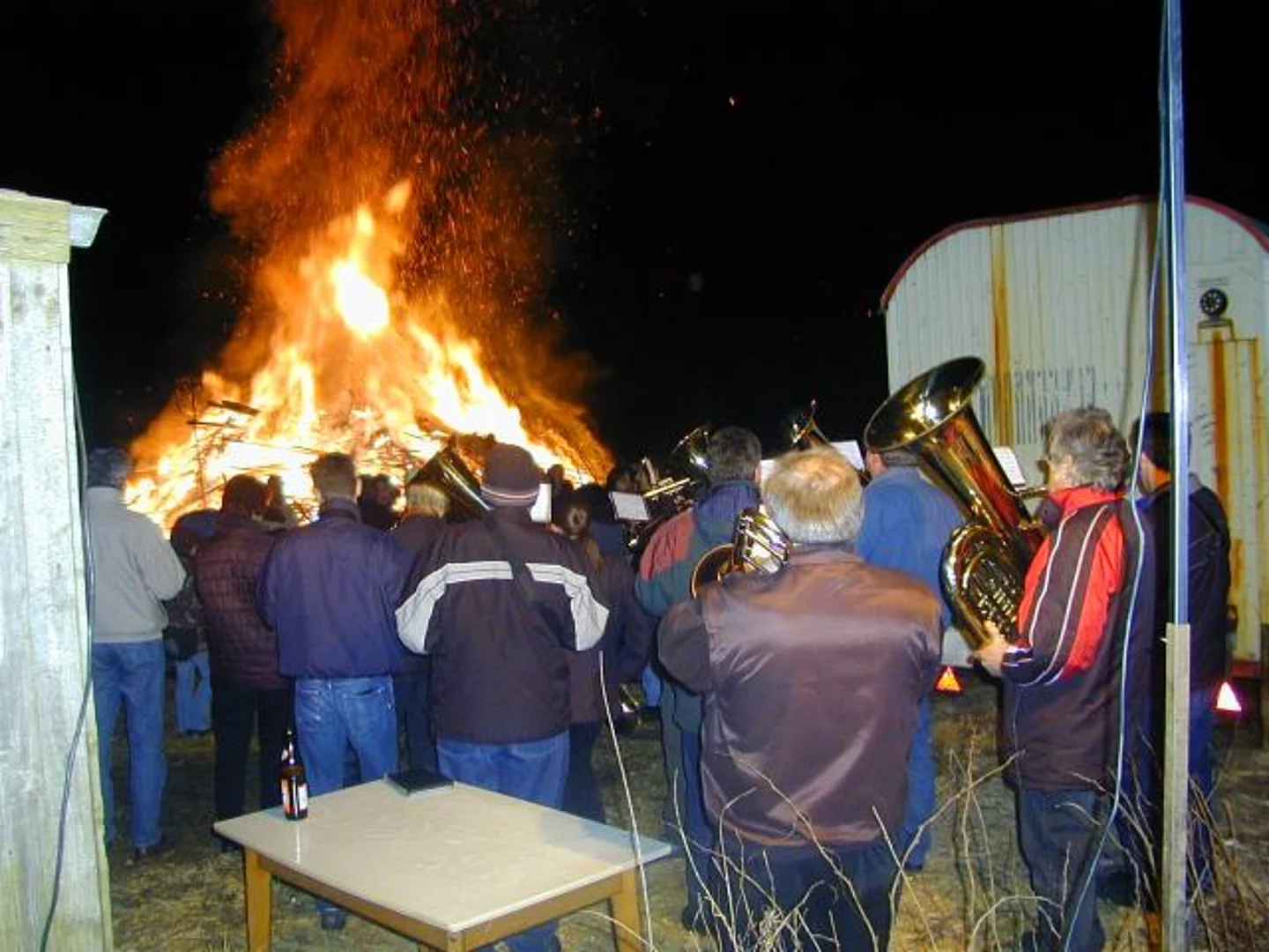 Der Winter hat uns ja heuer noch voll im Griff mit Eis und Schnee. Da ist es sehr zu loben, dass auch heuer die alte Tradition des Winteraustreibens mittels eines kräftigen Funkenfeuers samt Verbrennen des Winters in Gestalt einer Hexe aufrecht erhalten wird. Mit Lampions und Fackeln ausgerüstet marschierte Groß und Klein zum Funkenplatz zwischen Niederhausen und Pfaffenhofen, wo schon ein großer Scheiterhaufen aufs Entzünden wartete. Nah kurzer Zeit brannte er lichterloh, unter schrecklichem Heulen und Krachen löste sich die Hexe, respektive der Winter in Rauch auf. Eine Abordnung der Musikkapelle Pfaffenhofen musizierte zu Spektakel. Mit Krapfen, Leberkäs, Glühwein und Kinderpunsch war fürs leibliche Wohl bestens gesorgt.