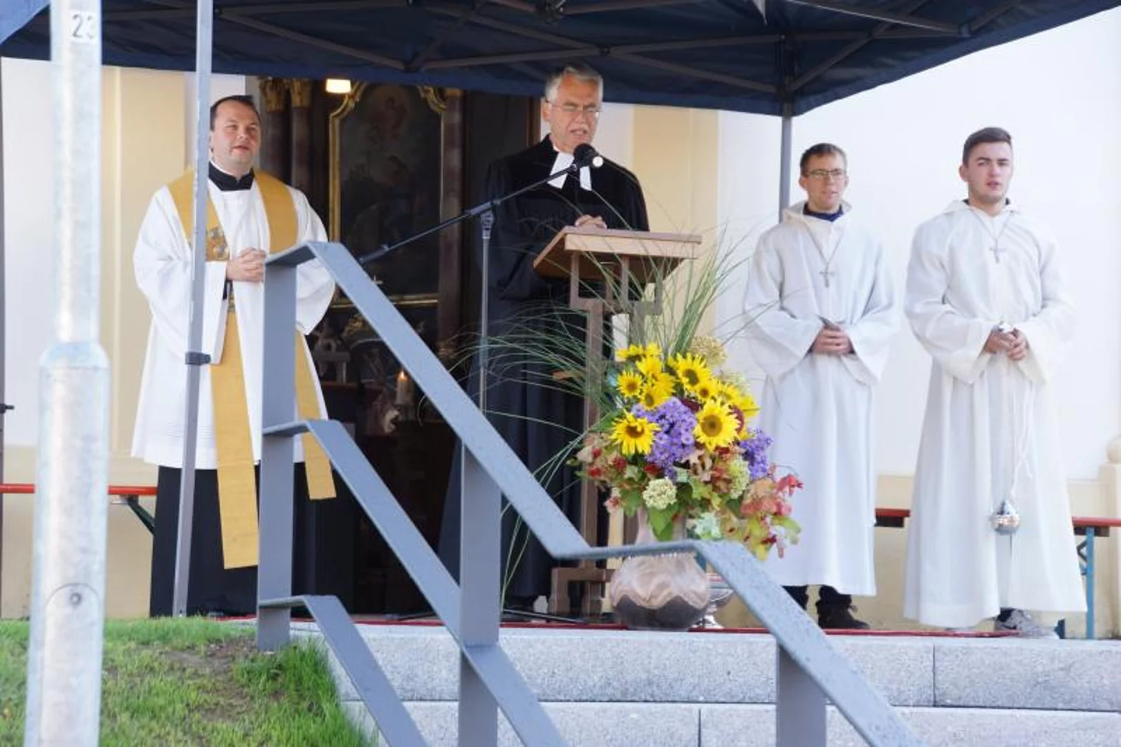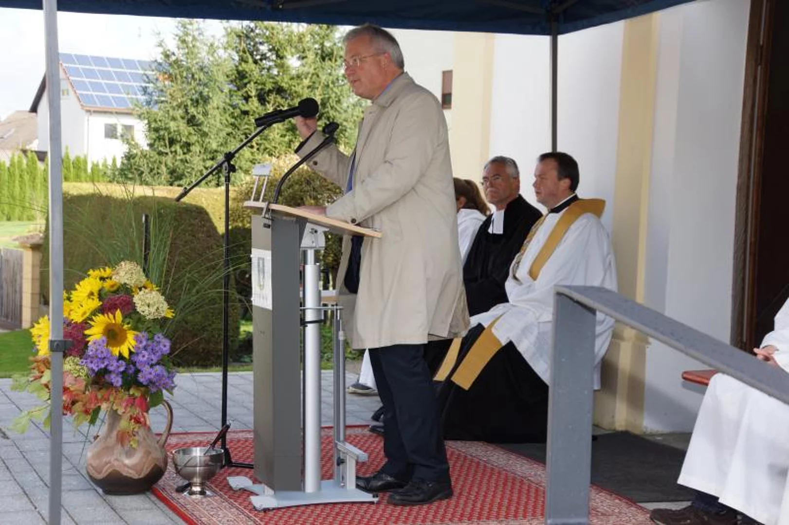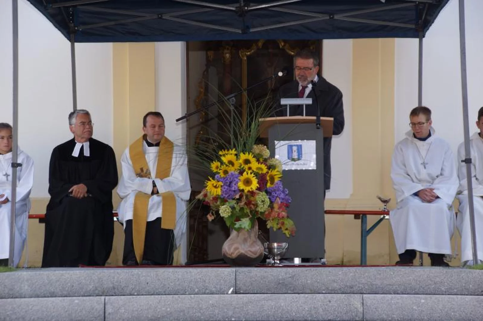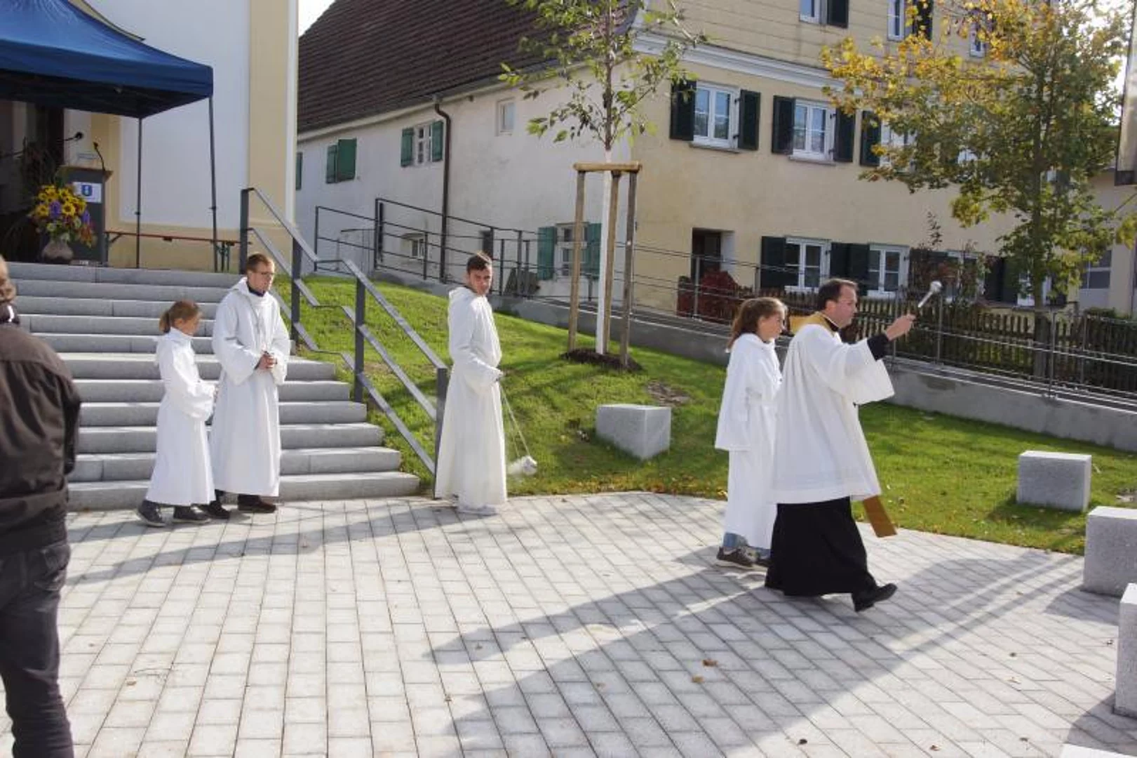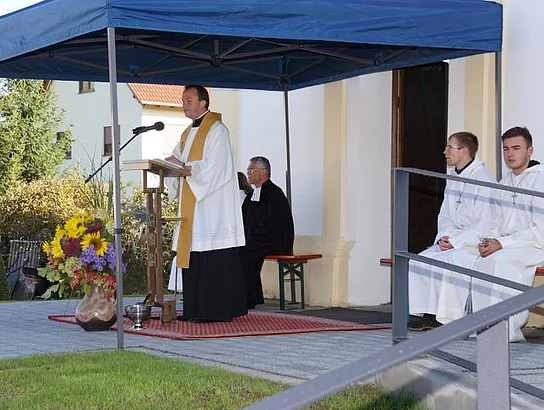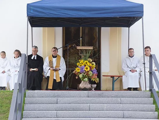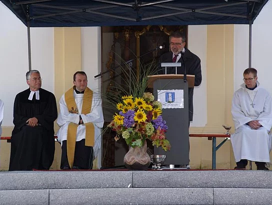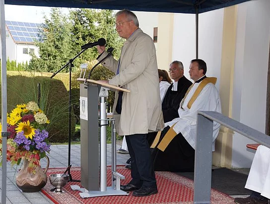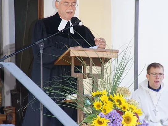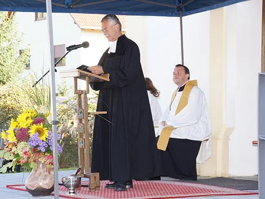 Die ökumenische Weihe nahmen der evangelische Pfarrer Thomas Pfundner und der katholische Priester Reinfried Rimmel vor. Das katholische Kirchlein St. Ulrich hatte von 1947 bis 1961 der evangelischen Gemeinde als Gotteshaus gedient.
