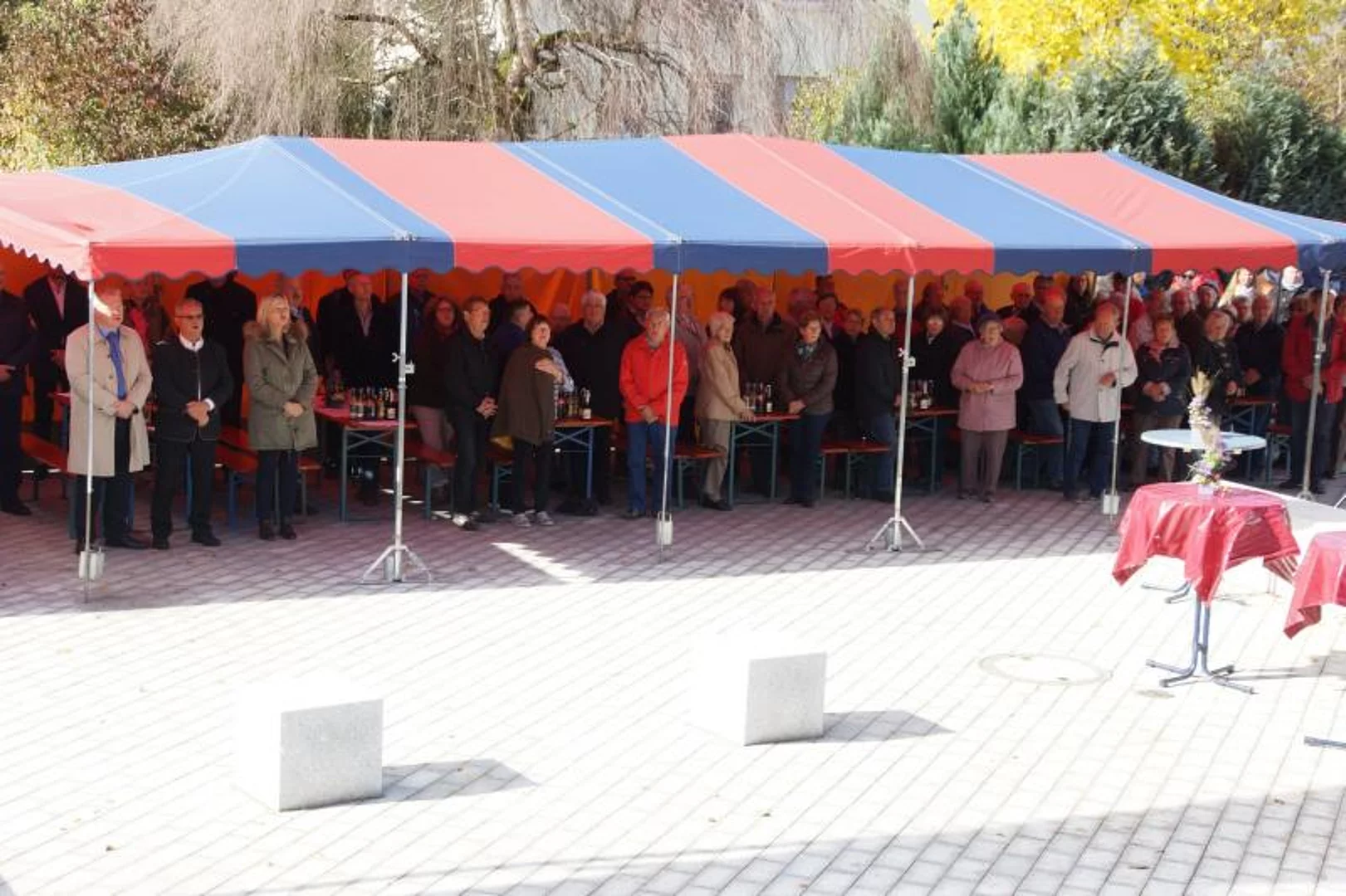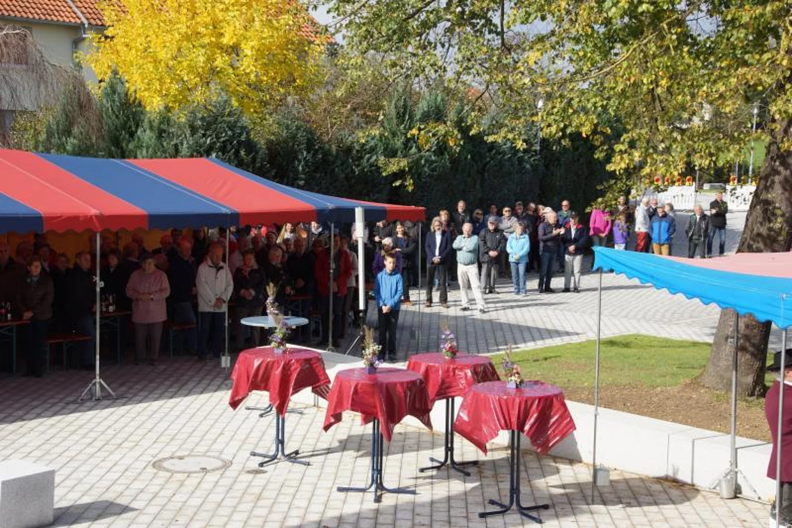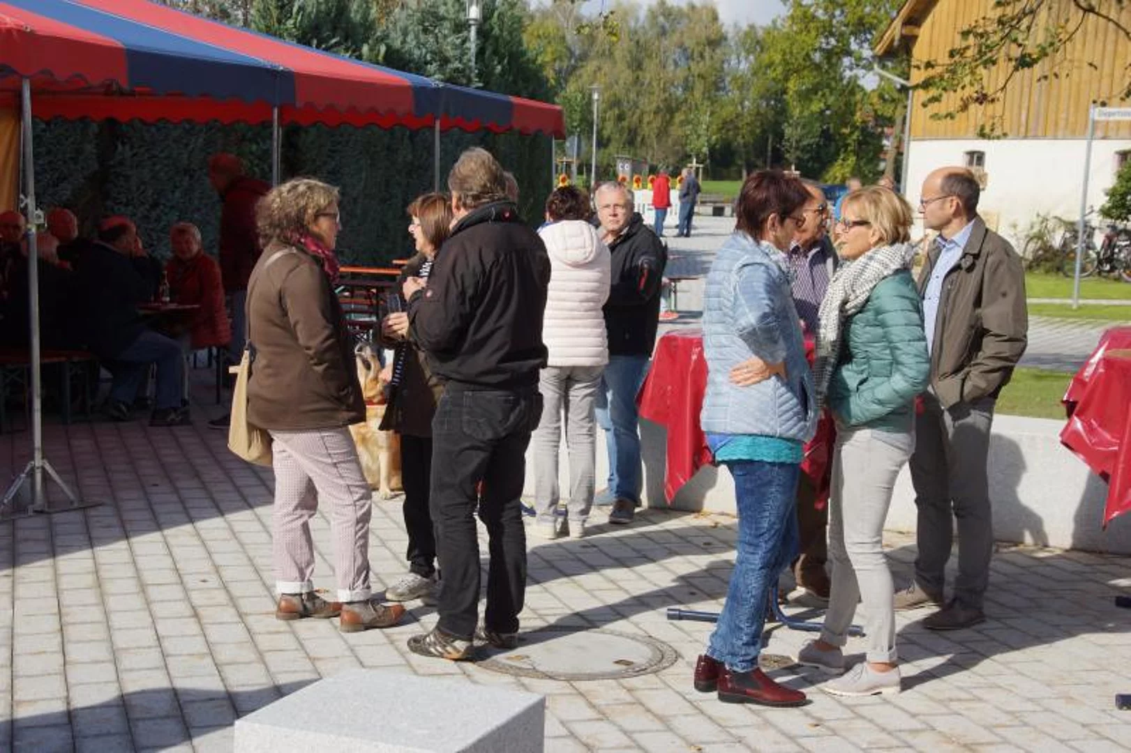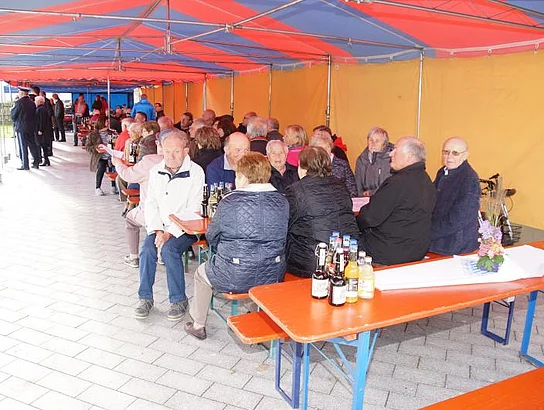 Nach der Segnung war die zahlreich erschienene Bevölkerung auf einen Umtrunk eingeladen um den neuen Dorfplatz gleich seiner eigentlichen Bestimmung zuzuführen, ein Ort der Begegnung zu sein.