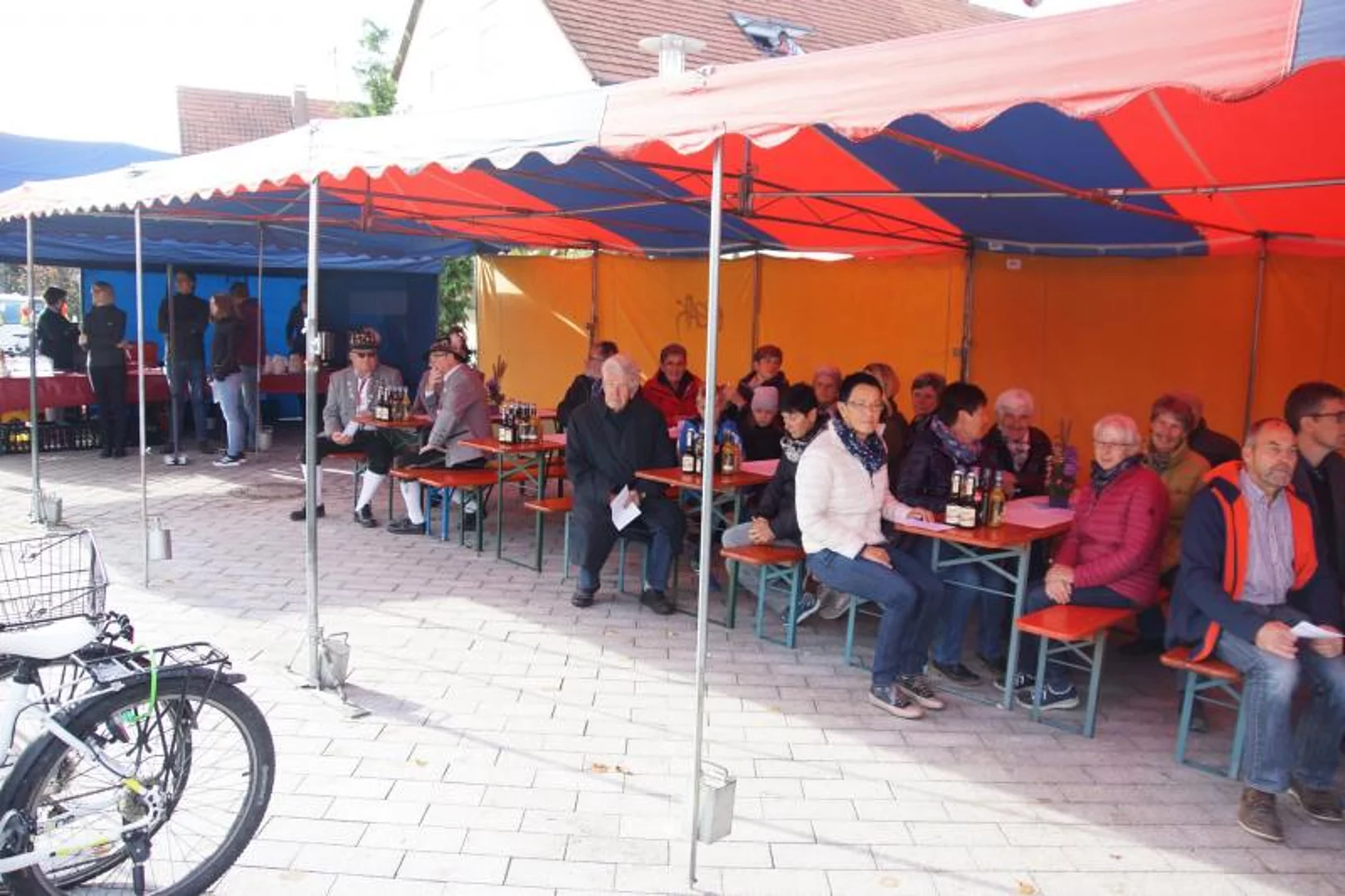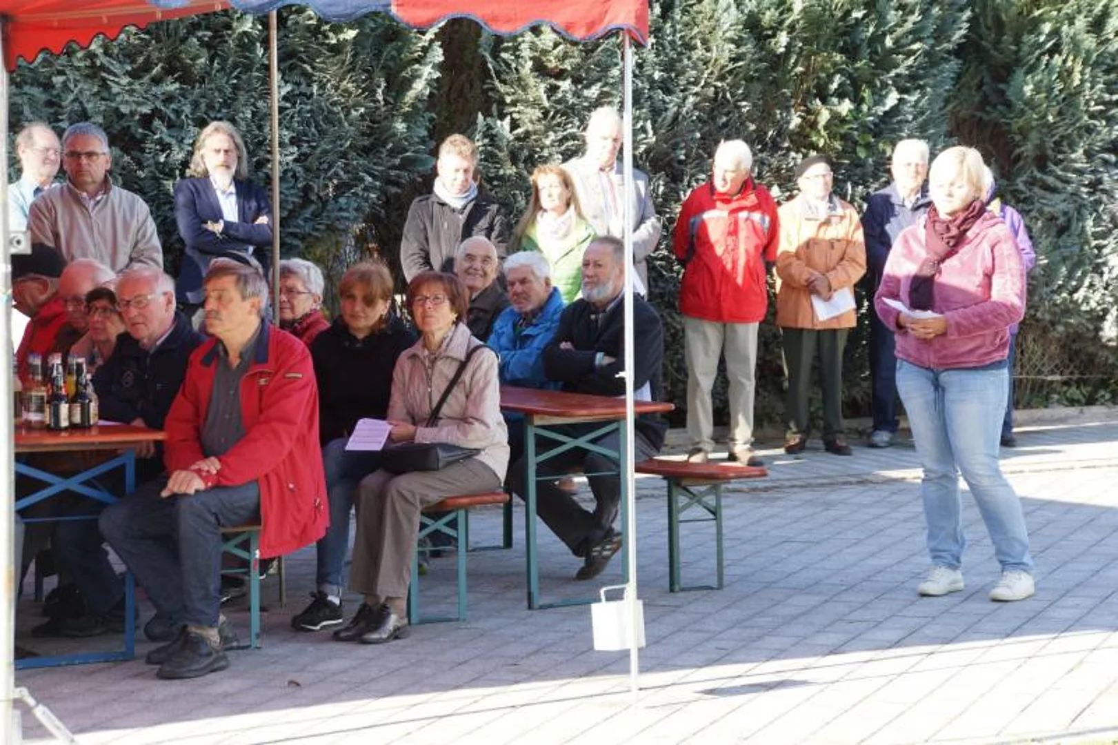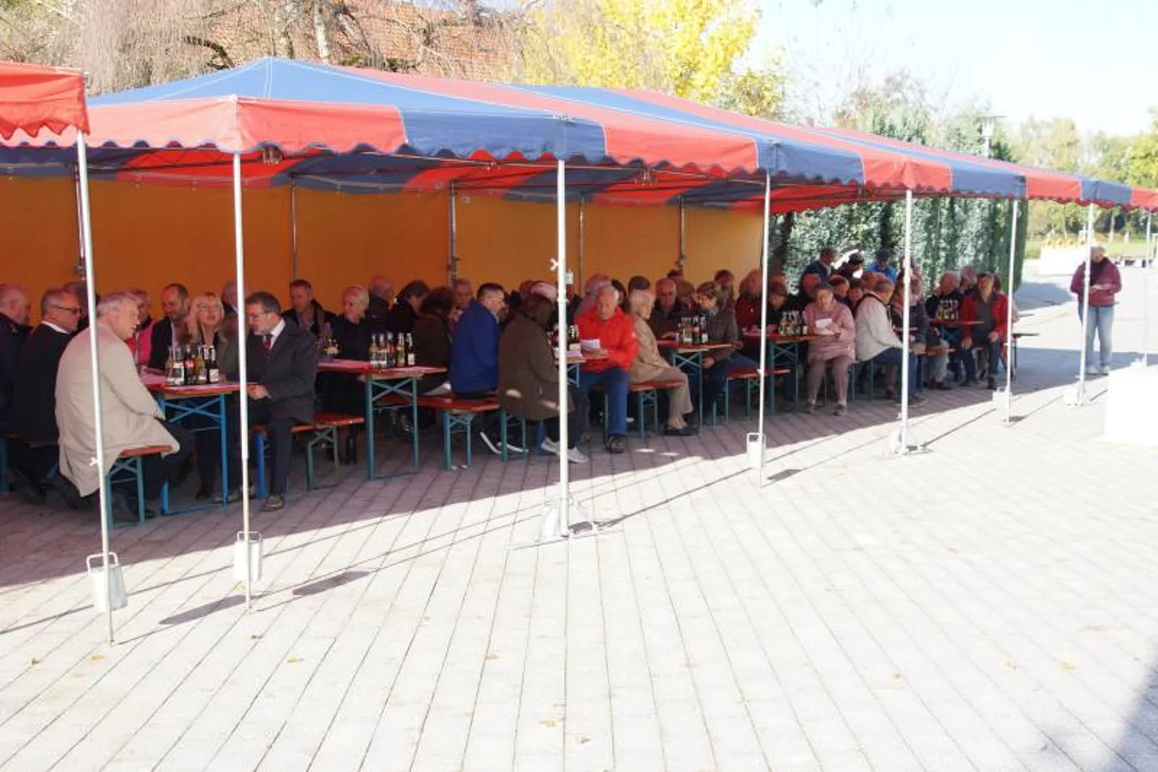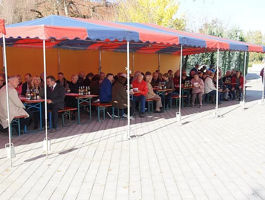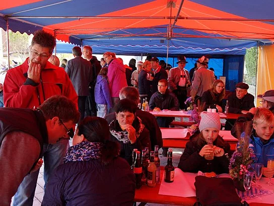 Nach der Segnung war die zahlreich erschienene Bevölkerung auf einen Umtrunk eingeladen um den neuen Dorfplatz gleich seiner eigentlichen Bestimmung zuzuführen, ein Ort der Begegnung zu sein.