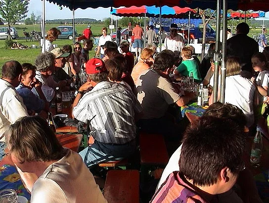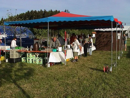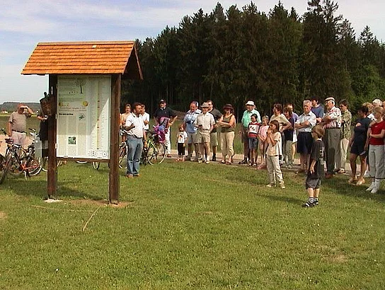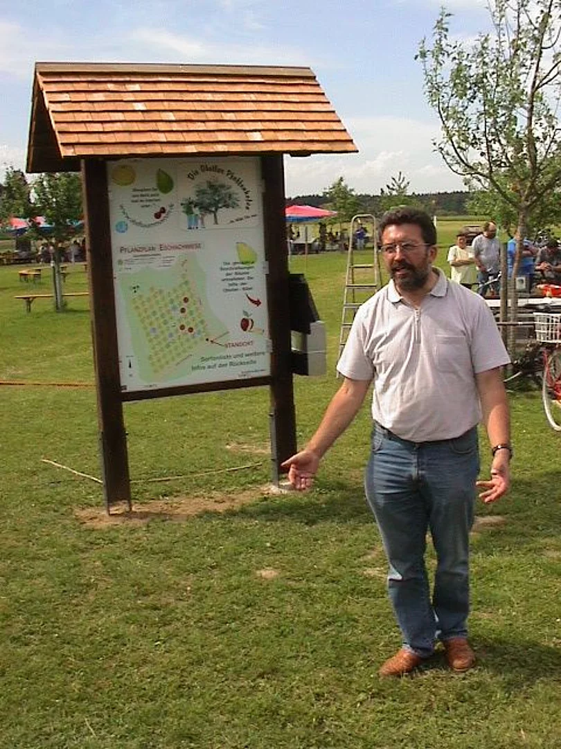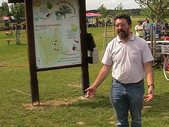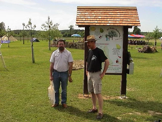 Offiziell zum Museum erklärt wurde die Streuobstwiese mit der Enthüllung einen großen Infotafel. Auf dieser ist zum Beispiel der Lageplan und das Obstbaumverzeichnis zu finden, damit sich der Besucher rasch orientieren kann, wenn er sich für eine bestimmte Sorte interessiert. In einem Kasten an dieser Infotafel findet sich die so genannte "Obstlerbibel". In ihr ist jeder einzelne Baum genau beschrieben. Auch an eine Gästebuch wurde gedacht. Nach der Enthüllung würdigte Bürgermeister Josef Walz in einer kleinen Ansprache die Leistung, die diese Bürgerinitiative, ganz ohne Zuschüsse, zuwege gebracht hatte. Anton Maier und Otto Maaß erhielten als kleinen Dank einen Marktkrug überreicht. Das neue Museum musste dann noch ausgiebig gefeiert werden. Etwa 350 Gäste labten sich bis spät in die Nacht mit Pfaffenhofer Urtrunk, selbstverständlich Apfelmost, Leckerem vom Grill, Kaffee und Kuchen. Es mangelte auch nicht an Attraktionen für Groß und Klein. Von der Pferdekutschenfahrt, Pony reiten, Streichelzoo, Bulldog-Oldtimer bis zur Bocciabahn war alles geboten.