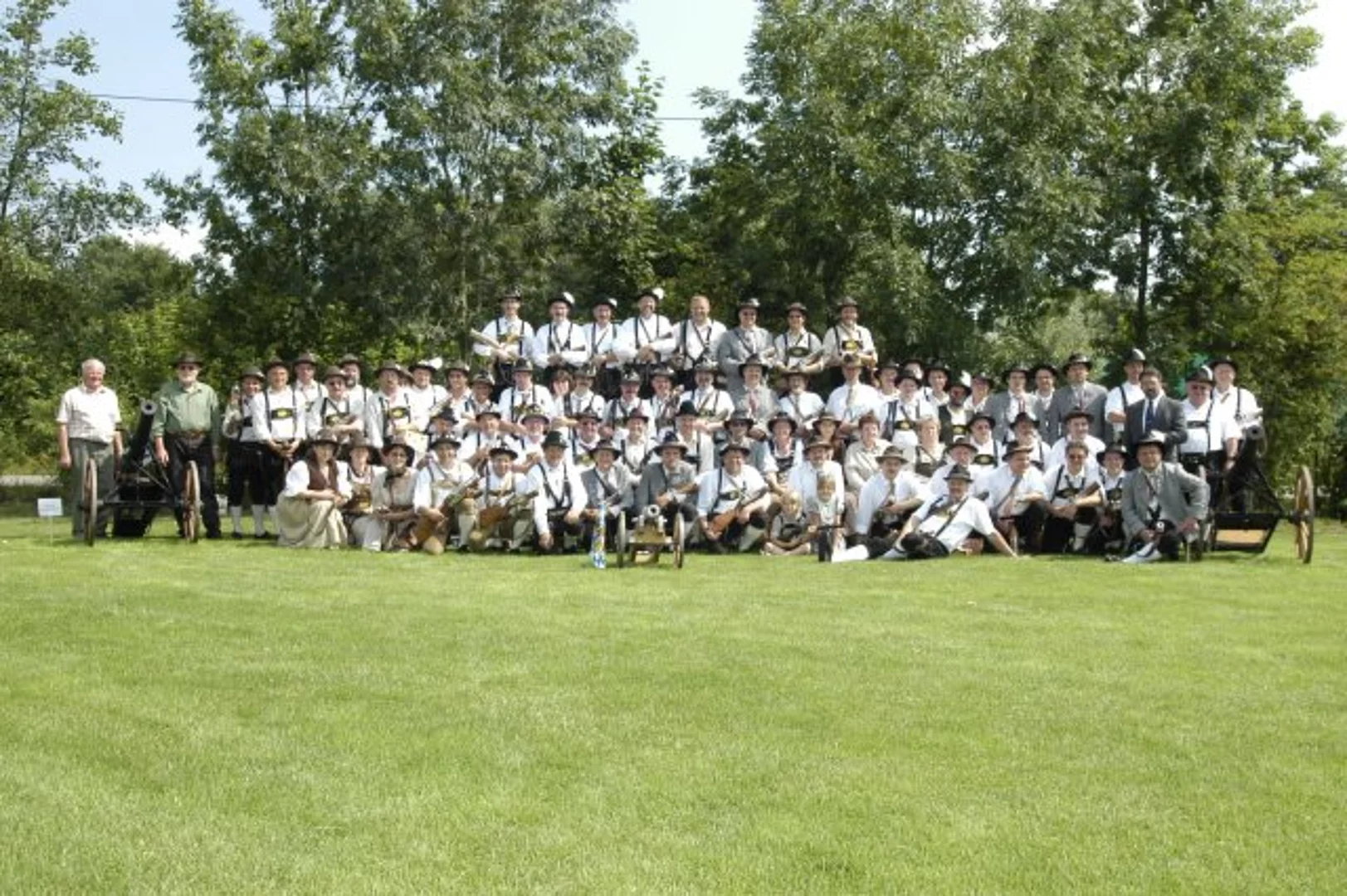 Richtig feiern heißt mit Freunden feiern. Und so lud der Schützenverein Pfaffenhofen zum Anlass des fünfjährigen Bestehens seiner Böllerschützengruppe zum „Ersten Rothtaler Böllertreffen“ ein. Zu Gast waren Schützengruppen aus Pfuhl, Wangen, Weißenhorn, Burlafingen, Straß, Unterelchingen und Hetschwang. Zum Einsatz kamen nicht nut Böllerpistolen, sondern auch Kanonen der Gäste und auch das Gerät des Veteranen- und Reservistenvereins Pfaffenhofen. Zuerst wurden die Gäste mit frischen Weißwürsten gestärkt, dann ab elf Uhr ließen es gut 80 Böllerschützen im wahrsten Wortsinn richtig krachen. Im Jahr 1999 gründeten fünf Schützen aus dem Verein eine eigene Böllerschützengruppe. Vor dem ersten Schuss bei einem Festakt in Weißenhorn mussten erst die nötigen Prüfungen abgelegt und die Genehmigung beim Landratsamt eingeholt werden. Beim Böllerschießen geht es ja nicht ums Treffen, vielmehr sei das Schießen als Ehrenbezeigung und als Ausdruck von Lebensfreude zu verstehen, erläuterte der Vorsitzende des Schützenvereins, Ulrich Orzechowski. Erfreut zeigte er sich, dass die Gruppe inzwischen auf zehn Mitglieder angewachsen ist. Gleicher Meinung ist Jürgen Backeler, der Leiter der Böllerschützengruppe. „Feiern und besondere Anlässe erhalten durch das Salutschießen einen festlichen Rahmen“, fügt er hinzu. Wichtig sei, dass beim Schießen Disziplin herrsche und alle Sicherheitsvorkehrungen korrekt eingehlaten würden. Nur so könne in der Bevölkerung Akzeptanz erreicht werden, betont er. Bei seiner Begrüßung freute sich Bürgermeister Josef Walz über den imposanten Anblick des Aufmarsches der Böllerschützinnen und –schützen entlang des Spielfelds des Sportgeländes. Dann war die Zeit von Schußmeister Stefan Loska gekommen. Seine Kommandos lösten die verschiedenen Schußserien aus. Zuerst Salut, dann in Reihe langsam und schnell, von links, rechts und gegenseitig. Beim letzten Salut durfte Bürgermeister Josef Walz das Kommando führen. Danach war Gelegenheit für gemütliches Beisammensein beim Sport- und Schützenheim.