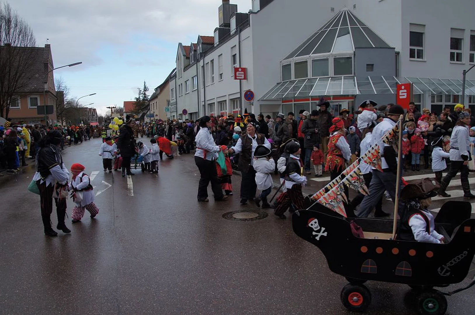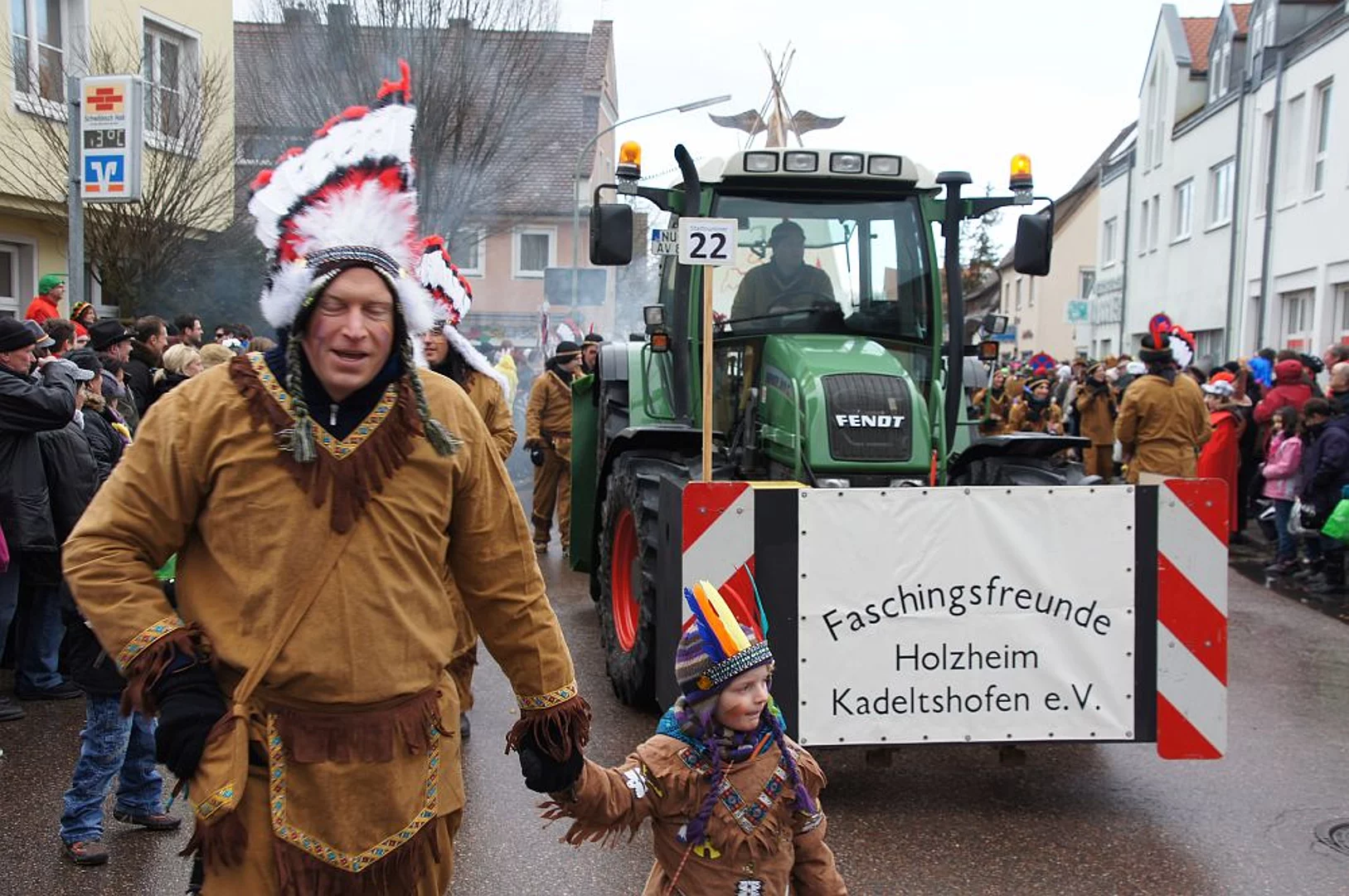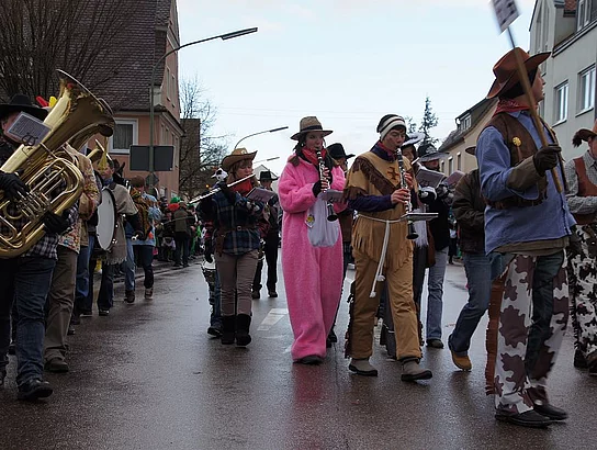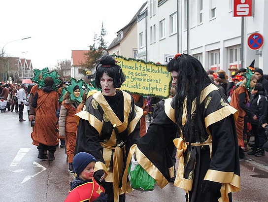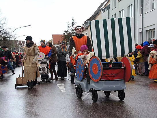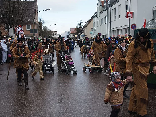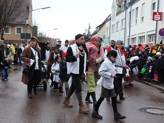 Noch ein heftiger Graupelschauer kurz vor Beginn, dann aber trockenes und nicht zu kühles Wetter. Keine schlechten Bedingungen für den alljährlichen Faschingsumzug. 17 Gruppen und viele Zuschauer hatten sich eingefunden den Faschingssonntag gebührend zu feiern. Wie jedes Jahr war die Kindergärten vertreten, Der Kindergarten St. Monika brachte Wickie und die starken Männer mit, die Kindertagesstätte St. Martin zeigte Xaver und seine Zootiere und der Kindergarten Sonnenschein ging mit großen und kleinen Piraten auf die Reise. Die Umzugsroute verlief heuer zum zweiten Mal Richtung Nordosten da diese Änderung im vergangenen Jahr auf große Zustimmung bei Publikum und Gruppen gestoßen war. Das Publikum bekam phantasievolle Kostüme und aufwändige Wagen zu sehen mit denen zum Teil lokale Begebenheiten aufs Korn genommen wurden. So war ein mobiles Caféhaus zu sehen, die wilden Jungs nahmen den Winterdienst auf die Schippe und auch die Weihnachtsbeleuchtung wurde thematisiert. Das Publikum hatte die Möglichkeit die tollsten Gruppen zu wählen. Diese wurden dann vom veranstaltenden Vereinsring mit Geldpreisen bedacht. So erhielten die erstplatzierten Turnerfrauen mit ihrem mobilen Caféhaus 100,- €, die Cowboys und Indianer der Faschingsfreunde Holzheim-Kadeltshofen für den zweiten Platz 90,- €. Den dritten Platz und 80,- € konnten die Eschachwalker mit ihrem Loblied auf die neue Weihnachtsbeleuchtung erobern. Jeweils 10,- € weniger erhielten die nächstplatzierten: 4. Platz Barbie und Ken (Hütte Kadeltshofen-Silheim), 5. Platz Die wilden Jungs des Winterdienstes (Schlumberger), 6. Platz Samurai (Bänkle), 7. Platz Himmelspuster (Musikverein Pfaffenhofen), 8. Platz Schelmenschinder Weißenhorn, 9. Platz Geisterstammtisch (Hütte Diepertshofen), 10. Platz Indianer (Attenhofener Pressband). nach dem Umzug wurde bei Grillroten, Bürzala und Walzerpunsch auf dem Rathausparkplatz noch kräftig gefeiert.