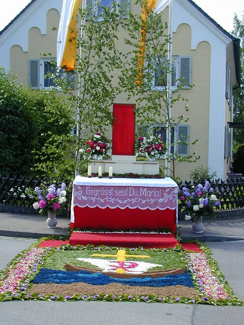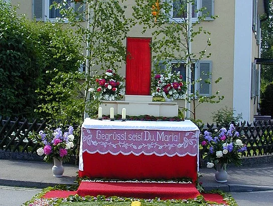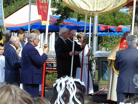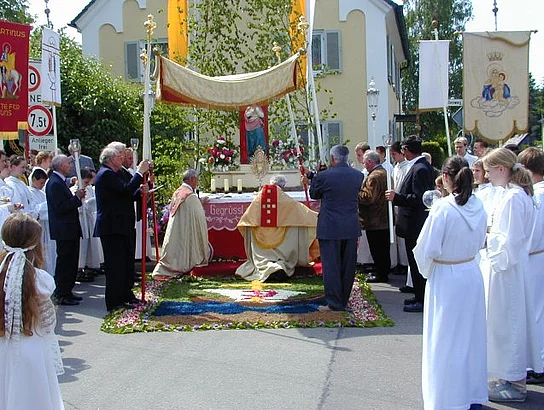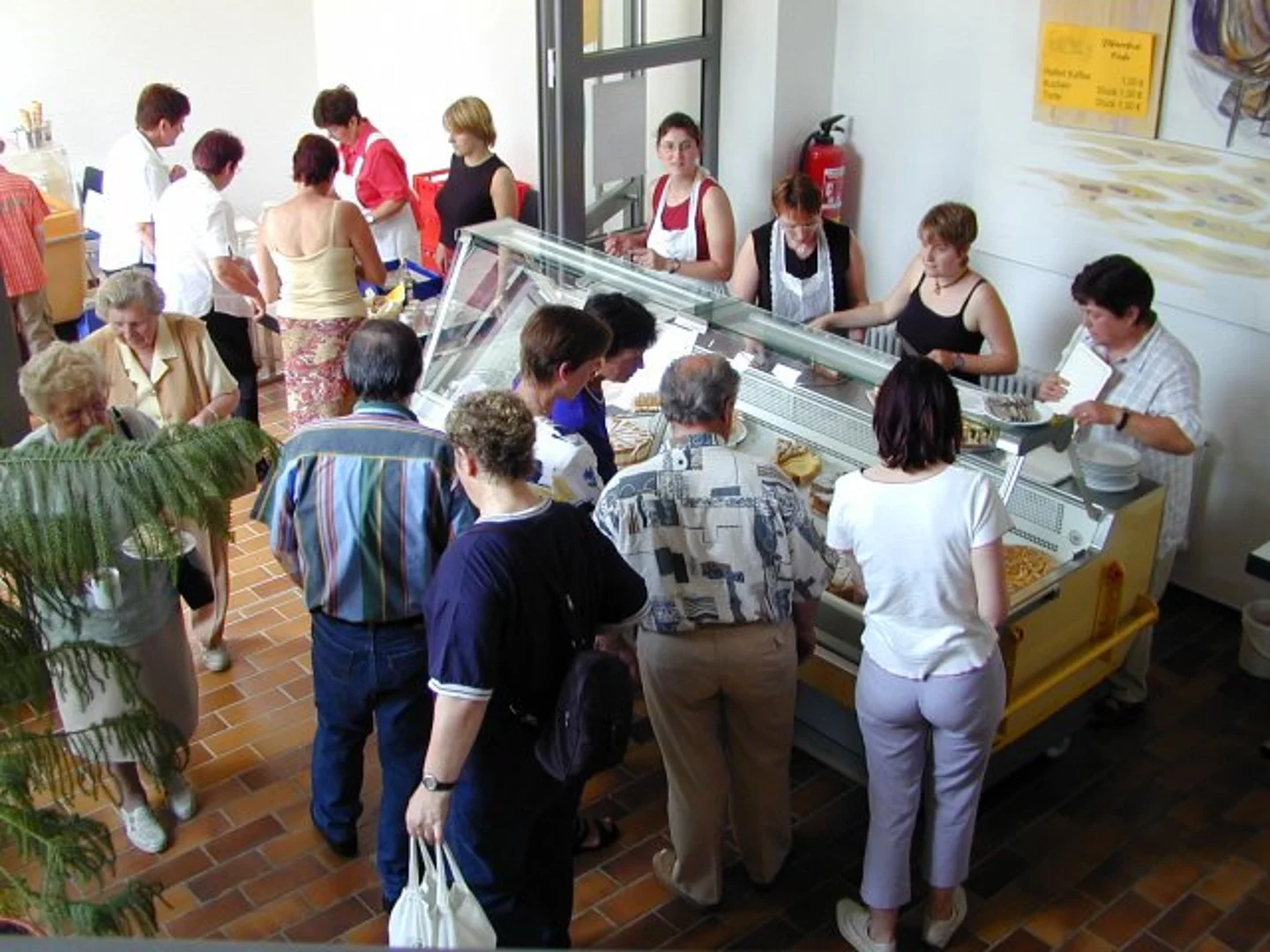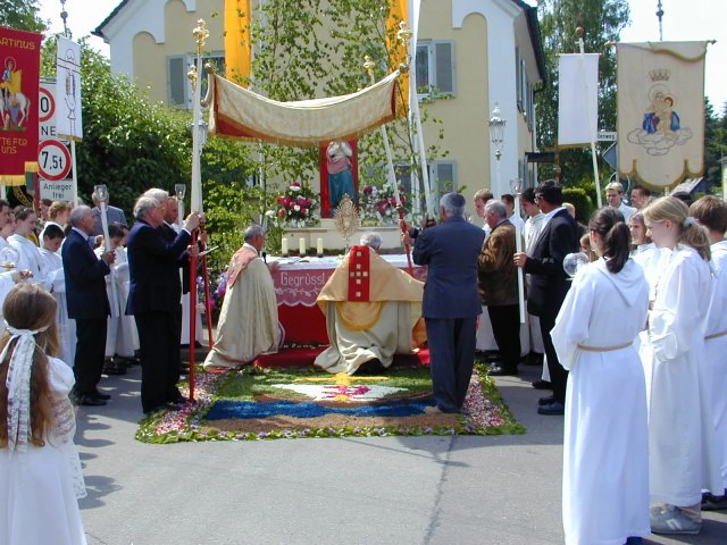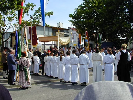 Die Vorhersagen war bedrohlich, Gewitter und heftige Schauer im Laufe des Tages, die Realität erfreulich. Das schöne, schon fast zu warme Wetter hielt bis zum Abend und so war eine wichtige Voraussetzung für den Fronleichnamstag gegeben. Ein sehr große Zahl an Gläubigen nahm an der Pfaffenhofener Fronleichnamsprozession teil, die vom Musikverein Pfaffenhofen und dem Liederkranz Pfaffenhofen musikalisch begleitet wurde. Nach der Prozession zog ein großer Teil der Teilnehmer ohne Umschweife zum Martinushaus weiter, wo das traditionelle Pfarrfest seine Lauf nahm. So genau ließ es sich nicht sagen aber nach der Erinnerung von Beteiligten , in der Regel zuverlässigen Quellen, war dieses Jahr die 30. Wiederholung des Pfarrfests. Zum ersten Mal wurde es auf Initiative der Mitglieder der damaligen katholischen Landjugend. Mit dem Erlös wollte sie die Anschaffung eines Rasenmähers für die Pfarrgemeinde unterstützen. Von einem wahren Ansturm überrascht hatten die Jugendlichen alle Hände voll zu tun um die Gäste zufrieden zu stellen. Mehrmals musste der örtliche Metzger aus seiner Feiertagsruhe aufgeschreckt werden damit der Nachschub an Grillwürsten gesichert werden konnte. Der vom Erlös angeschaffte Rasenmäher existiert wohl nicht mehr, das Pfarrfest aber wurde zu einer festen Größe im Festkalender unserer Gemeinde.