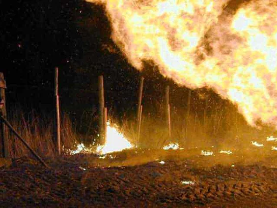 Durch die enorme Hitze begann sogar der Zaun, der den Brandplatz eingrenzt, leicht zu brennen. Die anwesenden Feuerwehrleute aus Niederhausen hatten aber keine Mühen und löschten die verschiedenen kleinen Feuerstellen.