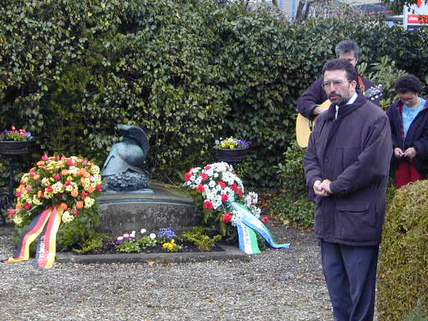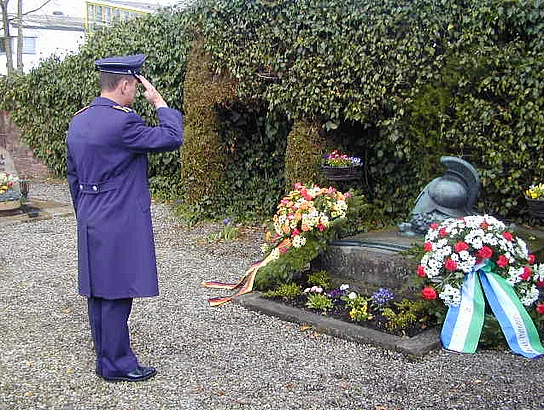 74 Jahre ist es her, dass die erste erfolgreiche Ozeanüberquerung mit dem Flugzeug von Ost nach West stattfand. Aus diesem Anlass fand eine kleine Gedenkfeier am Grab des Ozeanfliegers Hermann Köhl statt. Mit einer Abordnung war das Jabogeschwader 34 Allgäu aus Memmingen vertreten. Diese Einheit hat auch die Patenschaft zur Grabpflege übernommen. Der Markt Pfaffenhofen war durch den 1. Bürgermeister Josef Walz, den 2. Bürgermeister Josef Gold und einige Marktgemeinderäte vertreten. Eine Schulklasse der Hermann-Köhl-Schule war mit Rektor Manfred Rothenberger und ihrem Lehrer Anton Wiedenmann gekommen. Sie trug das Lied "Über den Wolken" vor. Bürgermeister Josef Walz wies in seiner Ansprache darauf hin, dass Hermann Köhl mit seiner bravourösen Tat nach dem ersten Weltkrieg entscheidend dazu beitrug, dass Deutschland in der Welt wieder Anerkennung fand. Hauptmann Kunkel stellte in seiner Rede die fliegerische Großtat von Hermann Köhl dem fliegerischen Verbrechen vom 11. September gegenüber. Er meinte, dass beide Flüge Grenzen verschoben hätten, jedoch in völlig gegensätzliche Richtung. Hermann Köhls Flug hätte Brücken zwischen den Völkern gebaut, der verbrecherische Anschlag versucht Brücken zu zerstören, in blindem Hass. Das Jabogeschwader 34 Allgäu und der Markt Pfaffenhofen legten einen Kranz am Grabe Hermann Köhls nieder.