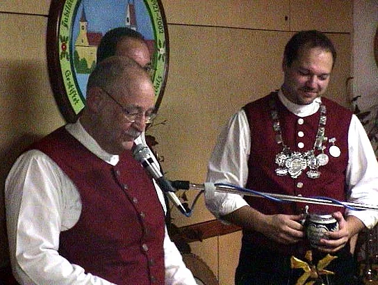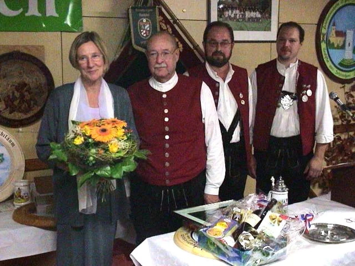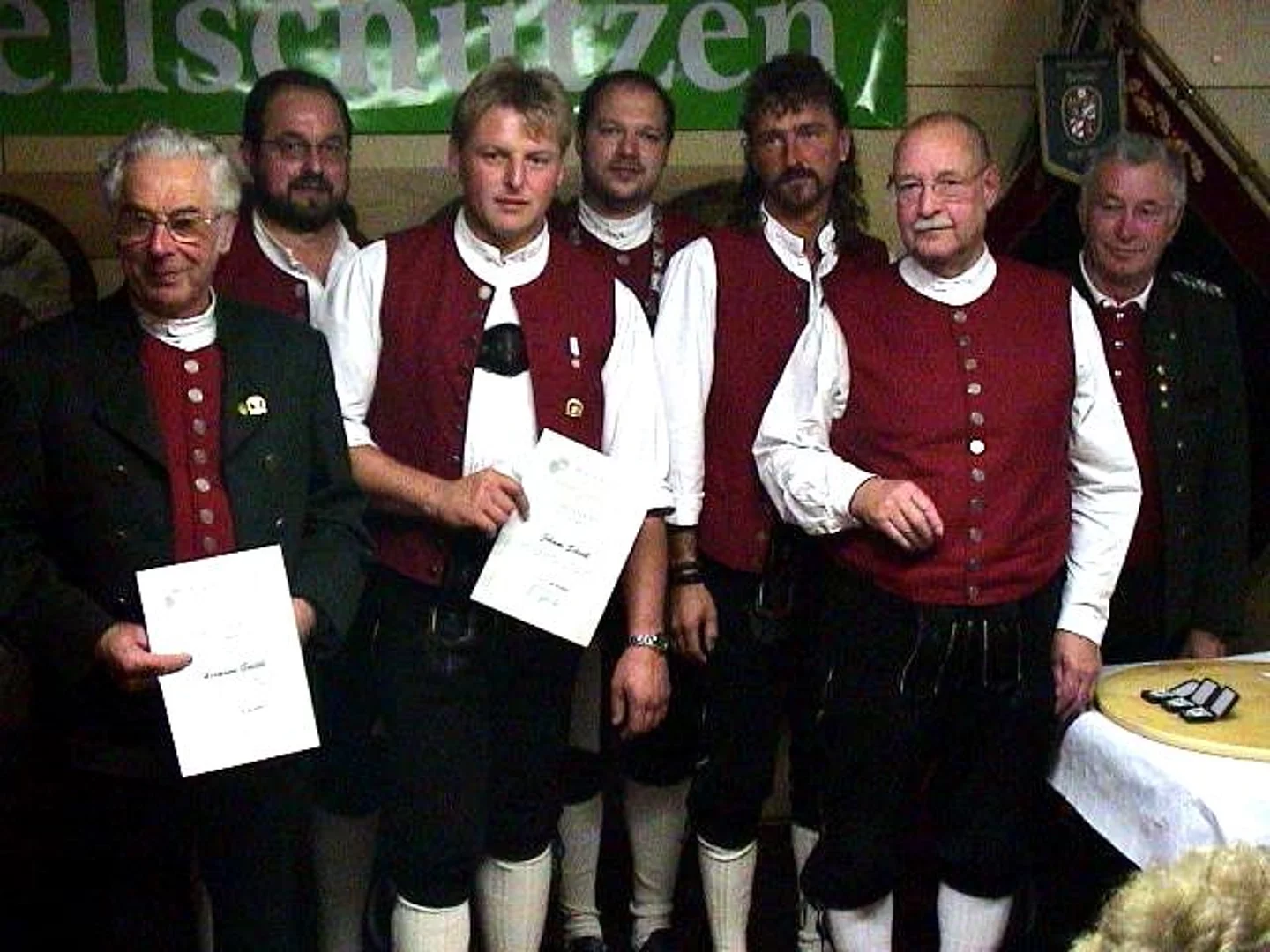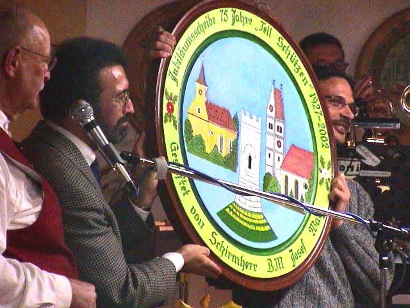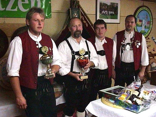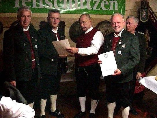 Viele Ehrengäste konnte der 1. Schützenmeister Hans Ulrich Werner im vollbesetzten Saal des Gasthaus Schenk in Balmertshofen zum Festakt anlässlich des 75jährigen Jubiläums des Schützenvereins Tell Balmertshofen-Biberberg begrüßen. Die Glückwünsche der Marktgemeinde überbrachte der Schirmherr Bürgermeister Josef Walz. In seiner Glückwunschansprache verwies er auf den Halt, den die heimischen Vereine in einer globalisierten Umwelt zu geben imstande sind. Dem Jubelverein übergab er neben der Jubiläumsgabe des Marktes die von ihm gestiftete Jubiläumsscheibe. Gewonnen wurde diese von Josef Maier mit einem 125,6 Teiler. Dann wurde der Ehrenteller von Sophie und Josef Purr, den diese an ihrer goldenen Hochzeit gestiftet hatten übergeben. Als Gewinner konnte den schönen Zinnteller Richard Strobel entgegen nehmen. Ein 177,8 Teiler hatte ihm den Sieg gebracht. Eine weitere Ehrenscheibe war von Simon Wolf gestiftet worden, auf der sinnigerweise ein Wolf des Bildmotiv darstellte. Es errang sie Eugen Schenk jun. mit einem 92,6 Teiler. Anschließend überbrachte der Landtagsabgeordnete und stellvertretende Landrat Peter Schmid die Glückwünsche und natürlich ein Geburtstagsgeschenk des Landkreises. Viele sportliche Erfolge der 75-jährigen Geschichte konnte Karl Klotz in seinem Abriss aus der Chronik berichten. Teilnahmen und sehr gute Platzierungen von Vereinsmitgliedern bei bayrischen und deutschen Meisterschaften waren zu verzeichnen. Ein Höhepunkt des Abends war die Proklamation des ersten Pistolenschützenkönigs des Vereins. Die Königskette schmückt jetzt Alfred Strobel. Ein 31,09 Teiler hatte ihm den ersten Platz gebracht. In seiner Ansprache hob der 1. Schützenmeister Hans Ulrich Werner den Wert des Vereins für das Dorfleben und im besonderen für die Sozialisation der Jugendlichen hervor. Die Glückwünsche des Schützengaus wurden von Gauschützenmeister Günter Oberst überbracht, der dann auch gleich eine reihe verdienter Mitglieder ehren konnte. Für 25-jährige Mitgliedschaft im BSSB wurde Franz Hackel geehrt. Eine Ehrung für treue Mitarbeit vom Bezirk Schwaben erhielten Xaver Adä, Josef Rüggenmann, Johann Schenk, Alfred Strobel und Hermann Gastel. Das Anerkennungszeichen vom BSSB erhielten Franz Jehle, Konrad Müller, Albert Riedele, Alfons Rüggenmann und Hans Rüggenmann. Mit dem Protektor-Zeichen in Gold wurden Rudolf Frodel, Karl Klotz und Leonhard Wolf ausgezeichnet. Es folgten die Glückwünsche vom befreundeten Schützenverein aus Ballmertshofen bei Heidenheim, den Schützen aus Wallenhausen und Hetschwang / Raunerts-hofen. Die Glückwünsche und das Jubiläumsgeschenk der Vereine Pfaffenhofens überbrachte Vereinsringvorsitzender Karlheinz Thoma. Eine Reihe weiterer Gratulanten schloss sich an, unter ihnen die Freiwillige Feuerwehr Biberberg, die als Geburtstagsgeschenk eine echten Feuerlöscher mitgebracht hatte, der auch bestens gebraucht werden kann. Auch der Verein selbst hatte eine Reihe von Mitgliedern zu ehren. Für besondere Verdienste wurden Thomas Reiser und Hermann Gastel ausgezeichnet. Einen Blumenstrauß erhielten Fanny und Eugen Schenk sen. Den Dank des Vereins für 50 Jahre Vereinsmitarbeit und Treue erhielten die Wiedergründungsmitglieder Josef Batke, Franz Albrecht, Anton Beil, Rudolf Huber, Franz Jehle, Stefan Keller, Eugen Kolb, Werner Köhler, Adolf Theimer, Johann Rüggenmann, Franz Schaffer und Eugen Schenk senior. Josef Fuchs, Marianne Futterknecht und Wilhelm Riedele wurden für 40 Jahre Vereinsarbeit und Treue geehrt. Die Auszeichnung für 25 Jahre Vereinsarbeit und Treue erhielten Johann Batke, Franz Hackel, Josefine Keller, Marianne Mayer, Heidi Riedele, Elfriede Rüggenmann, Christa Strobel und Lieselotte Wiederer. Zur Auflockerung trug dann der ausgesprochen lustige Vortrag in Versform "Was nicht in der Chronik steht" von Berta Bachmann bei. Den Abschluss des offiziellen Teils bildete die Bekanntgabe der Ergebnisse des Jubiläumsschiessens und die Preisverteilung durch Sportwart Alfred Strobel und die Jugendleiter Herbert Wolf und Edgar Auer. Die Meisterschaft 40 Schuss Luftgewehr errang Hans Glogger mit 385 Ringen, den ersten Platz bei der Meisterschaft 40 Schuss Luftpistole belegte mit 343 Ringen Hans Schenk und das Finalschiessen entschiede die junge Vereinshoffnung Dominik Wolf mit einem 98,6 Teiler für sich.