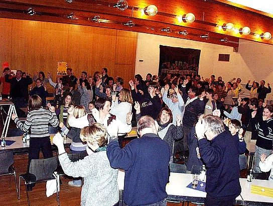 Die Mädchengruppe von Frau Leich puschte die Stimmung mit dem Lied: "Ein Loch ist im Eimer ..." sofort wieder nach oben.
