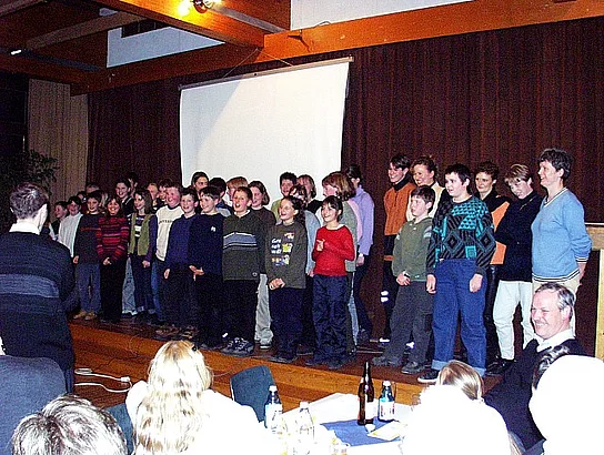 Nach den Dankesworten von Diakon Gugler sprach Pfarrer Egger das Schlußwort und mit dem bekannten Lied: "Old McDonald had a farm" fand der rundherum gelungene Abend seinen Abschluss.