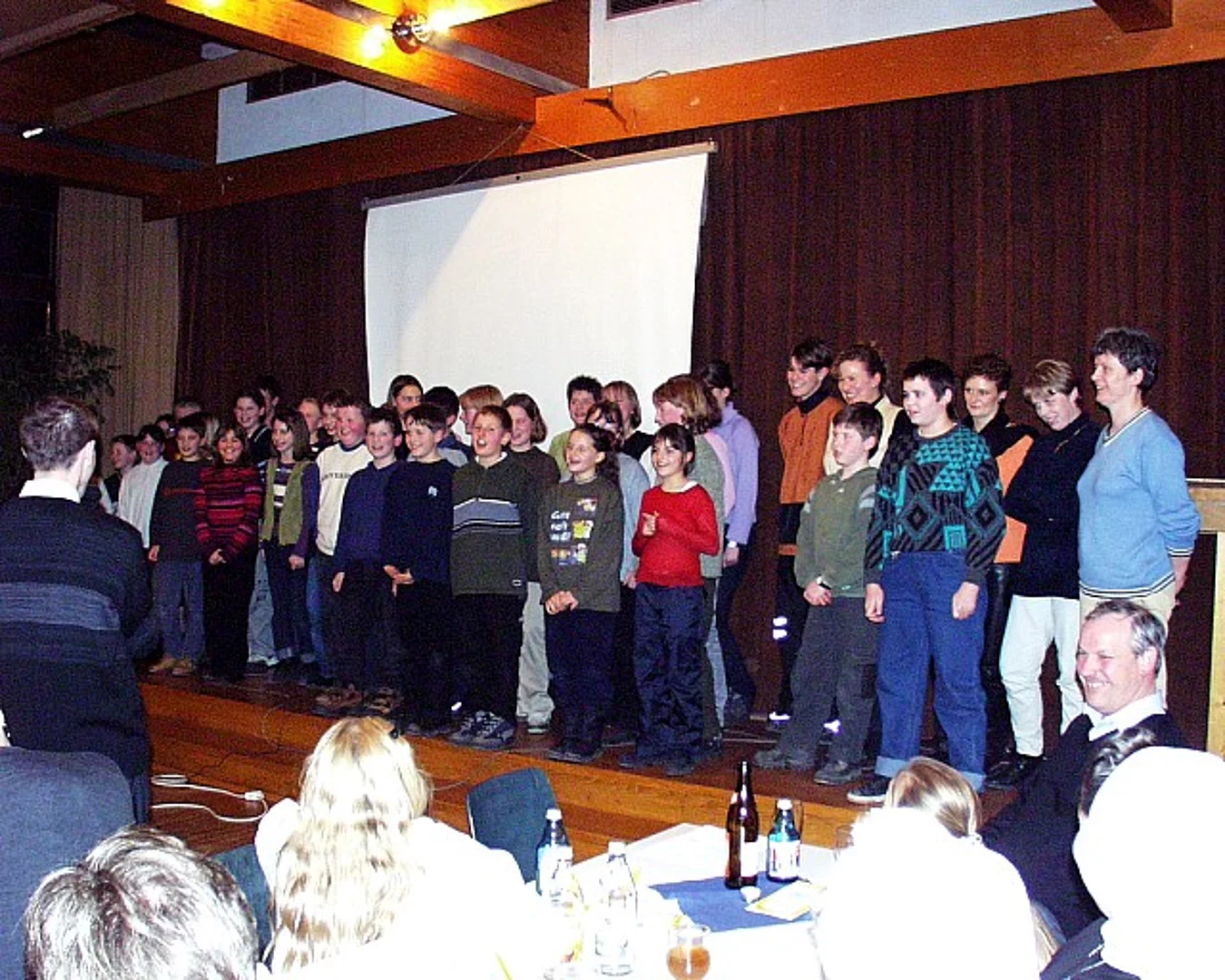 Die Pfarreiband, Leiter Herbert Gugler, und der Jugendchor Beuren, geleitet von Eva Sluka, stellten sich vor. Mit dem Lied: "Überall auf der ganzen Welt", wurde zur Vorstellung des „Offenen Seminars“ übergeleitet. Mit einem fetzigen Tonbild stellten Pfarrer Herbert Kohler und sein Zivi Martin das „Offene Seminar“ vor. Auch hier waren schon Buben unserer Pfarrei bei den angebotenen Kursen. Als im Tonbild vom Essen die Rede war, war dies ein Stichwort für die Küche, „auf den Punkt genau“ >>al dente<< 14 Kilogramm Spaghetti mit 40 Liter Soße für ca. 170 hungrige Jugendliche und Eltern aus der Küche auf den Tisch zu bringen. Nach der Essenspause ging es mit Hochdruck weiter.