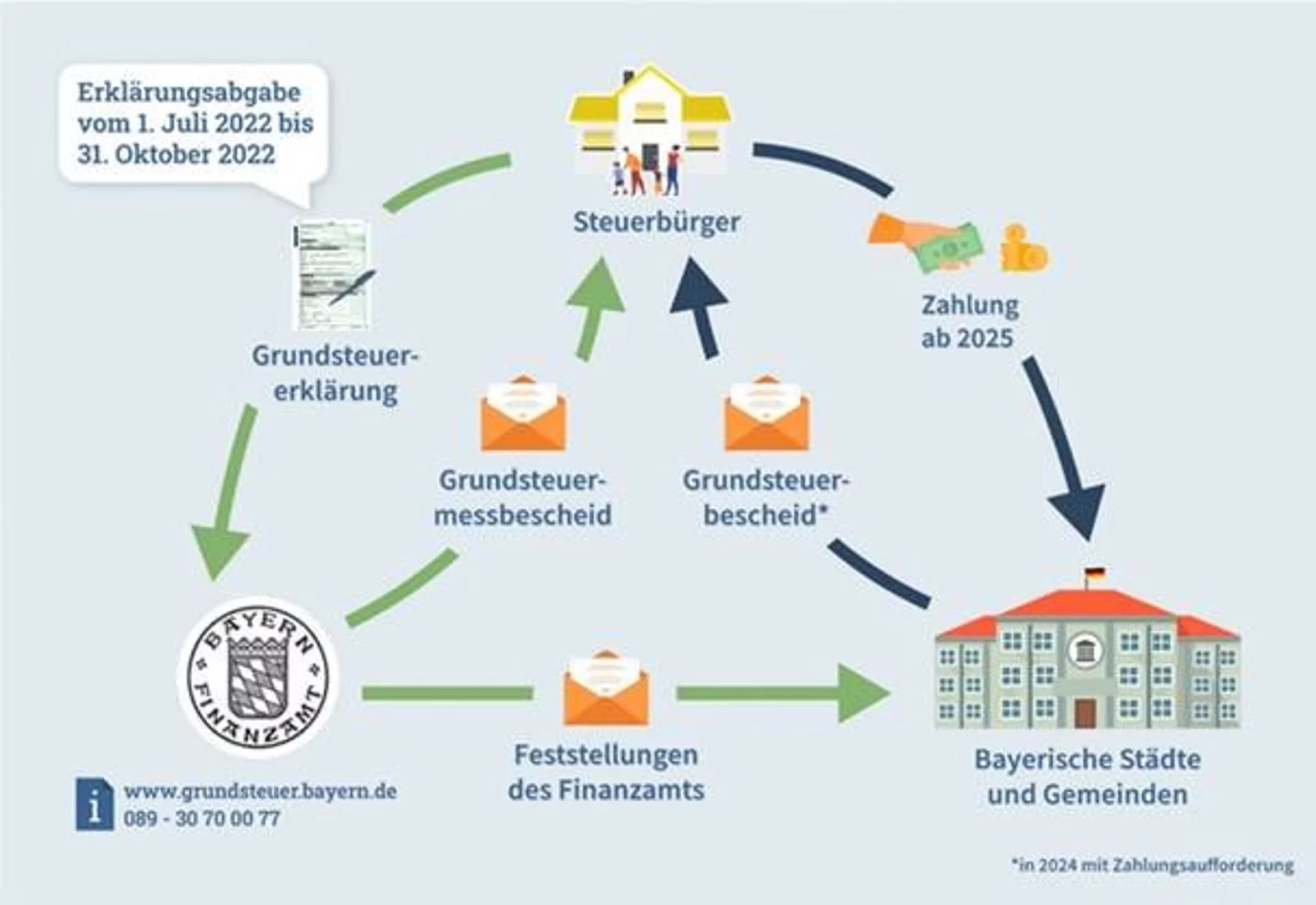 1. Juli 2022 im Internet unter www.grundsteuer.bayern.de, in Ihrem Finanzamt oder in