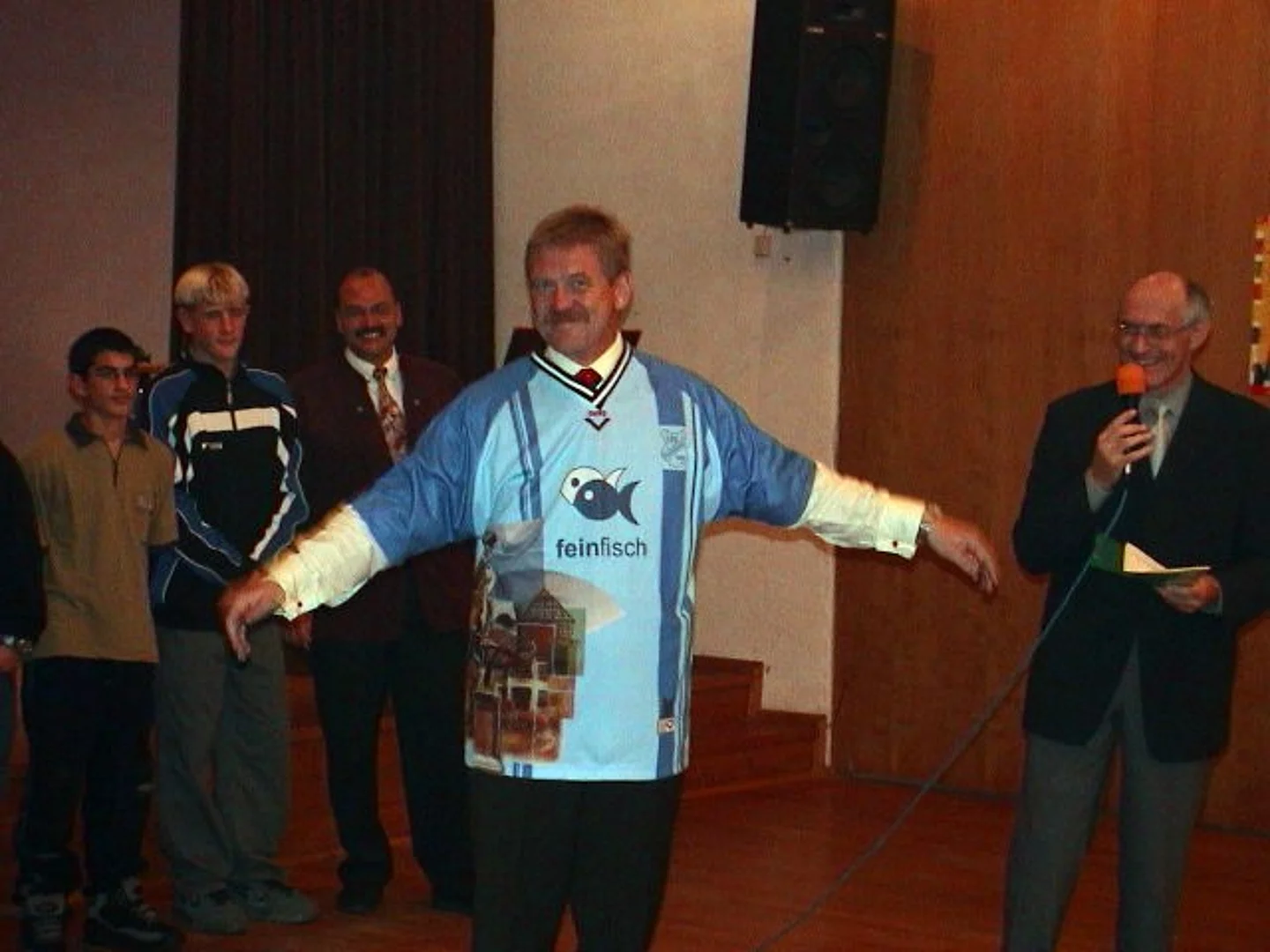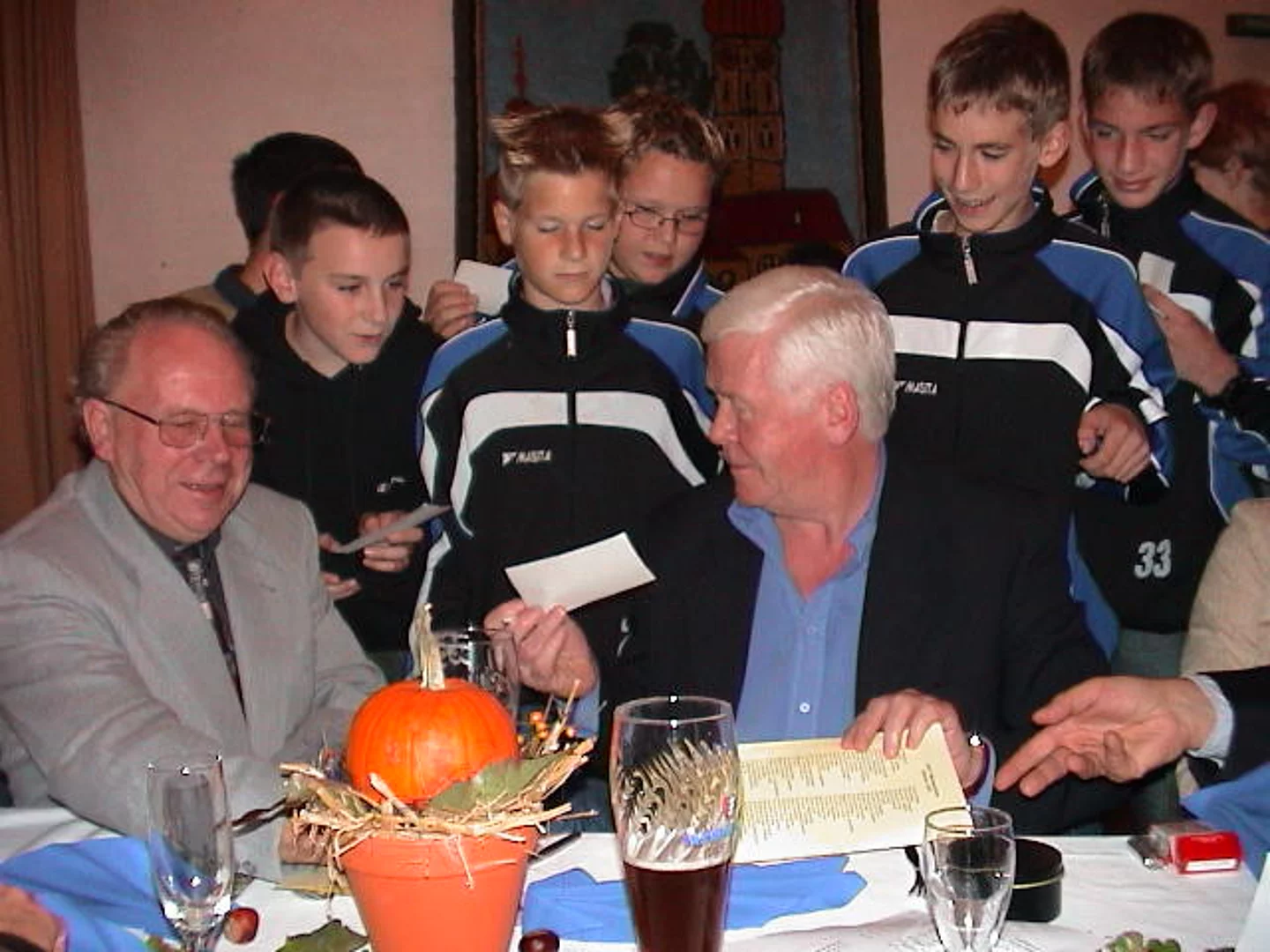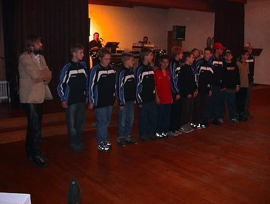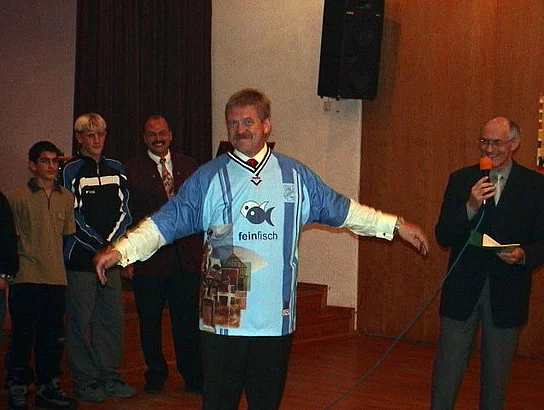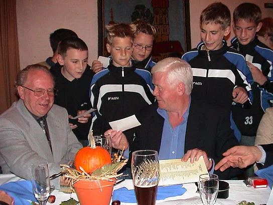 Wie die vergangenen Jahre hatte der Förderverein des SVP die Sponsoren zur Jahresfeier ins Martinushaus geladen und sehr viele waren der Einladung gefolgt. Der Vorsitzende Hermann Spiegler begrüßte die Gäste und ganz besonders den Ehrengast des Abends, die Fußballlegende Helmut Haller. "Als kleiner Bub hätte ich mein letztes Hemd für diese Begegnung gegeben", sagte er und überreichte dem Gast eine SVP-Uhr als Erinnerungsgeschenk. In der weiteren Ansprache wies er auf die integrative Kraft der Vereine und speziell der Sportvereine hin. "Manchmal ist es auch ein Glück, wenn der Bürgermeister keine Zeit hat", meinte der 2. Bürgermeister Josef Gold, "jetzt habe ich die Gelegenheit und Freude meinem Sportidol aus früheren Jahren zu begegnen". Nach den kurzen Ansprachen war es auch schon Zeit fürs kalt-warme Buffet. Nach dieser Stärkung konnte die Mannschaft des Jahres proklamiert werden. Es war die D-Jugend, die Meister ihrer Klasse geworden waren. Als kleines Präsent erhielten sie einen Gutschein für einen Besuch im Erlebnisbad Atlantis. Mindestens genauso wichtig war es den Jugendspielern jedoch, ein Autogramm von Helmut Haller zu ergattern. Unter dem Motto "Sport und "Werbung" wurde dann die neue Trikotgeneration für die Aktiven vorgestellt. Der Vereinsringvorsitzende Karlheinz Thoma durfte als Modell herhalten. die Geschäftsführer von Fein-Fisch und AT-Sport als Hauptsponsoren standen ihm zur Seite. Das Trikot wird mit einer neuen Technik hergestellt, die es ermöglich auch aufwändige Designs aufzubringen, wie in diesem Fall das Bildmotiv des Marktes. dann war es Zeit für Unterhaltsames. "Martha Pfahl und Rosa Schlüpfer" alias Anita Strobel und Maria Störk hatten mit ihrem Sketch die Lacher auf ihrer Seite. Richtig sportlich wurde es dann nochmal mit den Jazz-Breakern. Das Tanzduo zeigte modernen artistischen tanz der mit heftigem Beifall belohnt wurde. Dann war die Tanzfläche für die Gäste frei. Bei Tanz und guter Unterhaltung amüsierten sich die Gäste des Fördervereins bis in den Morgen.
