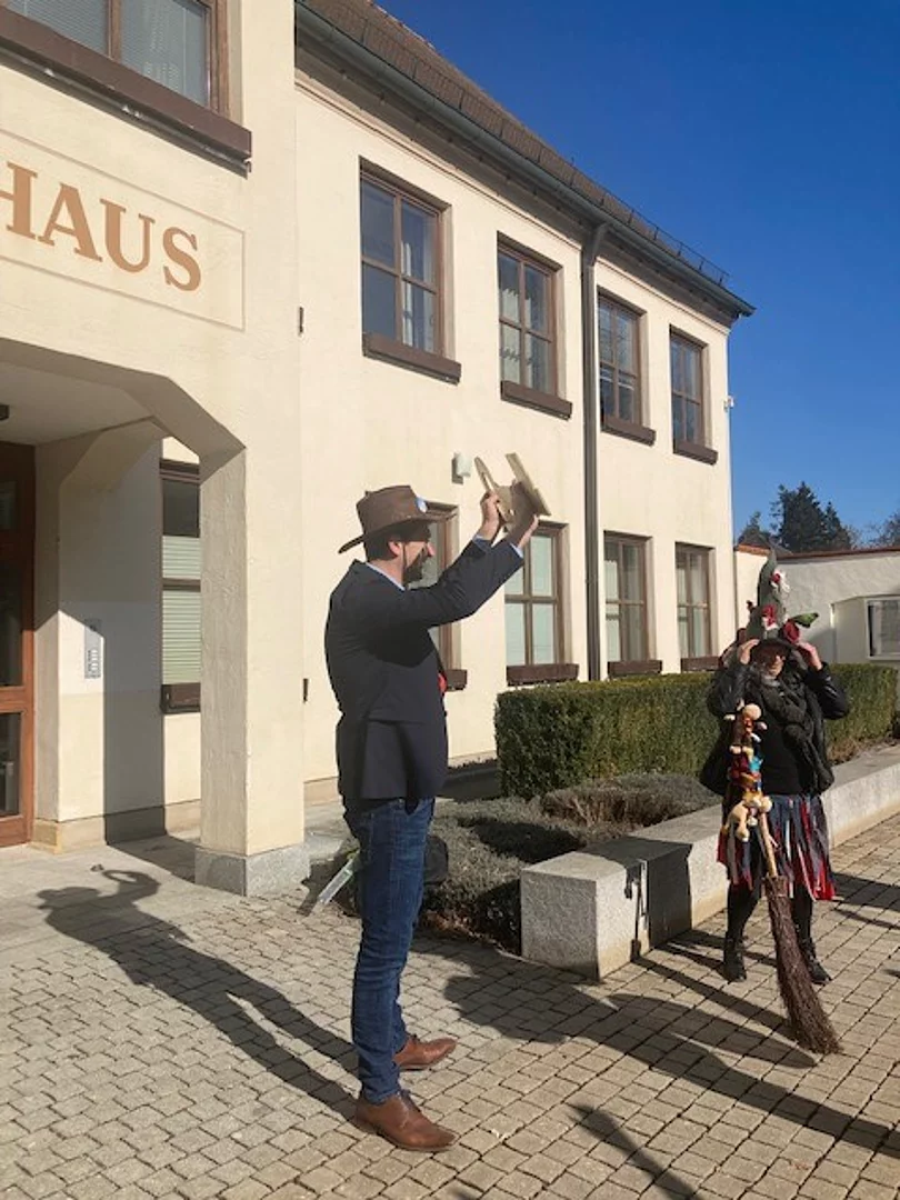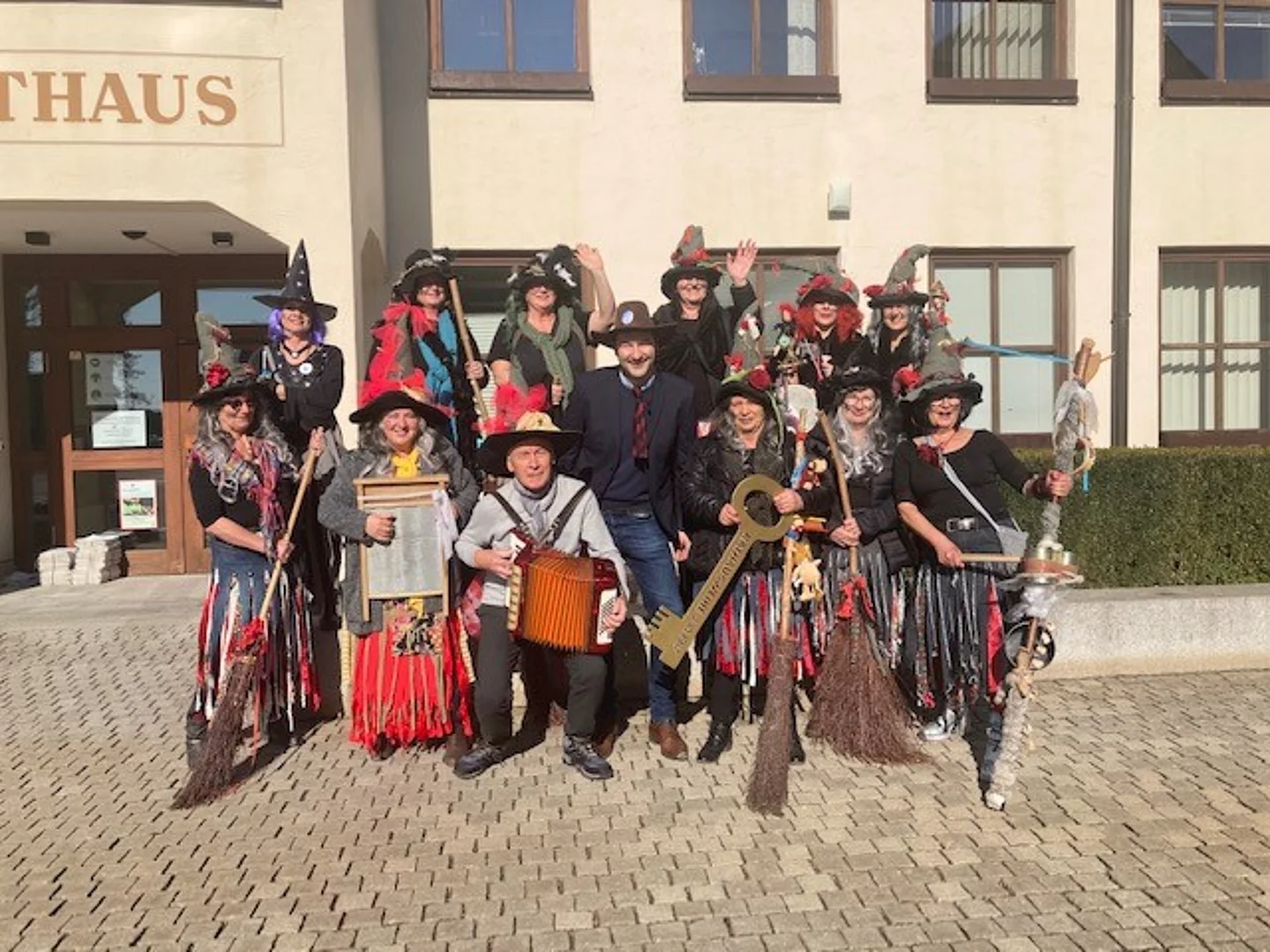 Um Punkt 11 Uhr am ‚Gompiga Doschtig’ stürmte ein wilder Hexenhaufen aus dem Tal der Biber und der Roth das Pfaffenhofener Rathaus.