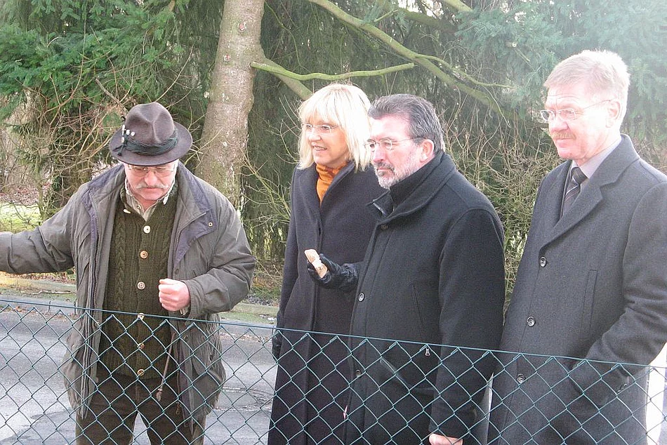 Wie bestellt herrschte strahlender Sonnenschein als Justizministerin Dr. Beate Merk einen Besuch abstattete. Nach der Begrüßung im Rathaus konnte die Ministerin zum Beginn des Rundgangs ein paar der Krippen des Krippenwegs bewundern. Von Josef Duile bekam sie zur Erinnerung eine von ihm geschnitzte Miniaturkrippe überreicht. Für die Kinder der Kindertagesstätte St. Martin, die als Nächstes auf dem Programm stand, hatte die Ministerin ein Geschenk mitgebracht, eine große Kiste, randvoll gefüllt mit frischem Obst. Frau Dr. Merk zeigte sich von der renovierten Kindertagesstätte sehr beeindruckt und gratulierte der Gemeinde zum gelungenen Werk. Hightech aus Pfaffenhofen war beim nächsten Halt bei der Firma Newtec angesagt. Technik von Newtec wird immer dort gebraucht wo Ausfallsicherheit ganz oben steht, wie zum Beispiel im Flugzeugbau oder der Medizintechnik. Vom der nüchternen Technik ging es dann direkt zum Spirituellen. Vor der kürzlich neu geweihten Kirche der Gebetsstätte Marienfried wartete schon Direktor Clemens Maria Henkel. Während einer Führung durch die Kirche erläuterte er die Geschichte des Baus und die Zielsetzung von Marienfried.