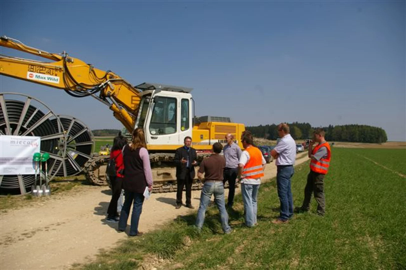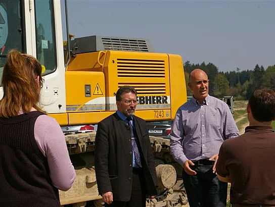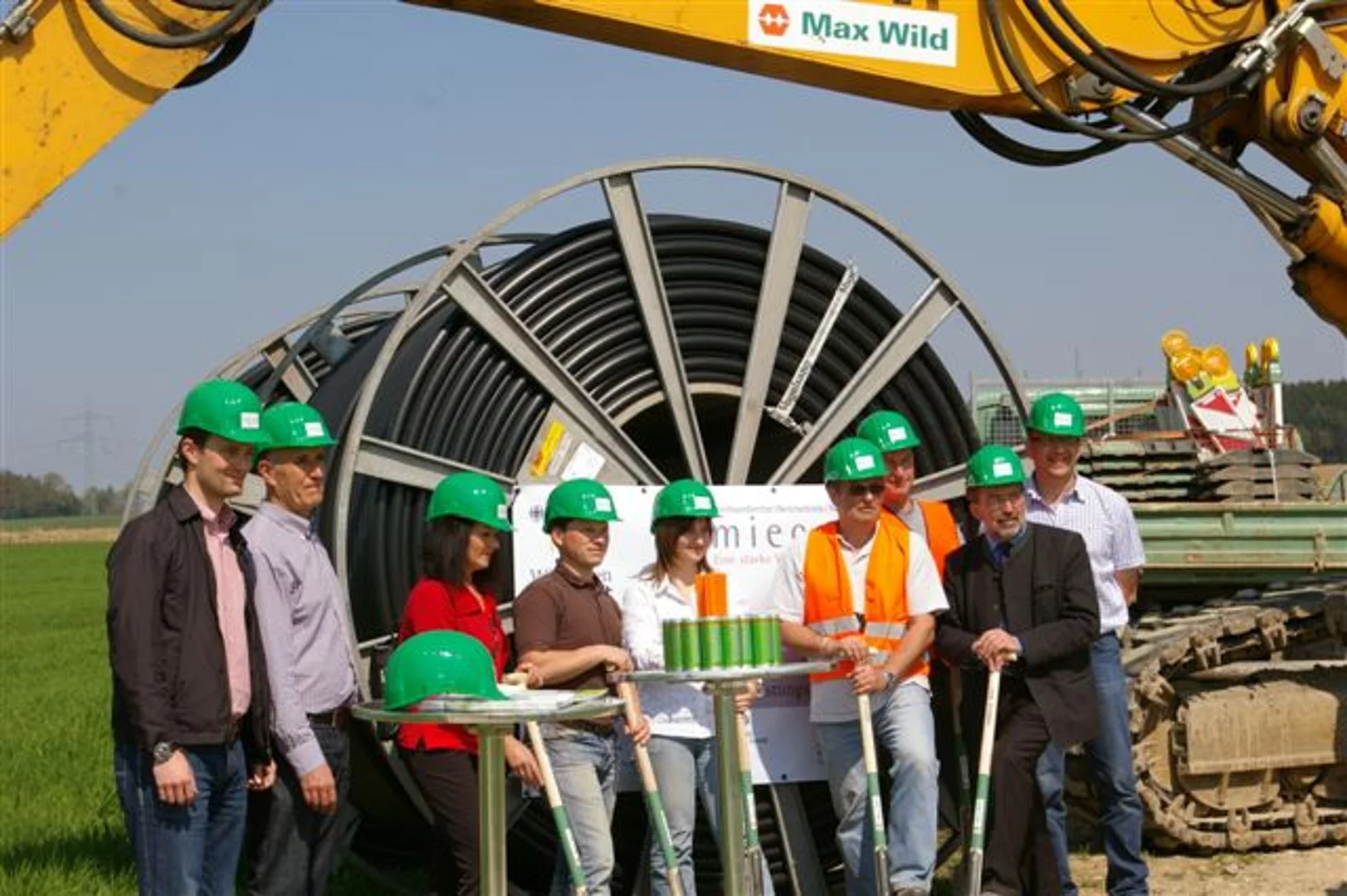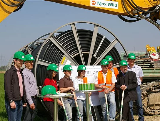 Nicht mehr lange und das schnelle Internet erreicht auch die Ortsteile Biberberg, Balmertshofen und Niederhausen. Der erste Spatenstich für die Verlegung des Hochleistungs-Glasfaserkabels entlang des Feldweges Richtung Beuren ist getan. Von dort aus wird die Trasse weiter in die Ortsteile Biberberg, Balmertshofen und Niederhausen führen. Die Rohre für das Kabel werden von der Firma Max Wild aus Berkheim in den Boden eingepflügt oder auch mit dem sogenannten Bohrspülverfahren verlegt. Betrieben wird das netz von der Firma Miecom Netzservice aus Binswangen.