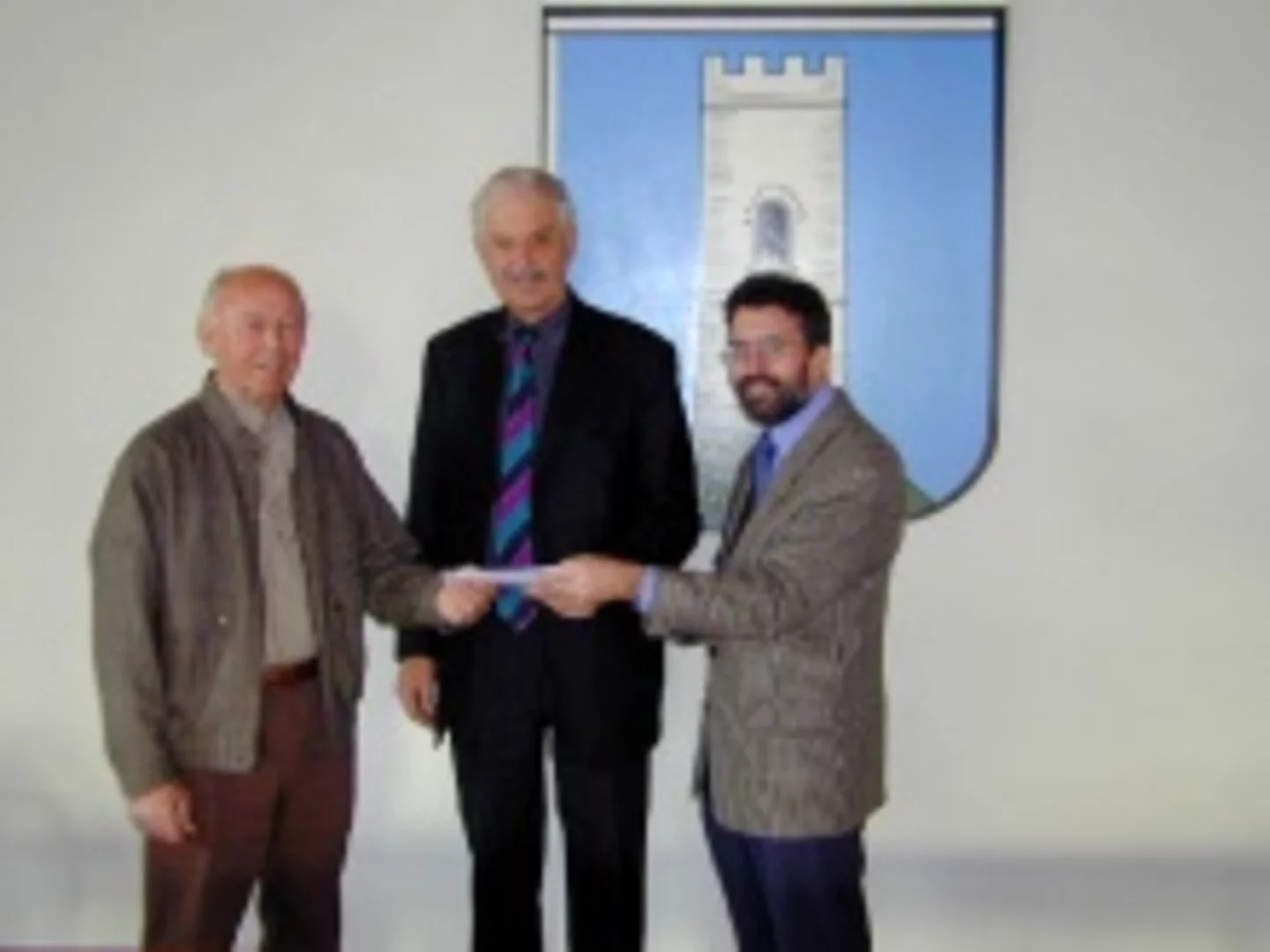 Am 21. Dezember wurden dann im Rathaus von Pfaffenhofen Spendenschecks, die als Fahrtkostenzuschüsse für diesen Besuch dienen sollen, überreicht. Die Aushändigung fand in Pfaffenhofen statt, da zum einen die Jagdhornbläsergruppe hier gegründet wurde, zum anderen sich auch das Probenlokal hier befindet und zudem der Obmann Franz Riggenmann seinen Wohnsitz am Ort hat. Bürgermeister Josef Walz und Kreisjägermeister Siegfried Keppler überreichten die Schecks der Stadt Neu-Ulm (250,- DM), vom Landkreis Neu-Ulm (200,- DM), der Fa. Reisser Sanitär Großhandel Neu-Ulm (200,- DM), vom Markt Pfaffenhofen (200,- DM) und vom Kreisjägermeister Siegfried Keppler (600,- DM).