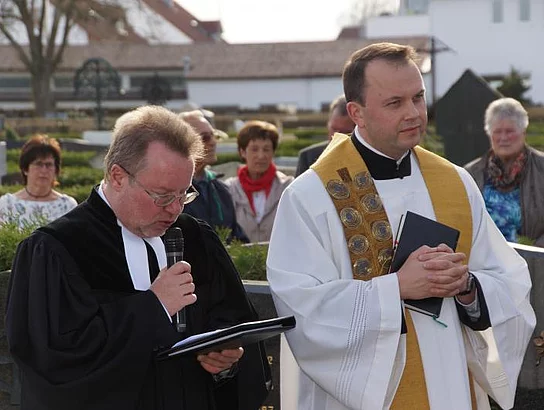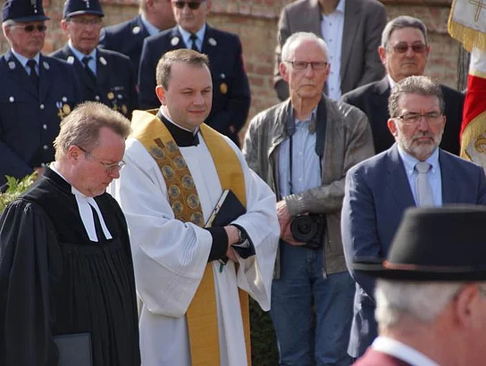 im Anschluss an die Gedenkfeier ging ein Festzug zur Pfarrkirche St. Martin zu einem ökumenischen Gottesdienst, geleitet von den beiden Pfarrern Reinfried Rimmel und Andreas Erstling. Pfarrer Erstling mahnte: "Technik darf kein Selbstzweck sein, sondern muss da eingesetzt werden, wo sie Gutes bewirkt.