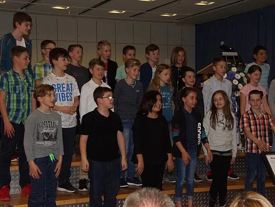 Zum Gelingen der Feier trugen auch Schüler der Hermann-Köhl-Schule bei, die einen extra für diesen Tag gedichteten Rap-Song über den Ozeanflieger vortrugen.