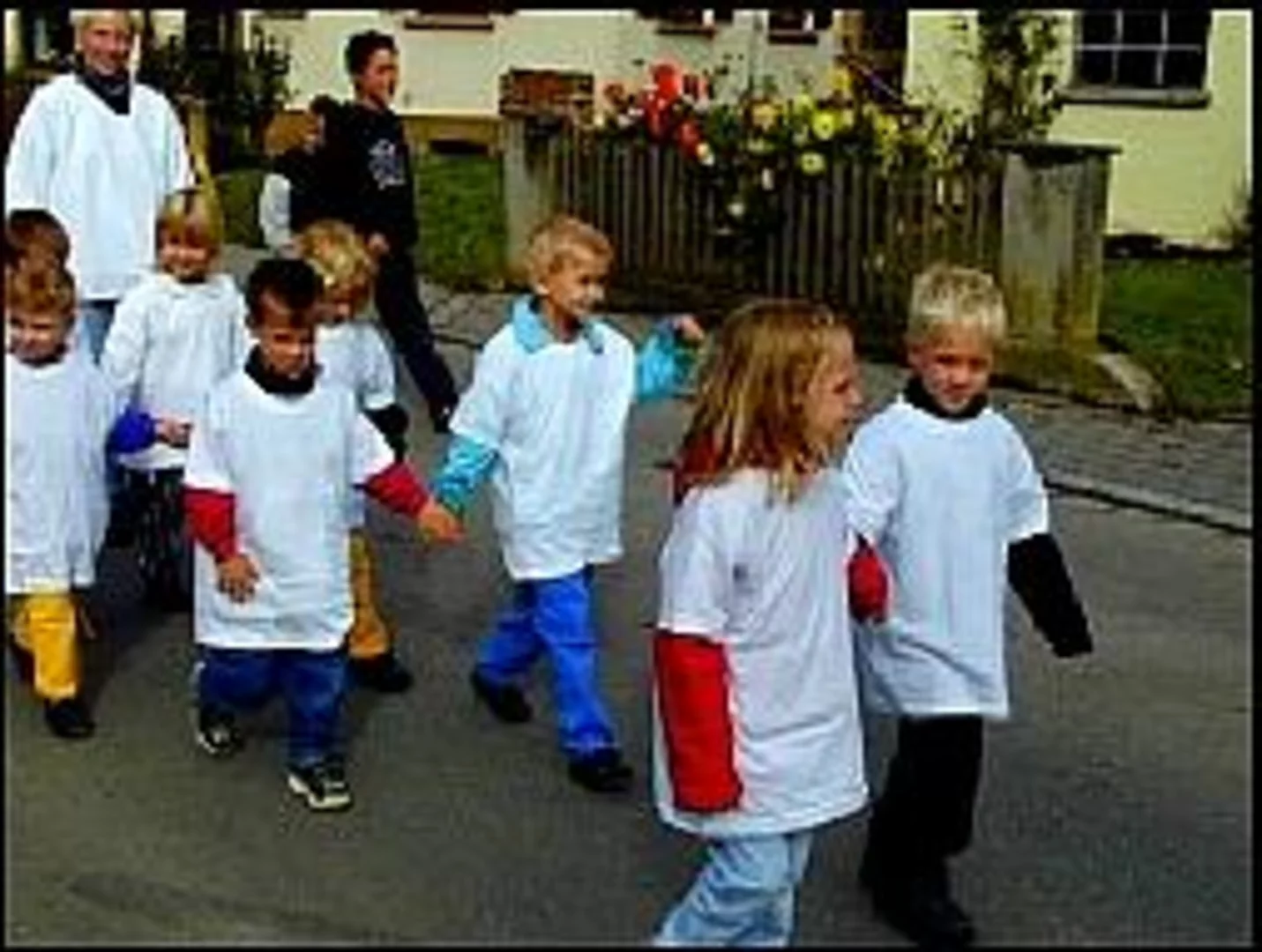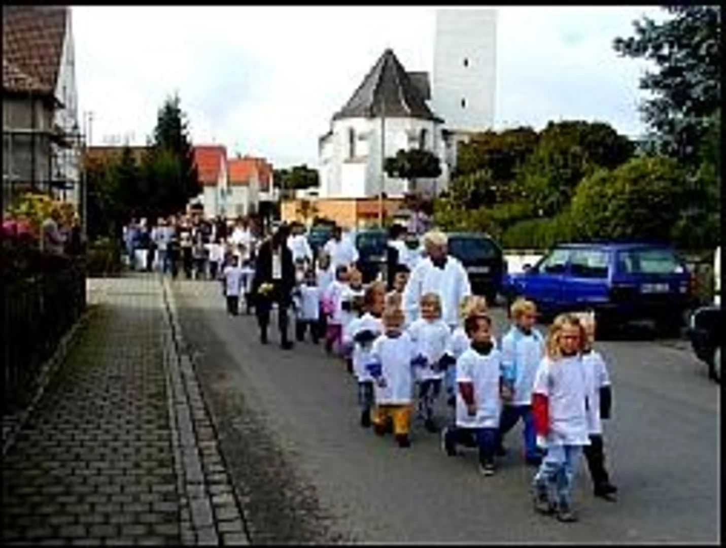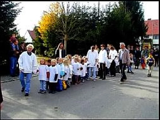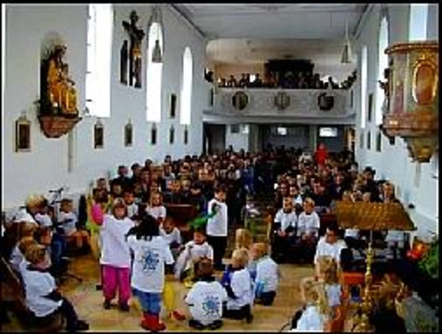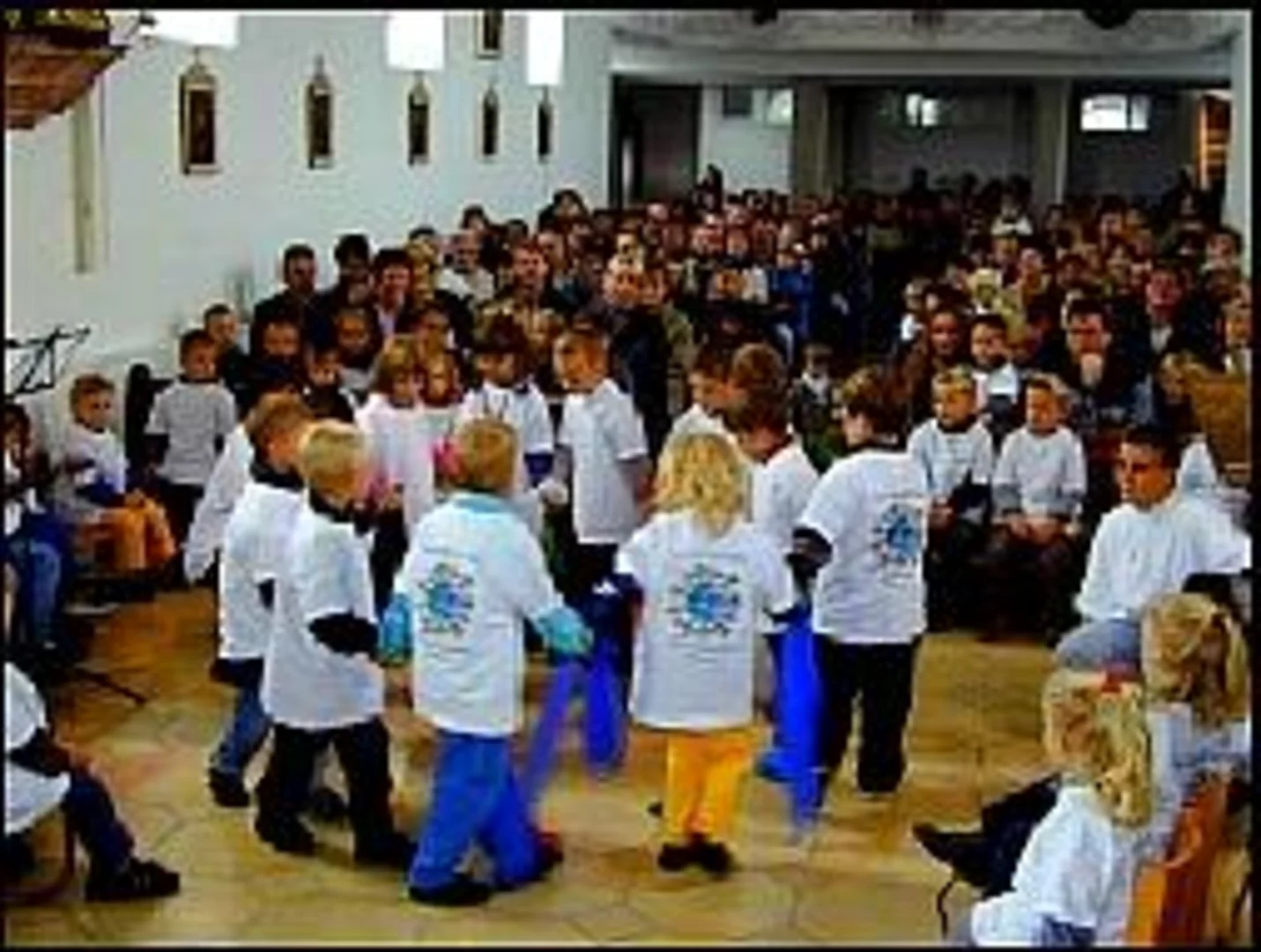Unter diesem Motto stand das 10jährige Jubiläum des Kindergarten St. Franziskus in Beuren. Weil man in der größten Freude an die denken soll, denen es nicht so gut geht, wurde der Erlös des Festes, das anlässlich des Jubiläums stattfand, mit armen Kinder im Kongo unter dem Motto "Kinder helfen Kindern" geteilt. Die Kindergartenkinder, die Erzieherinnen und die Dorfgemeinschaft begannen das Fest mit einem von den Kindergartenkindern selbst gestalteten Gottesdienst in der Pfarrkirche Sankt Cosmas und Damian. Selbstverständlich stand der Namenspatron des KIndergartens, der heilige Franziskus, im Mittelpunkt des Gottesdienstes. Zentrales Thema war der Sonnengesang des St. Franziskus, der von einem Tanz untermalt wurde. Auch die übrigen Lieder wurden von den Kindern mit Gesang und Tanz begleitet. Mit einer kleinen Ansprache überreichte Bürgermeister Josef Walz Kindergartenleiter Isi Krämer währnd des Gottesdienstes einen Scheck. Anschließend begleitete die Musikkapelle Beuren die ganze Festgesellschaft zum Kindergarten. Hüpfburg, Rollenrutsche und Spielstraße waren so recht nach dem Geschmack der Kleinen. Und wer beim Herumtollen Hunger oder Durst bekam, konnte sich von den Eltern bewirten lassen. Für einen weiteren Höhepunkt sorgte der Zauberer, der am Nachmittag Groß und Klein mit seinen Künsten im wahrsten Sinn des Wortes "verzauberte".