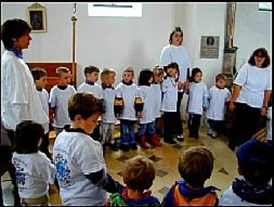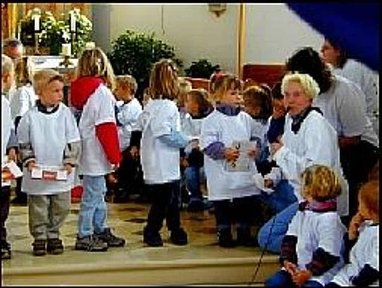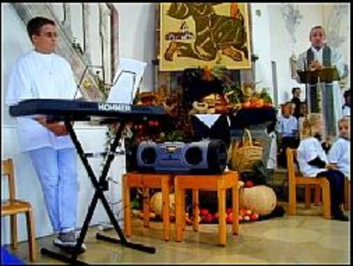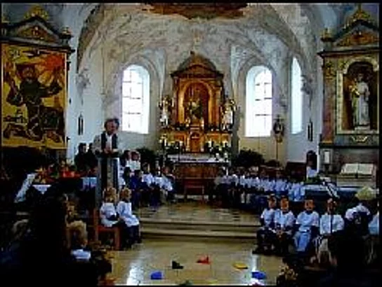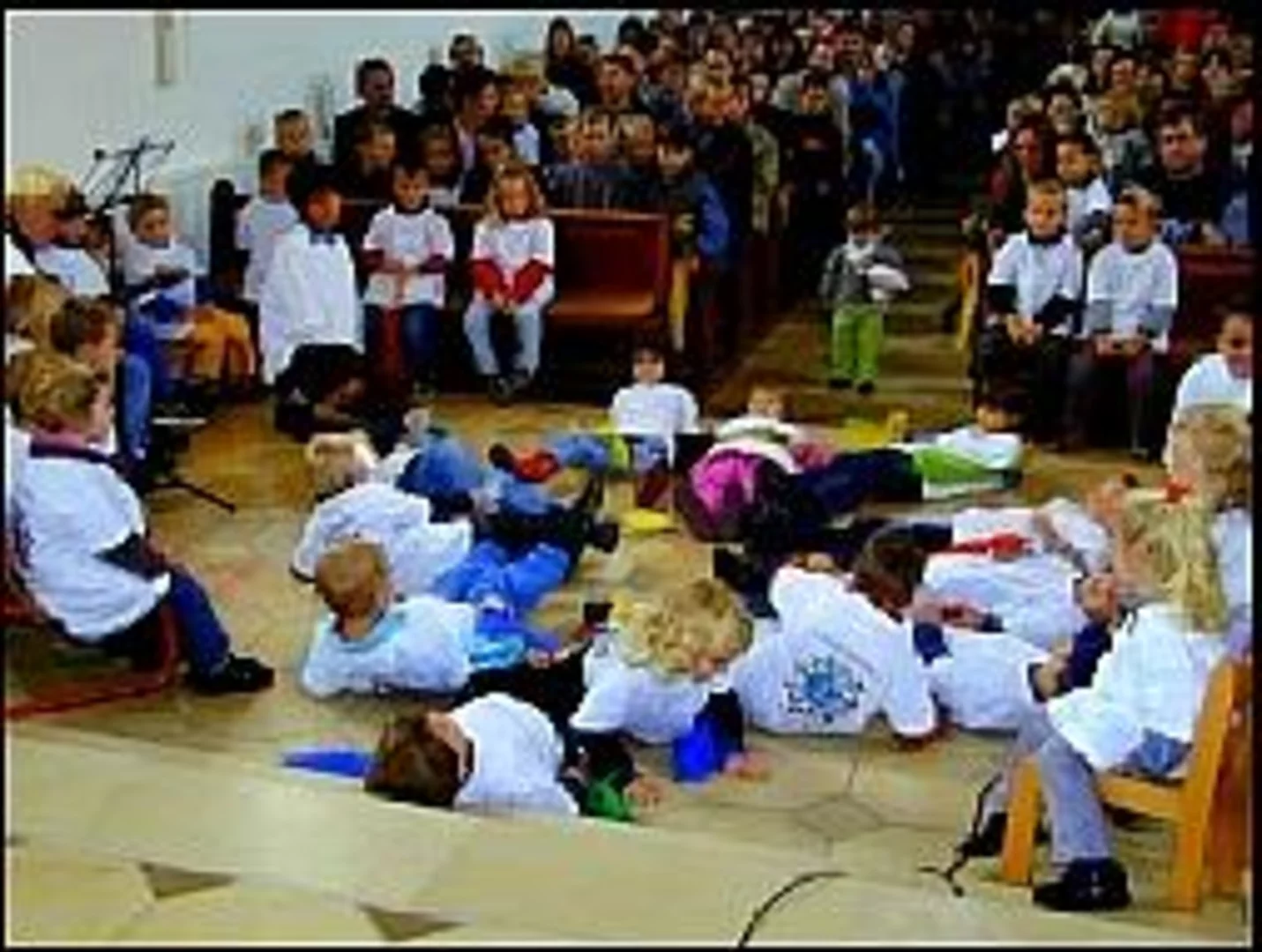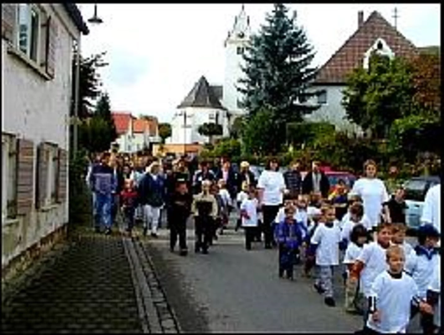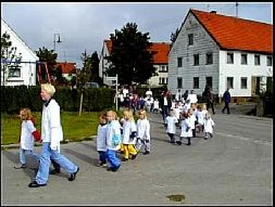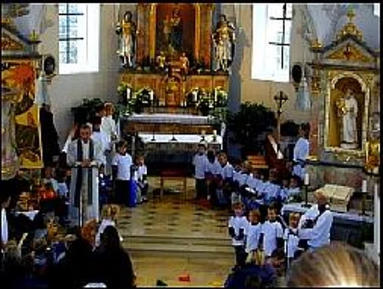 Unter diesem Motto stand das 10jährige Jubiläum des Kindergarten St. Franziskus in Beuren. Weil man in der größten Freude an die denken soll, denen es nicht so gut geht, wurde der Erlös des Festes, das anlässlich des Jubiläums stattfand, mit armen Kinder im Kongo unter dem Motto "Kinder helfen Kindern" geteilt. Die Kindergartenkinder, die Erzieherinnen und die Dorfgemeinschaft begannen das Fest mit einem von den Kindergartenkindern selbst gestalteten Gottesdienst in der Pfarrkirche Sankt Cosmas und Damian. Selbstverständlich stand der Namenspatron des KIndergartens, der heilige Franziskus, im Mittelpunkt des Gottesdienstes. Zentrales Thema war der Sonnengesang des St. Franziskus, der von einem Tanz untermalt wurde. Auch die übrigen Lieder wurden von den Kindern mit Gesang und Tanz begleitet. Mit einer kleinen Ansprache überreichte Bürgermeister Josef Walz Kindergartenleiter Isi Krämer währnd des Gottesdienstes einen Scheck. Anschließend begleitete die Musikkapelle Beuren die ganze Festgesellschaft zum Kindergarten. Hüpfburg, Rollenrutsche und Spielstraße waren so recht nach dem Geschmack der Kleinen. Und wer beim Herumtollen Hunger oder Durst bekam, konnte sich von den Eltern bewirten lassen. Für einen weiteren Höhepunkt sorgte der Zauberer, der am Nachmittag Groß und Klein mit seinen Künsten im wahrsten Sinn des Wortes "verzauberte".
