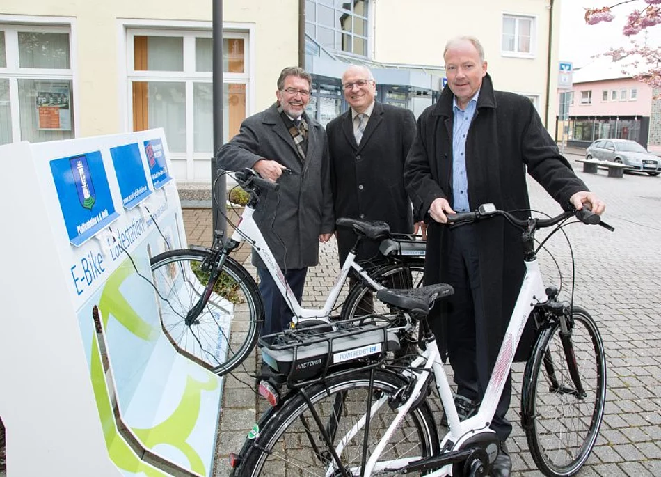Beide Ladestationen befinden sich am Kirchplatz 6 – mitten im Zentrum: die E-Bike-Ladestation direkt vor der VR-Bank und die Ladesäule für Elektroautos 50 Meter davon entfernt auf dem gemeinsamen Parkplatz von Rathaus und VR-Bank. Der Wunsch nach einer Ladeinfrastruktur im Ort kam von den Bürgern: „Beide Ladestationen sind Teil des integrierten Klimaschutzkonzepts, das wir 2014 gemeinsam mit Bürgen entwickelt haben“, so Bürgermeister Josef Walz. „Die neue Mitte Pfaffenhofen ist der ideale Standort dafür, sowohl für Fahrer von E-Autos, die aus dem Umland zu Einkaufen zu uns kommen, als auch für Radwanderer mit dem