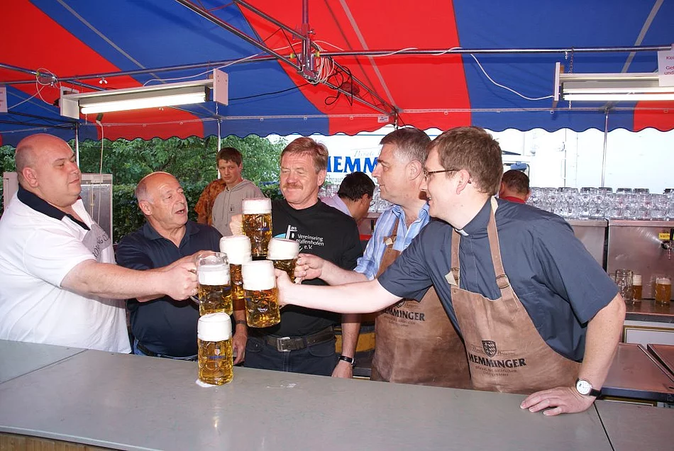 Zum dreißigsten Mal wurde das Marktfest heuer gefeiert. Aus bescheidenen Anfängen mit provisorisch zusammen genagelten Buden hat sich ein dreitägiges Fest entwickelt das bei vielen fester Bestandteil des Jahresterminkalenders ist. Eröffnet wurde das Jubiläumsmarktfest mit dem Bieranstich, heuer vorgenommen vom 2. Bürgermeister Erwin Stötter und Pfarrer Raimund Alker. Bürgermeister Josef Walz war verhindert, er hatte das Vergnügen einer Fahrt mit der Ulmer Schachtel. Kaum war die erste Maß Bier ausgeschenkt folgte die musikalische Eröffnung. Blind Contrast, eine junge Pfaffenhofener Band, präsentierte sich bestens und schaffte in kurzer zeit beste Stimmung auf dem sich rasch füllenden Festplatz. Sie überließen das Publikum dann Fatro, der zweiten heimischen Band. Sie rockt schon seit 2001 durch deutsche Lande und konnte 2006 auf dem Cannstatter Wasen als Vorgruppe von Bon Jovi vor 65 000 begeisterten Fans ihr Können unter Beweis stellen. Sie heizten dem Publikum mit bekannten Hardrockklassikern und mit eigenen Songs aus ihrem neuen noch unveröffentlichten Album ein. Ein Novum gab es heuer auch. Aus Gründen des Jugendschutzes war das gesamte Festgelände eingezäunt und Zugangskontrollen eingerichtet worden. Der Samstagabend stand unter dem Motto „Oktoberfeststimmung zu Marktfestpreisen“. Dafür waren die Wolfsegger Buam zuständig, die heuer für die gesamte Dauer im Armbrustschützenzelt beim Oktoberfest aufspielen.. Die zeigten auch ihr breites Repertoire, von Volkstümlich über Schlager bis Rockig war alles geboten. Der Festsonntag begann mit einem ökumenischen Gottesdienst auf dem Festplatz, zelebriert vom katholischen Pfarrer Raimund Alker und seinem evangelischen Amtskollegen Andreas Erstling. Musikalisch umrahmte die Gruppe Arcus den Gottesdienst. Die Messfeier, die unter dem Motto „Die Kraft der zwei Herzen“ stand richtete sich besonders an die Motorradfahrer, die zum traditionellen Motorradcorso angereist kamen. Etwa 300 Motorradfahrer machten sich auf den Weg durch den südöstlichen Landkreis. Auch der Sonntag war, wie schon der Freitag, ganz in der Hand einheimischer Musiker. Zum Frühschoppen spielte der Musikverein Pfaffenhofen auf, gefolgt von der Jugendkapelle Pfaffenhofen-Holzheim. Das Nachmittagsprogramm bestritt der Musikverein Kadeltshofen. Den musikalischen Schlusspunkt an ein gelungenes und harmonisches Marktfest setzte dann die Musikkapelle Beuren.