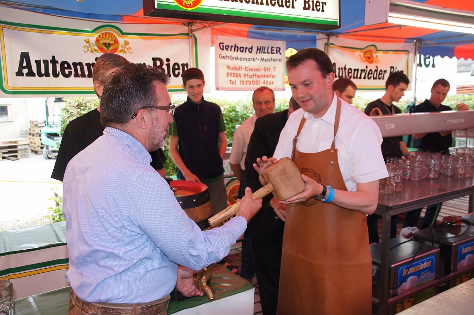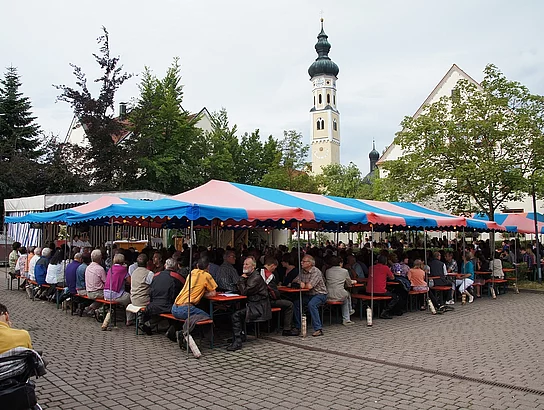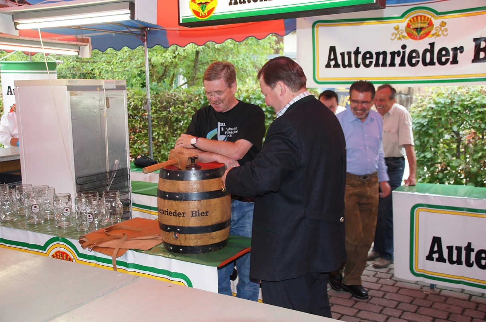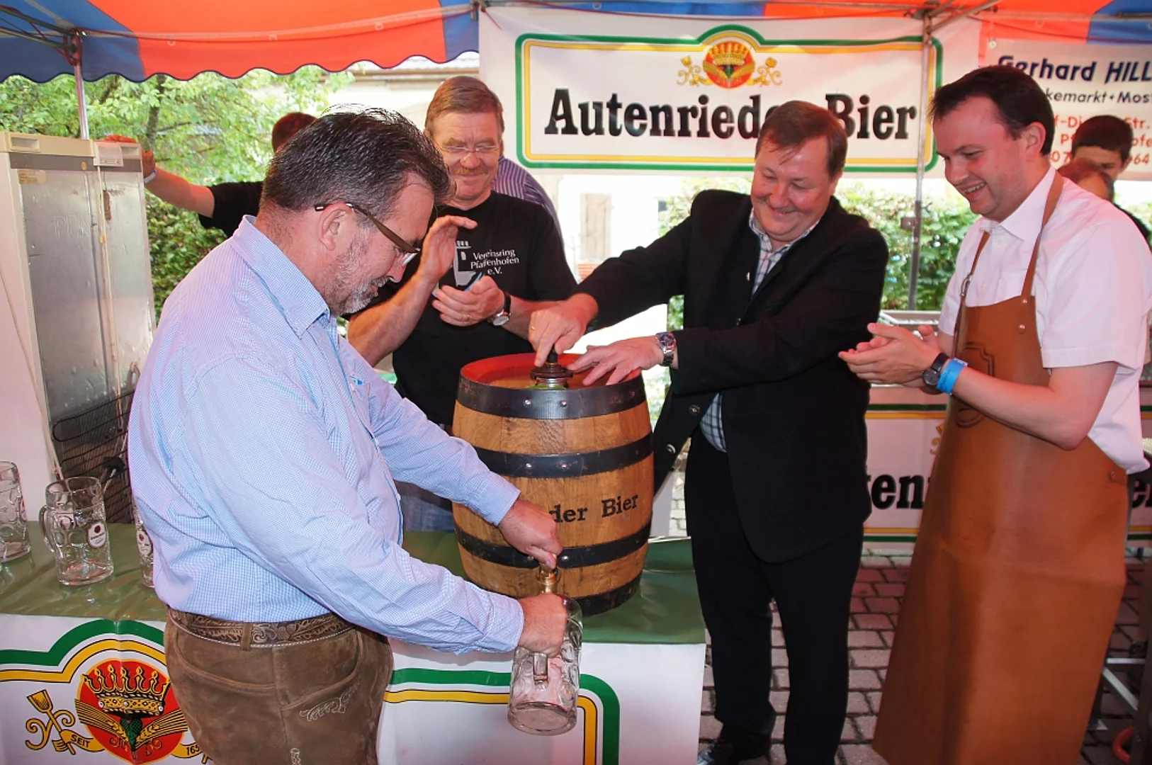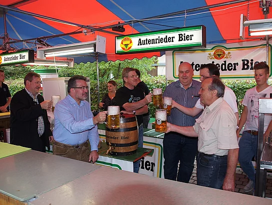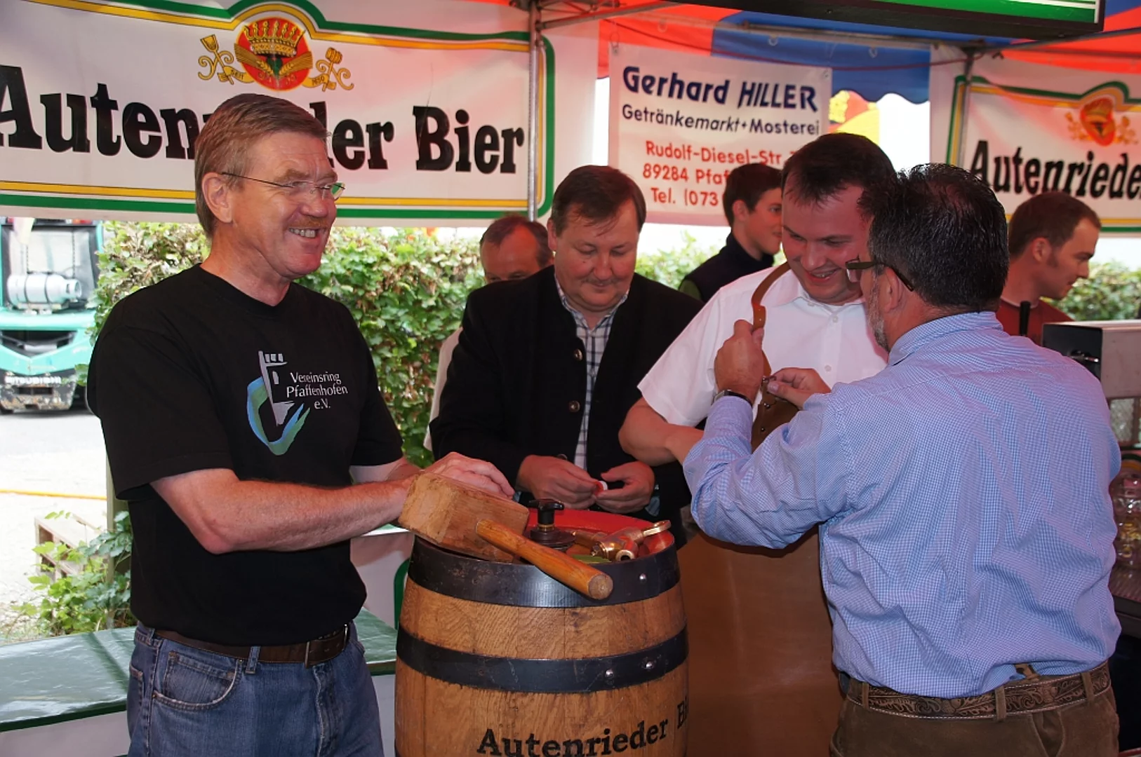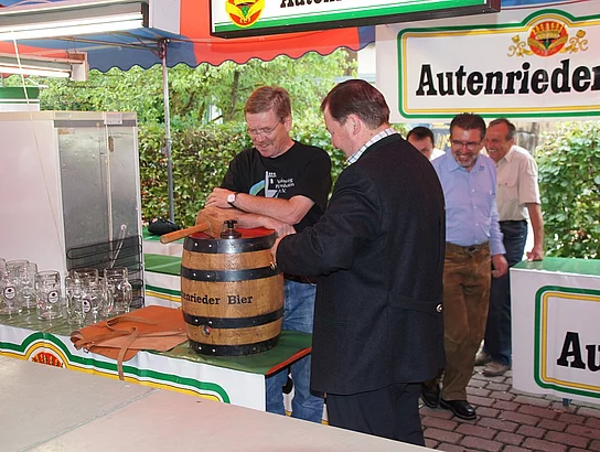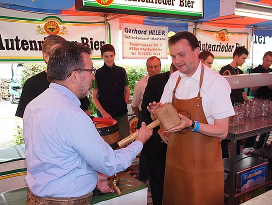 Endlich mal wieder ein Marktfest, das vom Wetter begünstigt war. Nachdem es am Freitagvormittag noch etwas geregnet hatte war pünktlich zum Bieranstich schönstes Wetter angesagt. Der Bieranstich war heuer in zweifacher Hinsicht etwas Besonderes. Zum einen gab es erstmal Autenrieder Bier auf dem Marktfest und zum anderen hatte der neue Pfarrer Reinfried Rimmel seine Premiere als Bieranstich-Assistent. Bürgermeister Josef Walz schaffte es mit seiner Hilfe und unter kritischer Beobachtung von Brauereichef Rudolph Feuchtmayer und Vereinsringvorsitzenden Karlheinz Thoma den Anstich mit einem einzigen gezielten Schlag zu bewältigen. Musikalisch ging es dann mit der Band "Soulkiss" weiter, der Festplatz füllte sich rasch und die Bänke blieben bis zum Ende sehr gut besetzt. Pünktlich zu diesem Ende öffnete der Himmel seine Schleusen und ermunterte damit die letzten Gäste zum Antreten des Heimweges. Bei wiederum sonnigen und warmen Wetter ging es am Samstagabend mit der Stimmungskapelle "Blechreiz" weiter. Diese war den Pfaffenhofenern bereits vom Jubiläum des Musikvereins Pfaffenhofen bekannt. Der Sonntag startete mit etwas Besonderem. Der katholische Gottesdienst fand auf dem Festplatz statt. An ihm nahmen neben den örtlichen Gläubigen viele Motorradfahrer teil, die dann anschließend zum großen Motorradcorso starteten. Dieser war mit etwa 300 teilnehmenden Motorradfahrern wieder sehr gut besucht. Musikalisch wurde der Festsonntag, wie die vergangenen Jahre, von den örtlichen Musikkapellen aus Kadeltshofen, Beuren und Pfaffenhofen gestaltet. Der Vereinsringvorsitzende Karlheinz Thoma zeigte sich mit dem Verlauf des festes überaus zufrieden, er merkte an, dass das Fest heuer das friedlichste und am ruhigsten verlaufene gewesen sei seit er dafür verantwortlich zeichne.